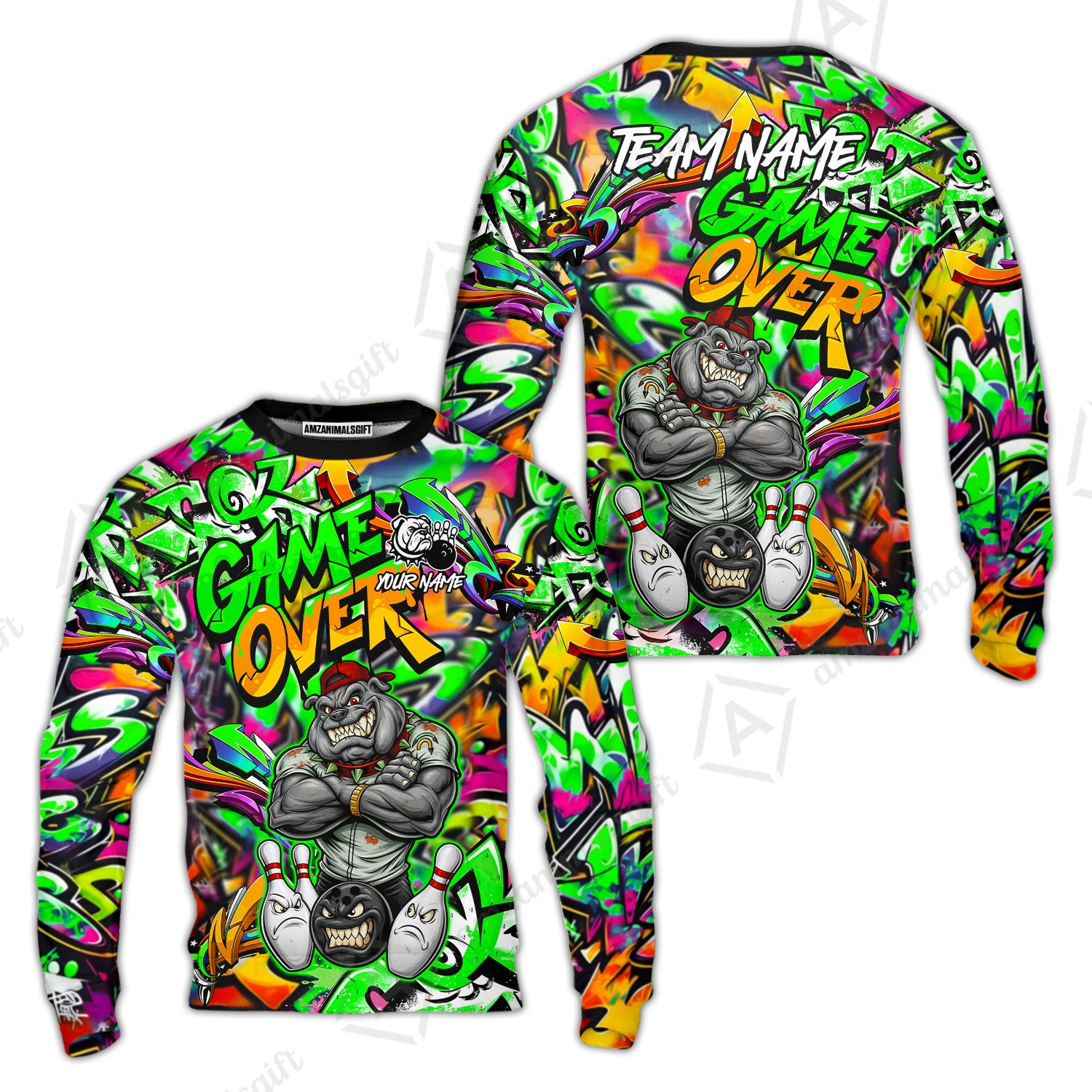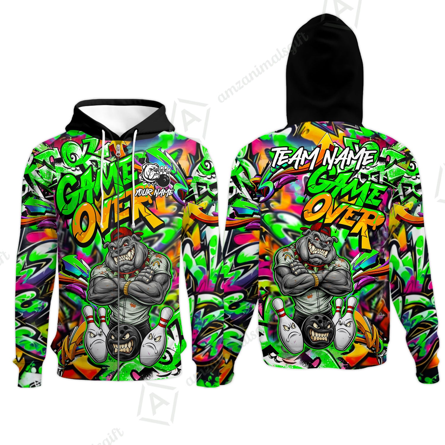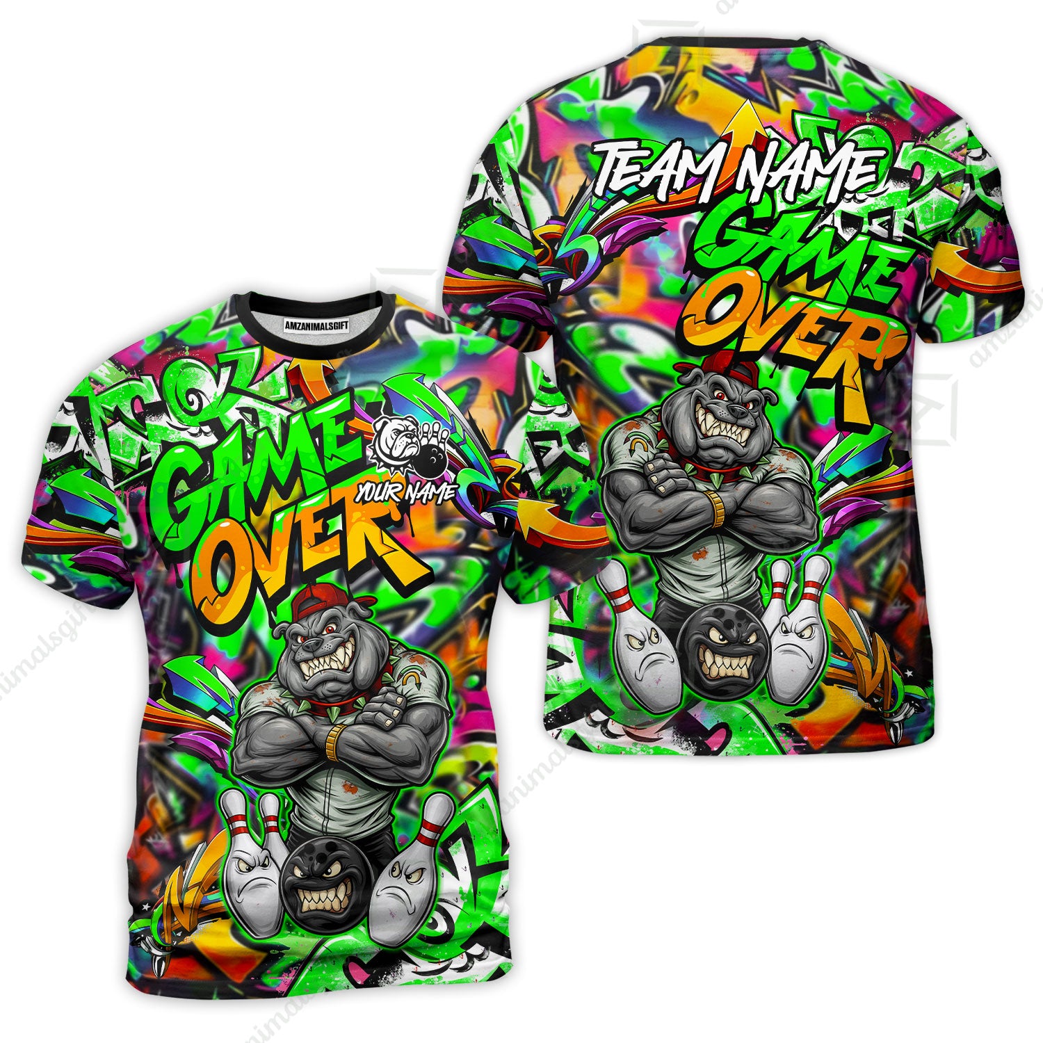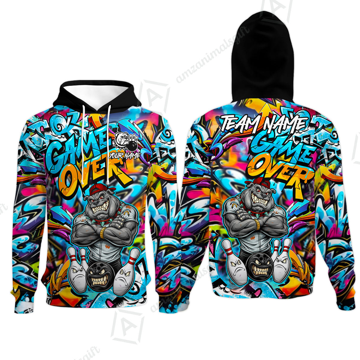 Customized Bowling Unisex Polo Shirt, Cool BullDog With Angry Bowling Game Over - Personalized Name And Team Name