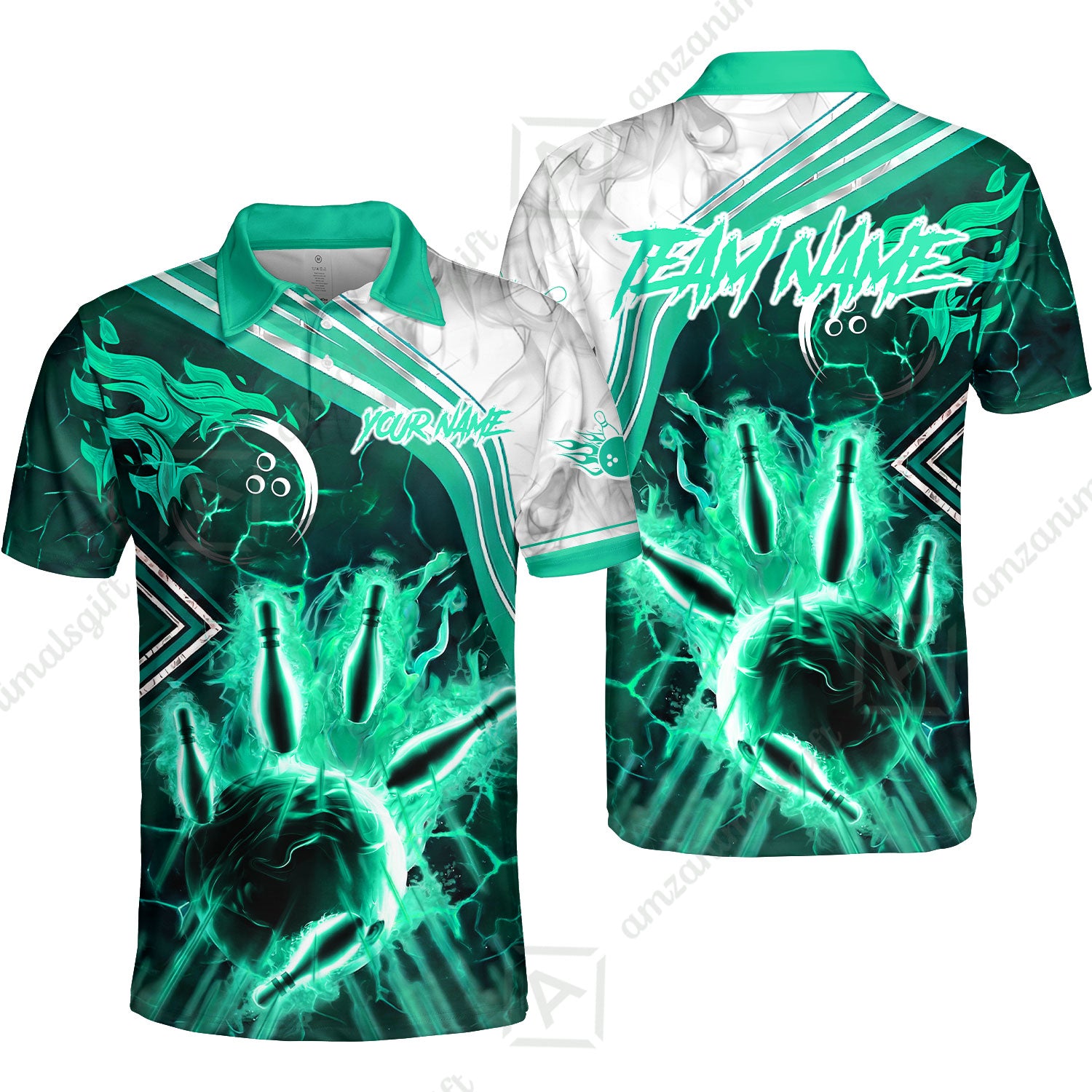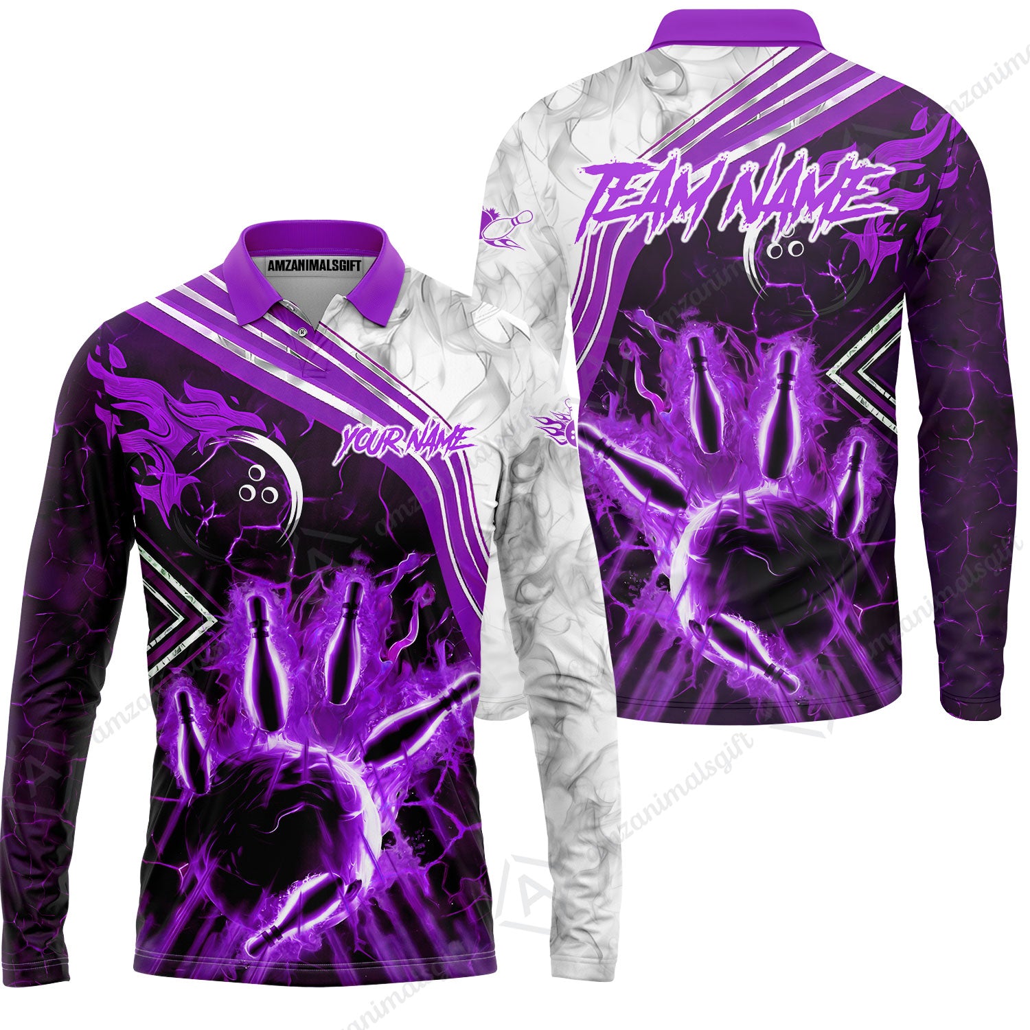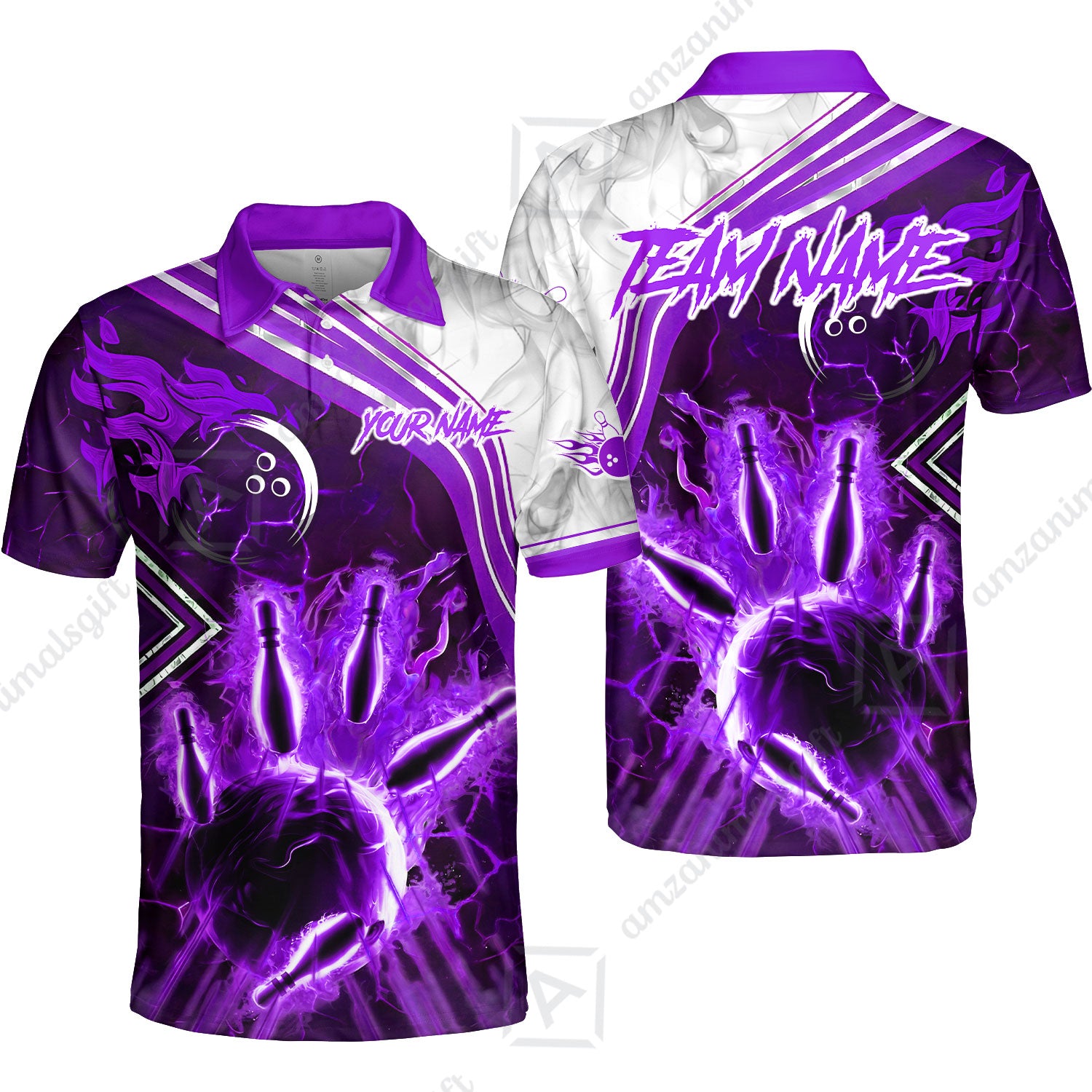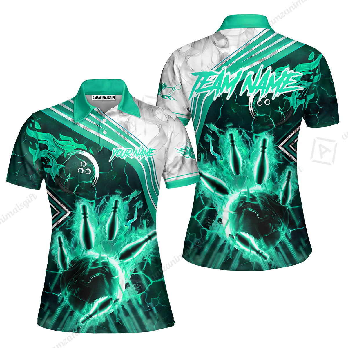 Customized Bowling Unisex Polo Shirt, Fire & Smoke Bowling Pins, Bowling Uniform - Personalized Name And Team Name