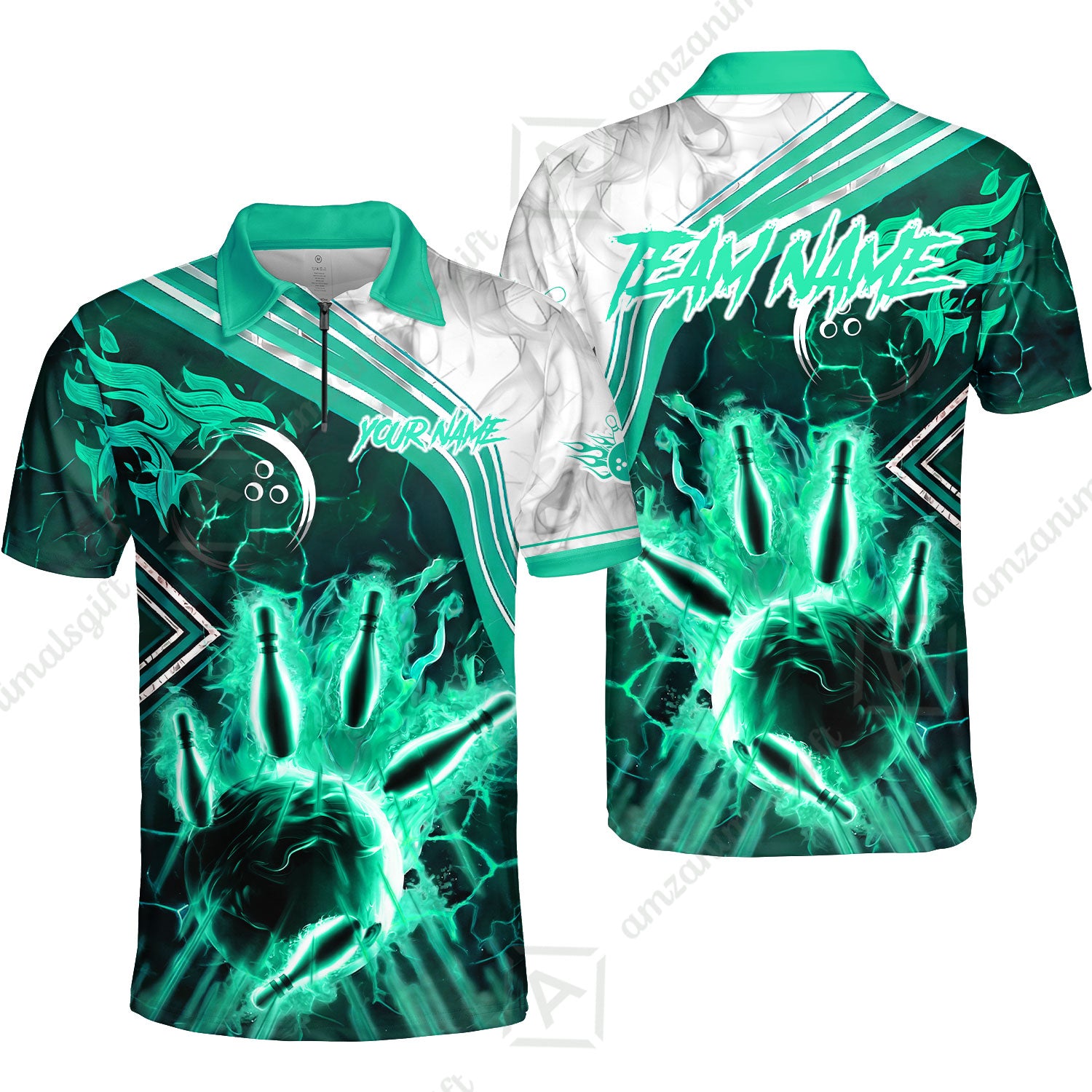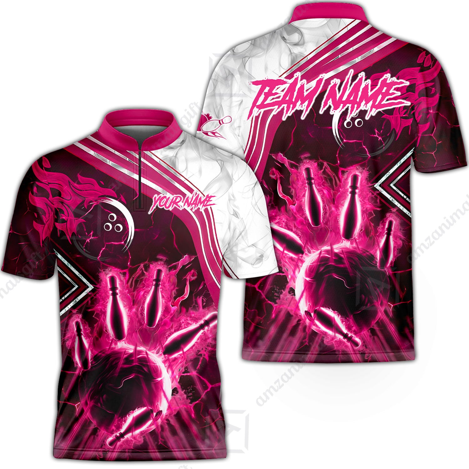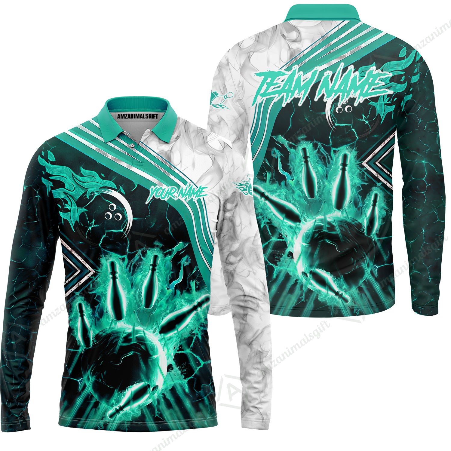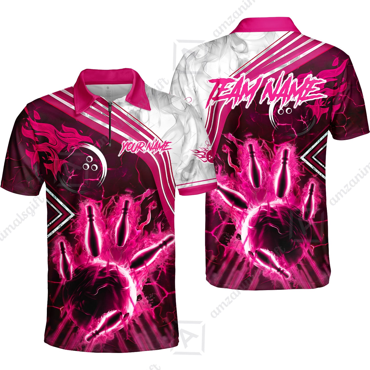 Customized Bowling Unisex Polo Shirt, Fire & Smoke Bowling Pins, Bowling Uniform - Personalized Name And Team Name
