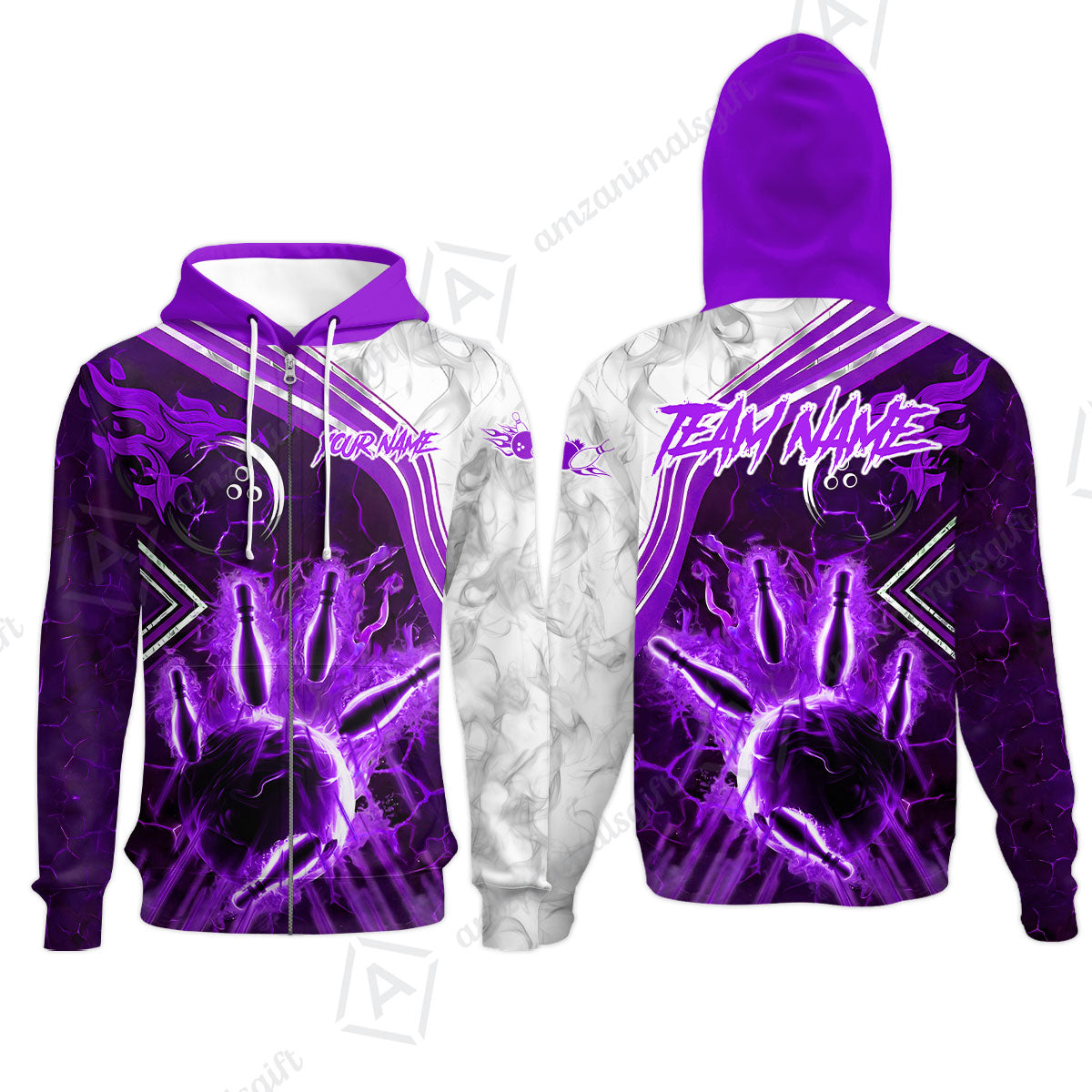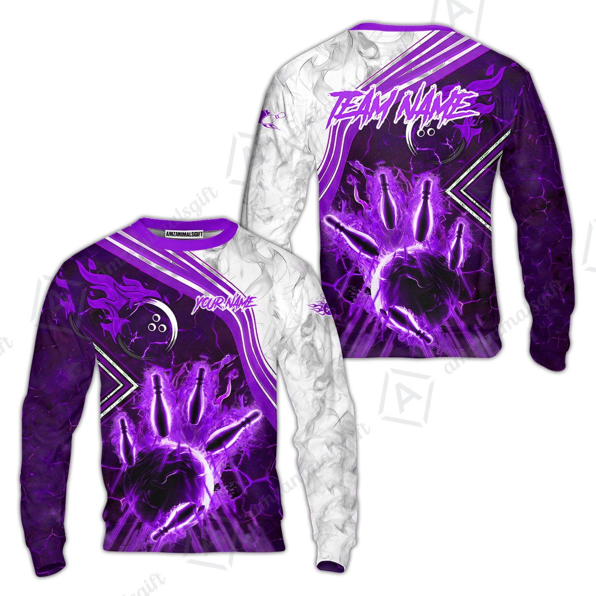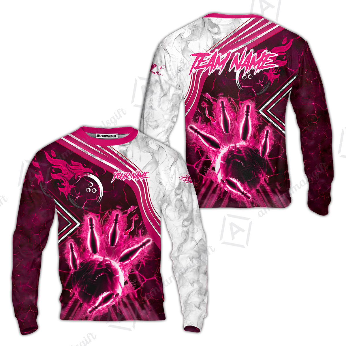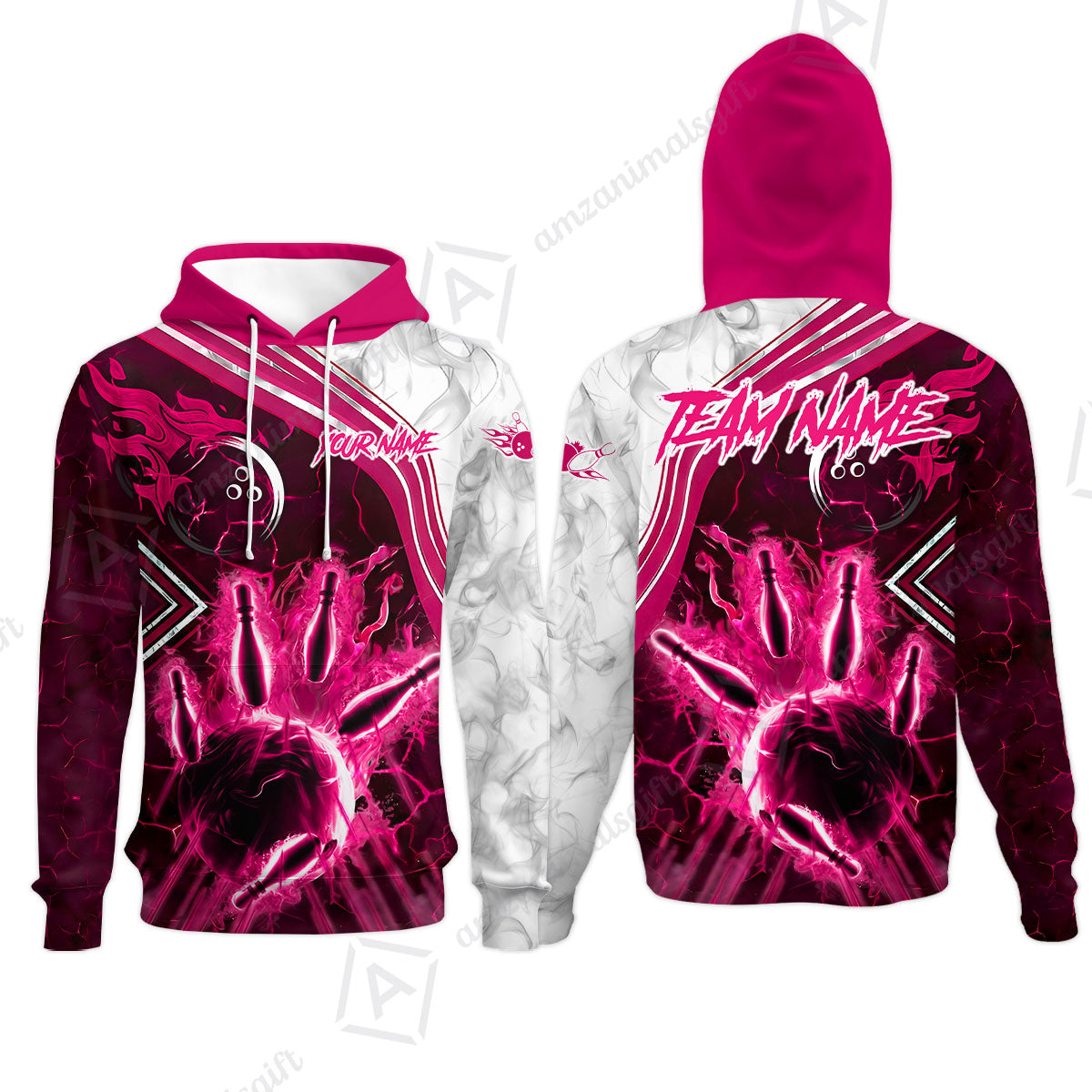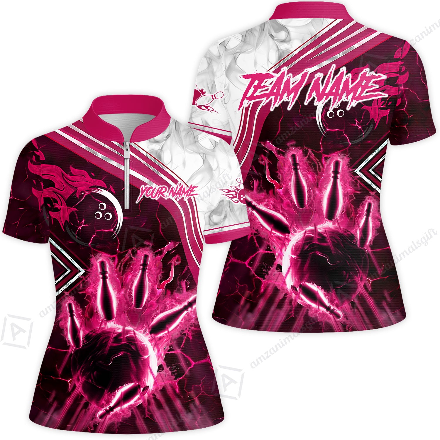 Customized Bowling Unisex Polo Shirt, Fire & Smoke Bowling Pins, Bowling Uniform - Personalized Name And Team Name