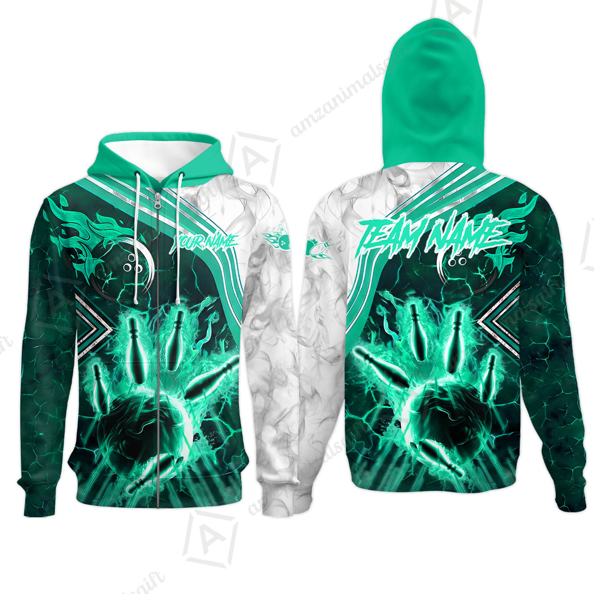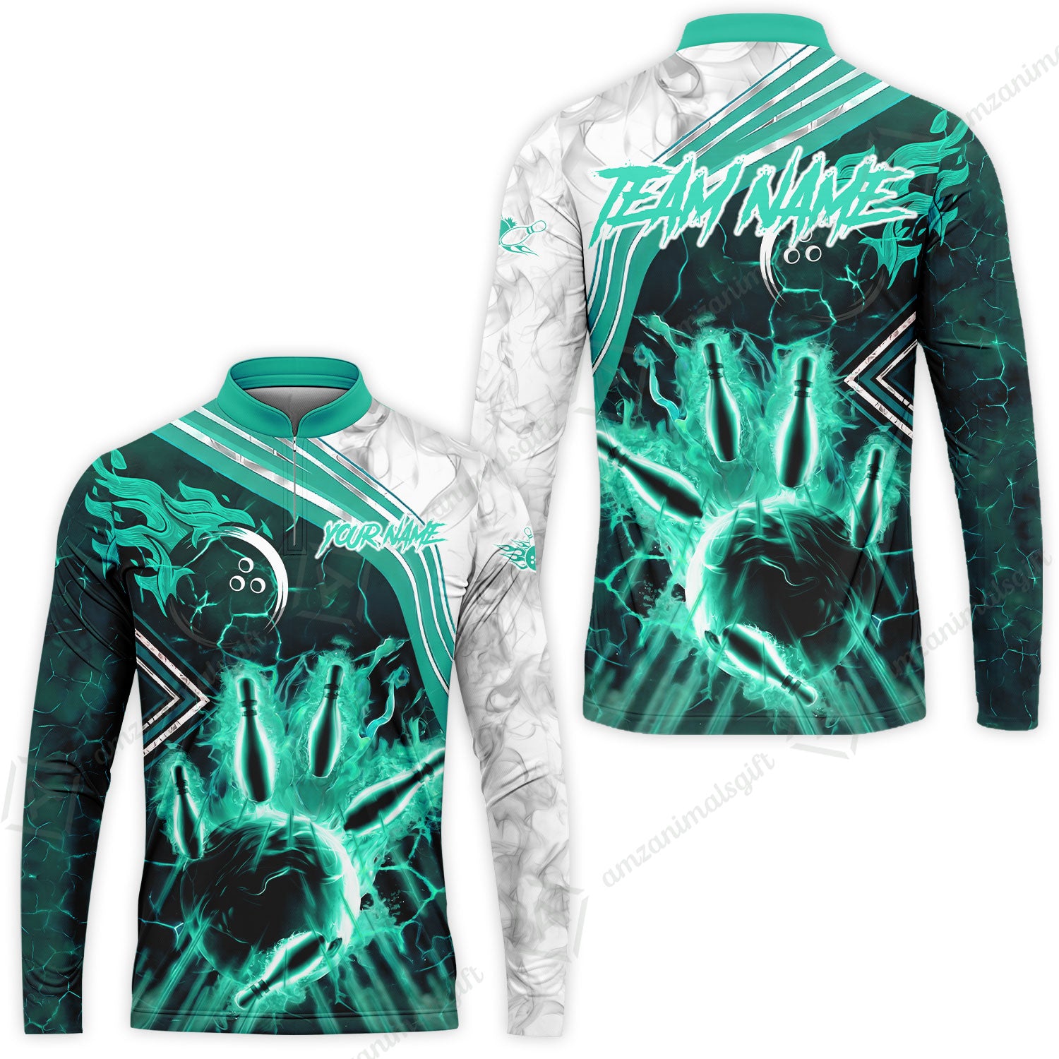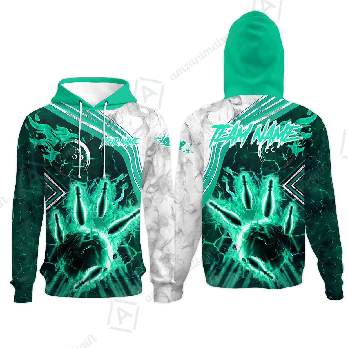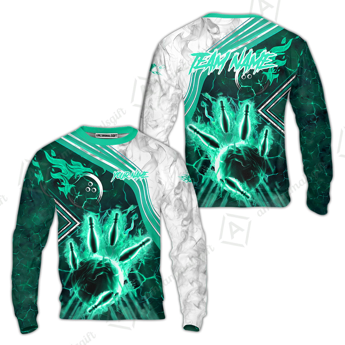 Customized Bowling Unisex Polo Shirt, Fire & Smoke Bowling Pins, Bowling Uniform - Personalized Name And Team Name