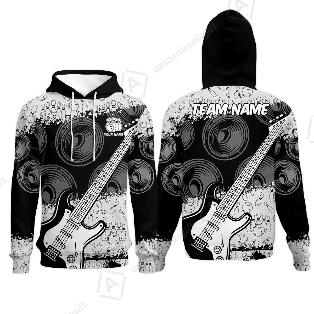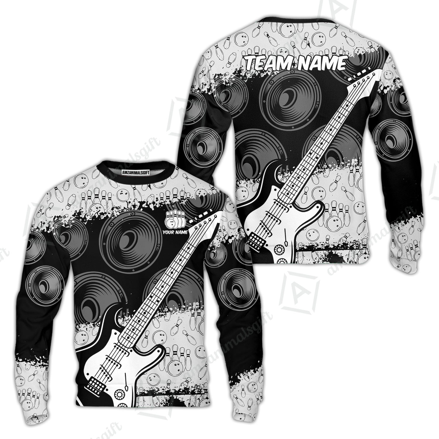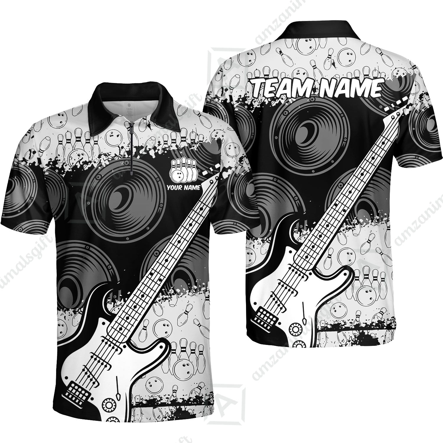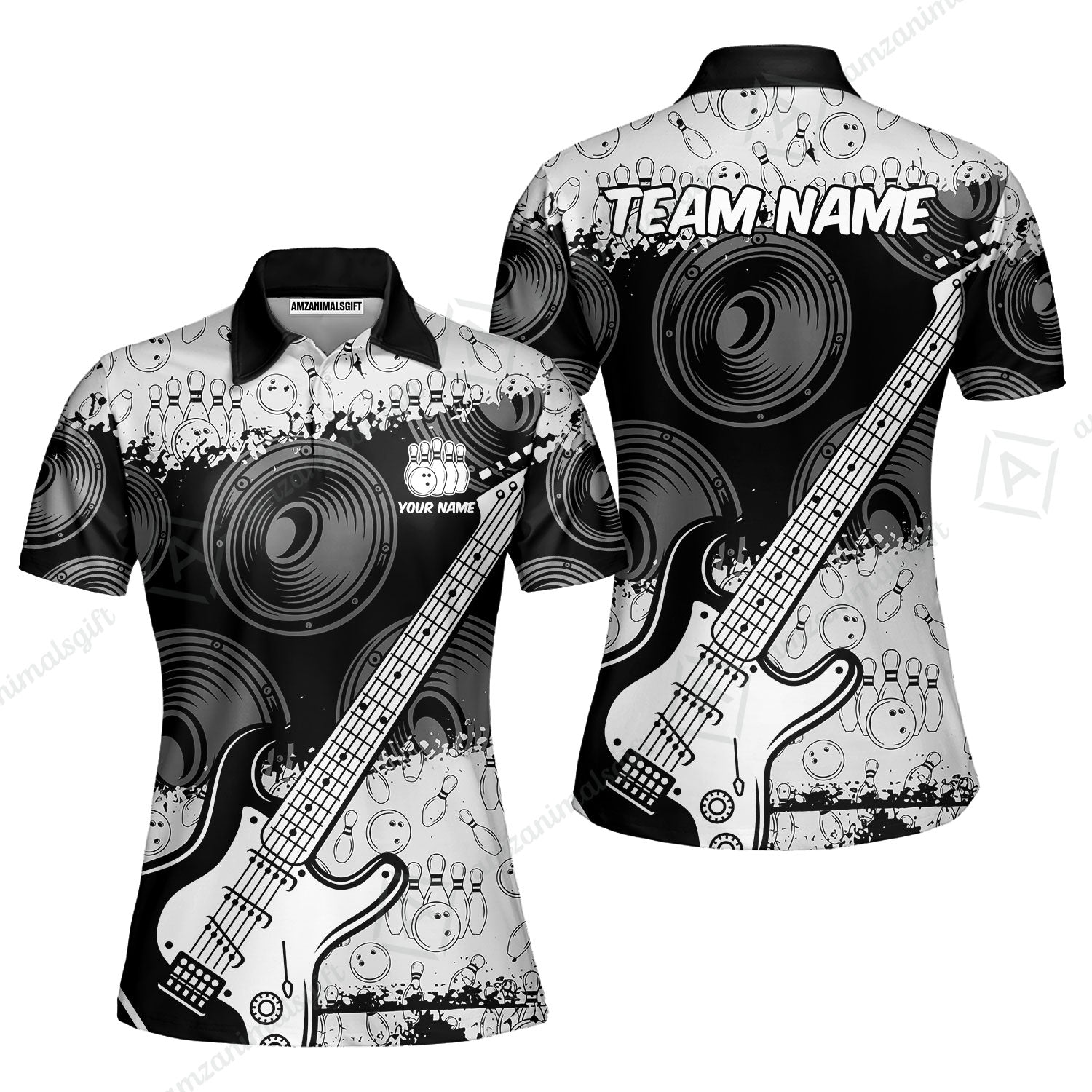 Customized Bowling Unisex Polo Shirt, Guitar Speaker Bowling, Bowling Uniform - Personalized Name Team Name For Bowlers