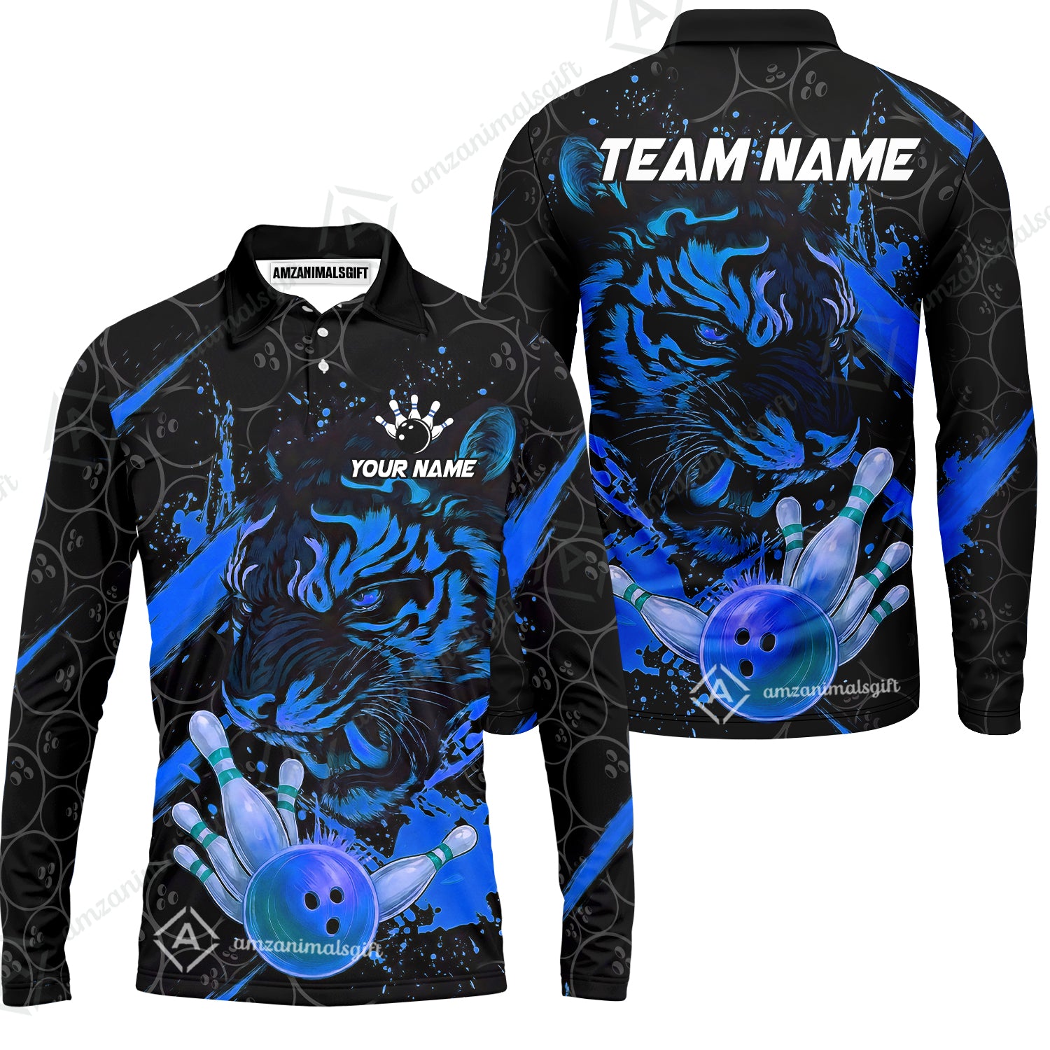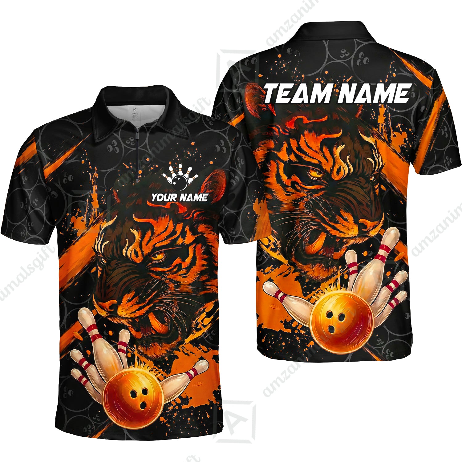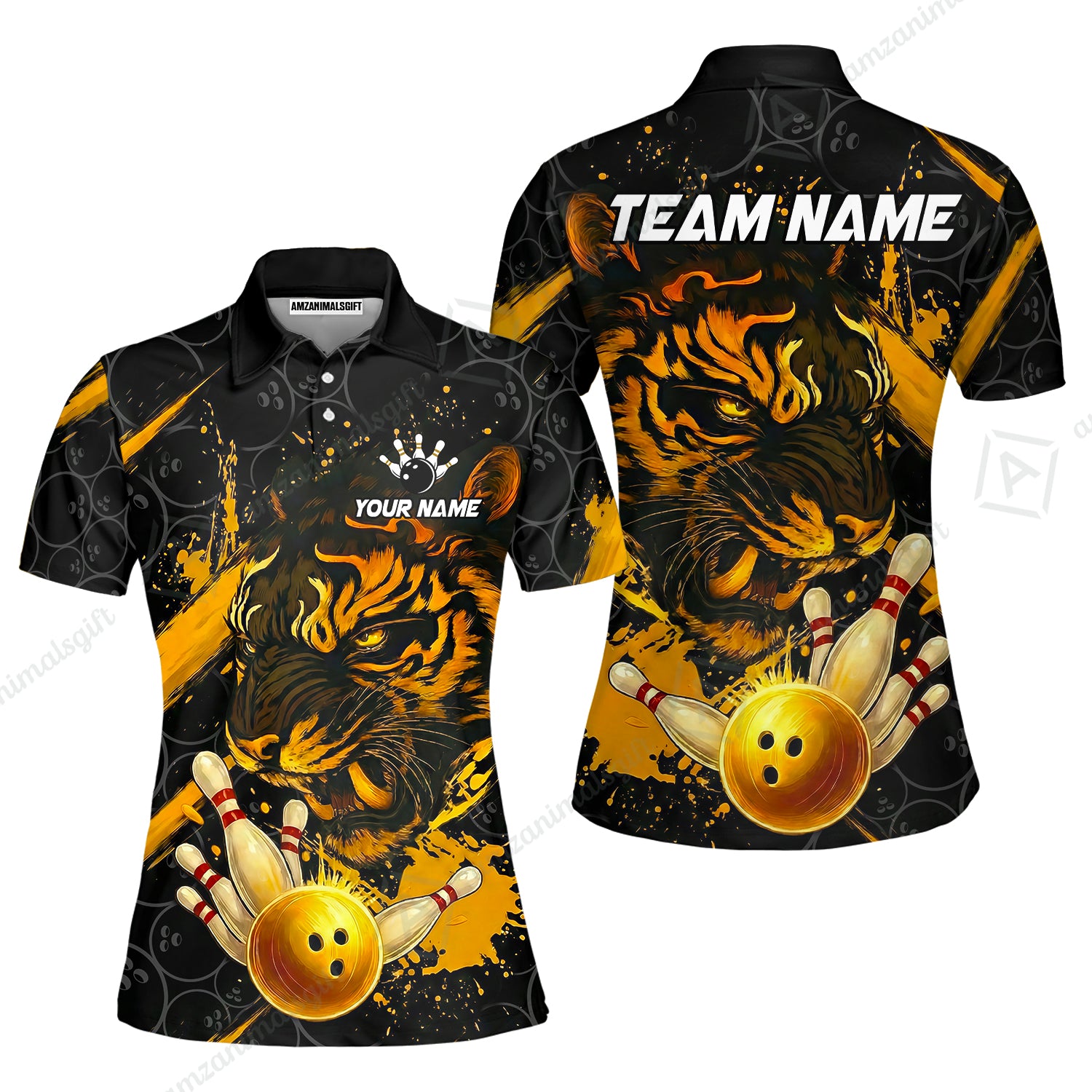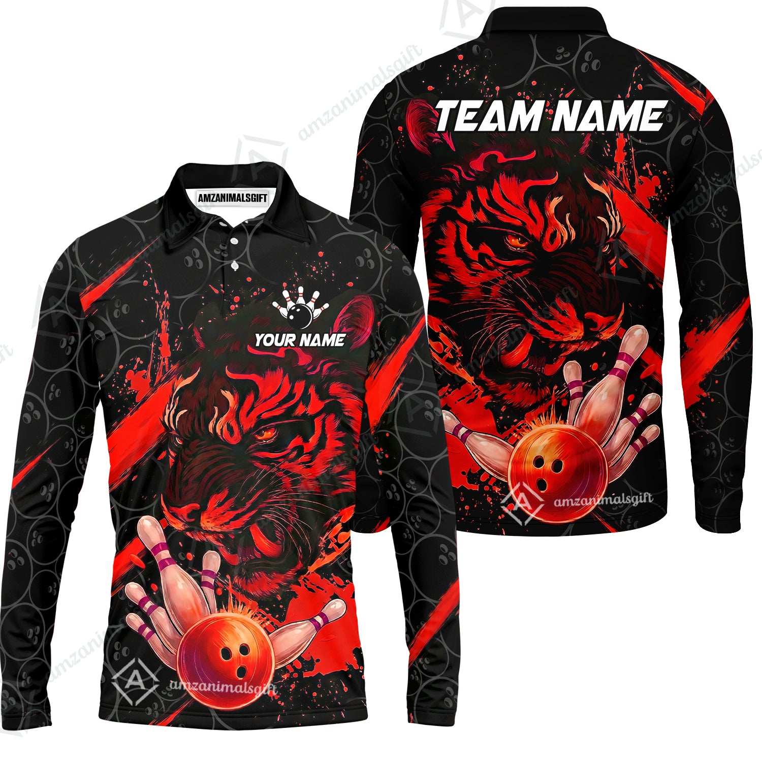 Customized Bowling Unisex Polo Shirt, Tiger Ball Striking Pins, Bowling Uniforms, Personalized Name And Team Name