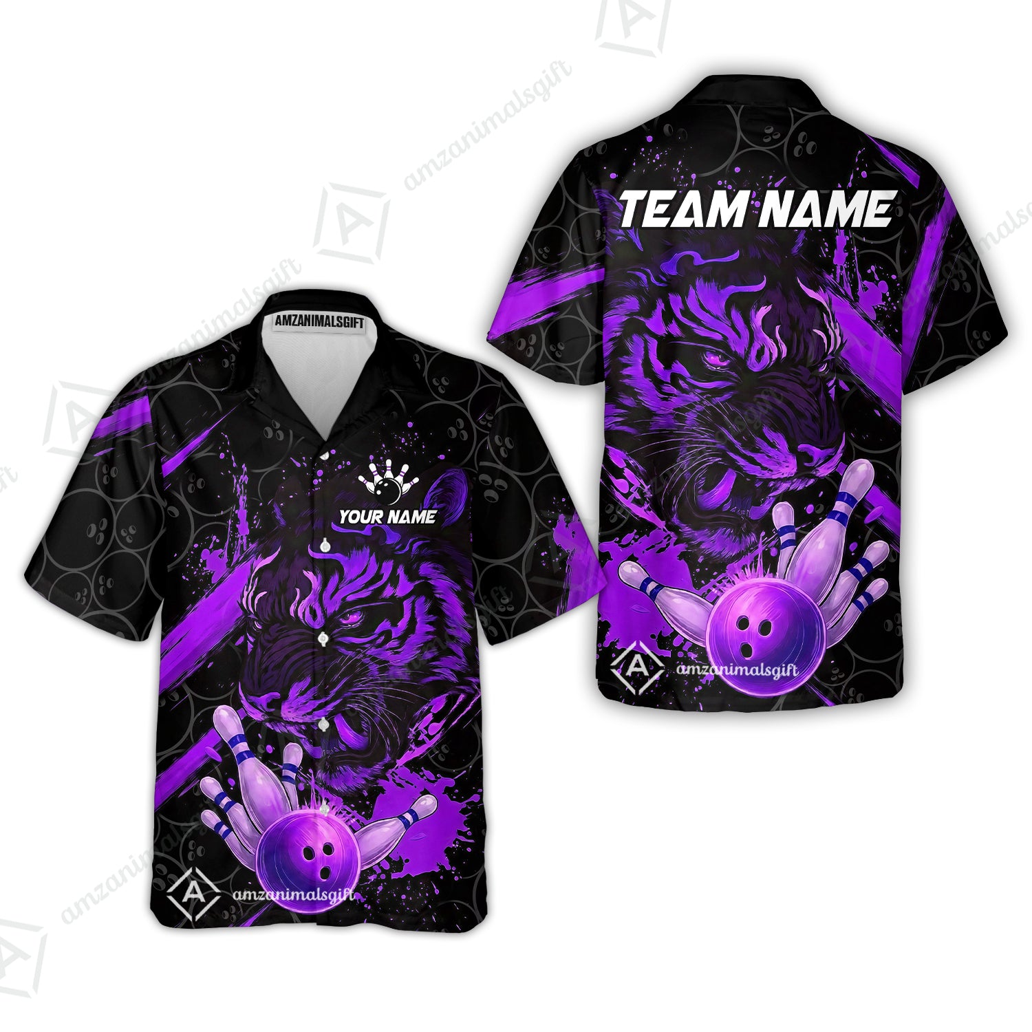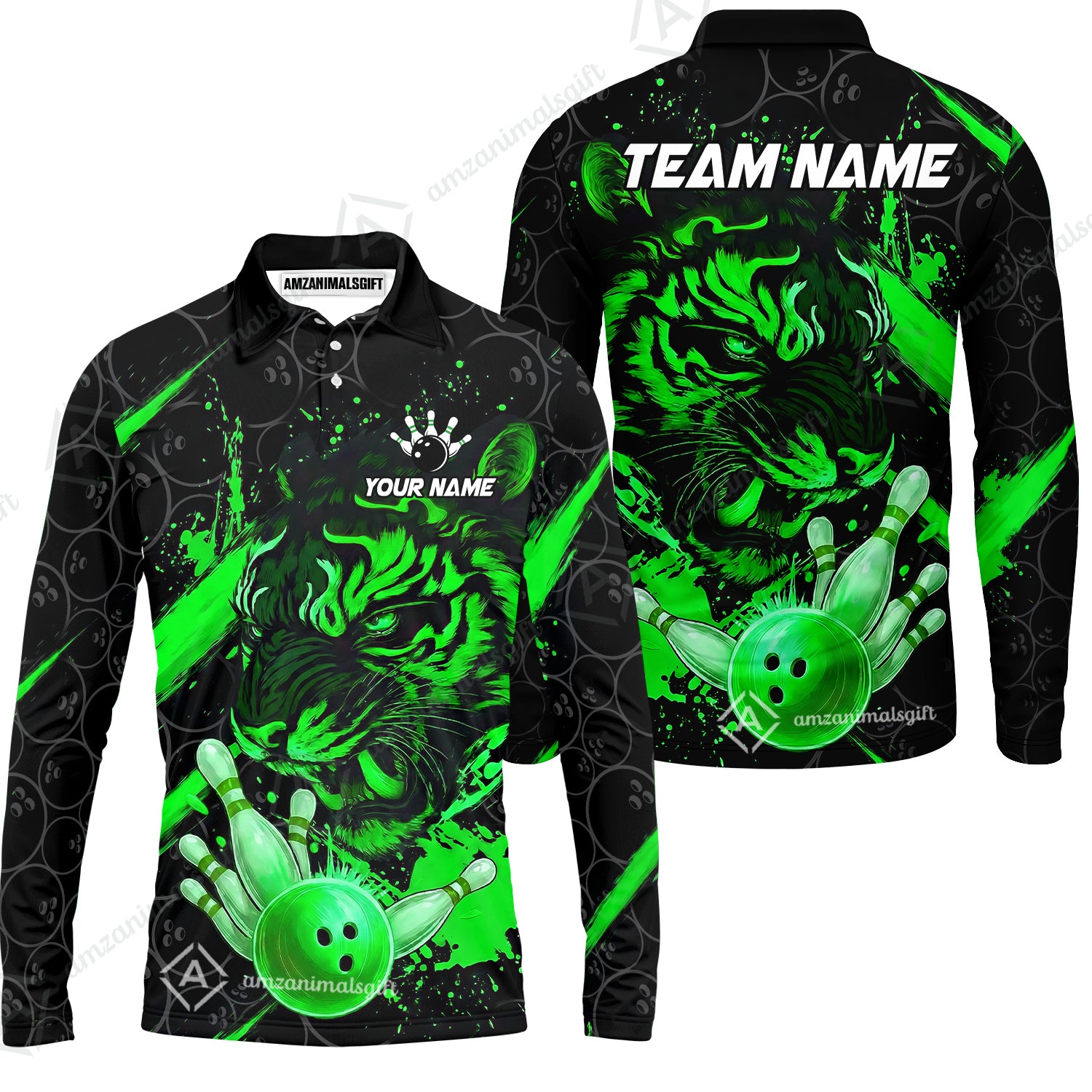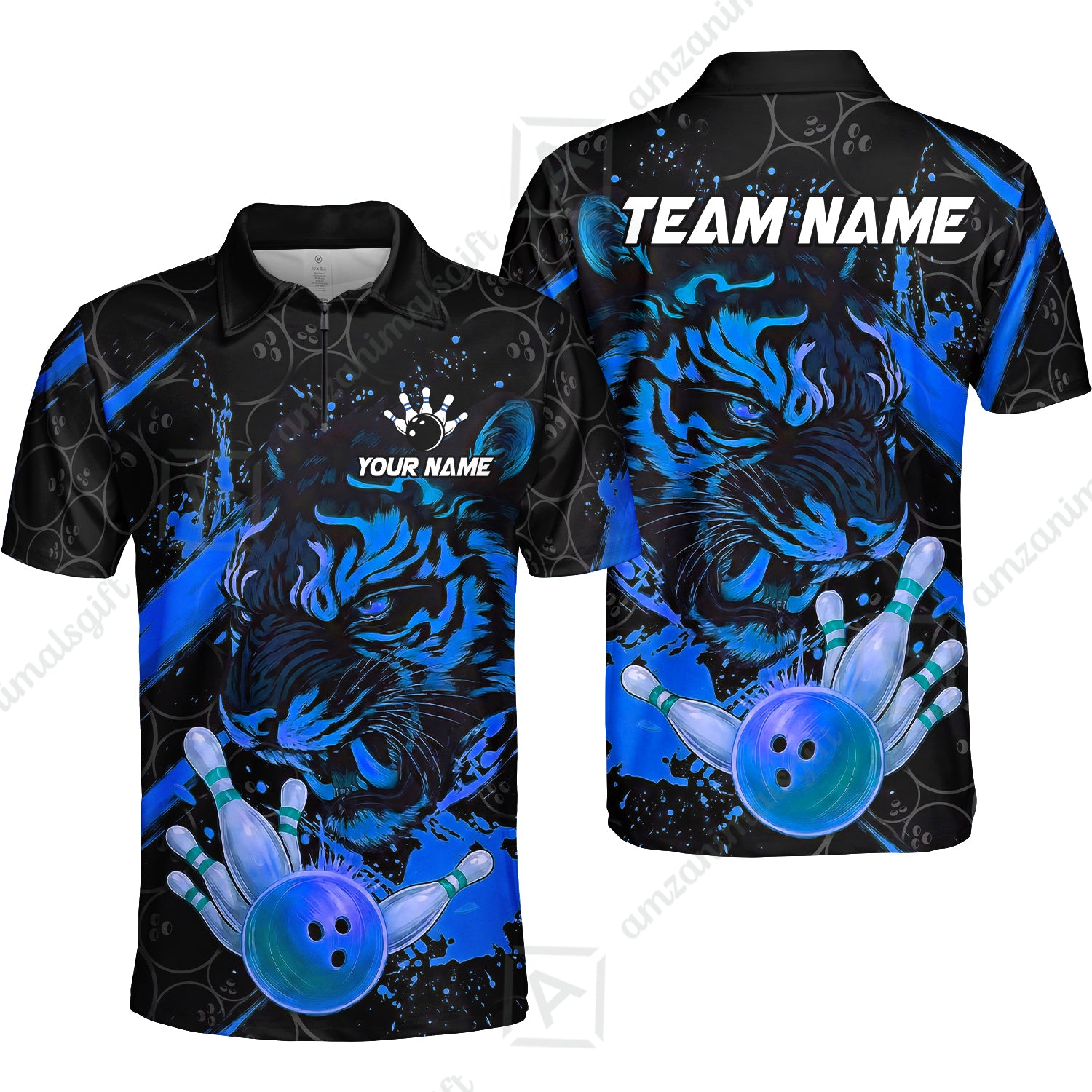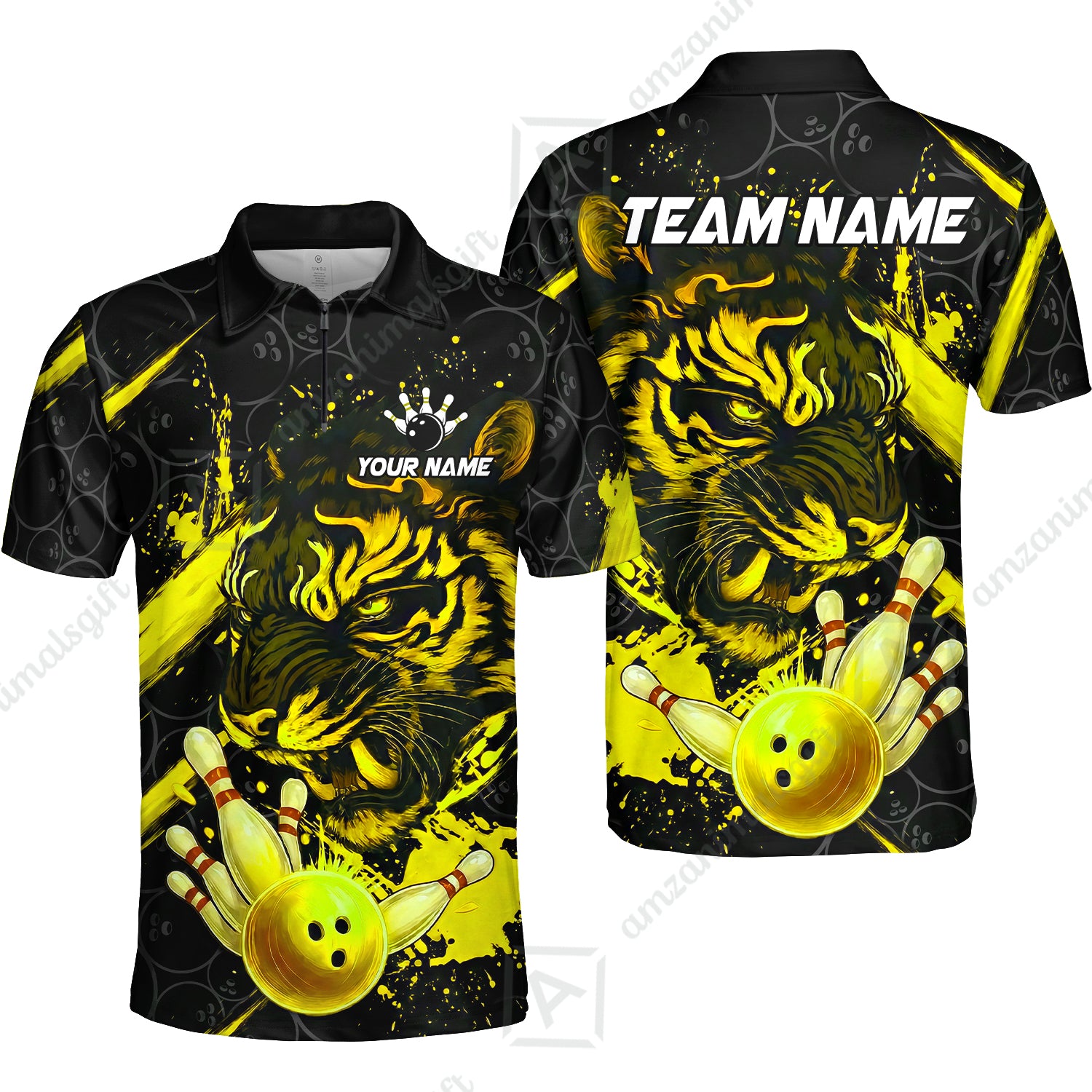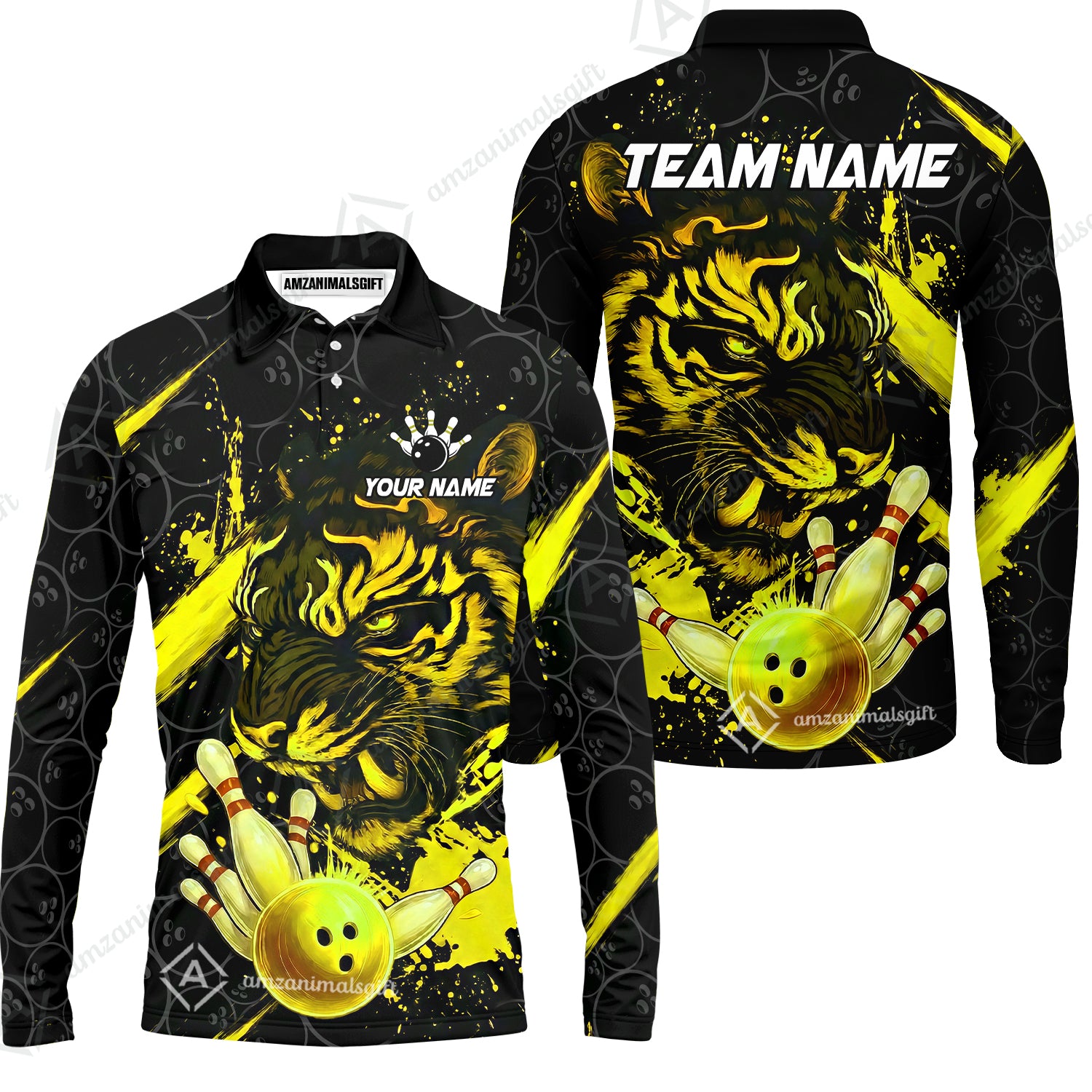 Customized Bowling Unisex Polo Shirt, Tiger Ball Striking Pins, Bowling Uniforms, Personalized Name And Team Name