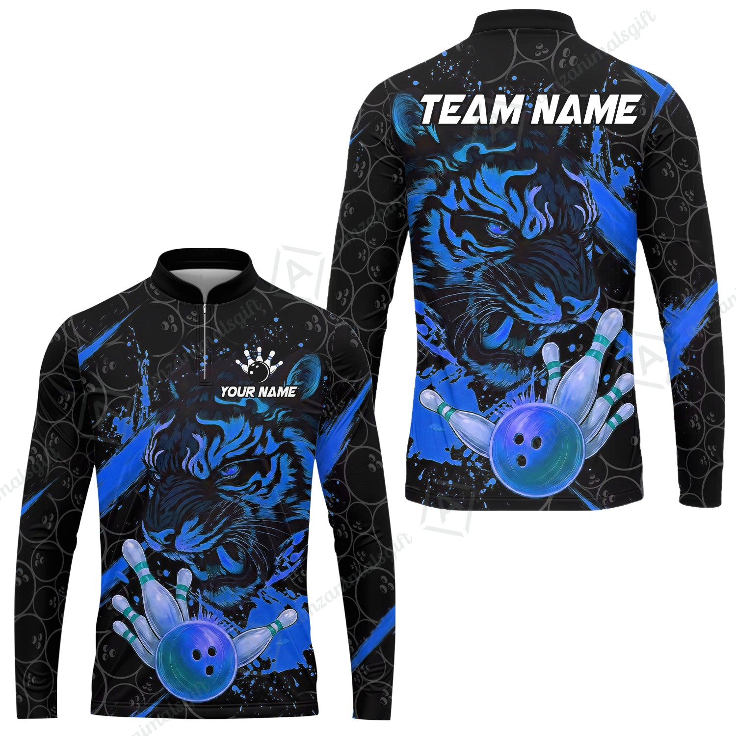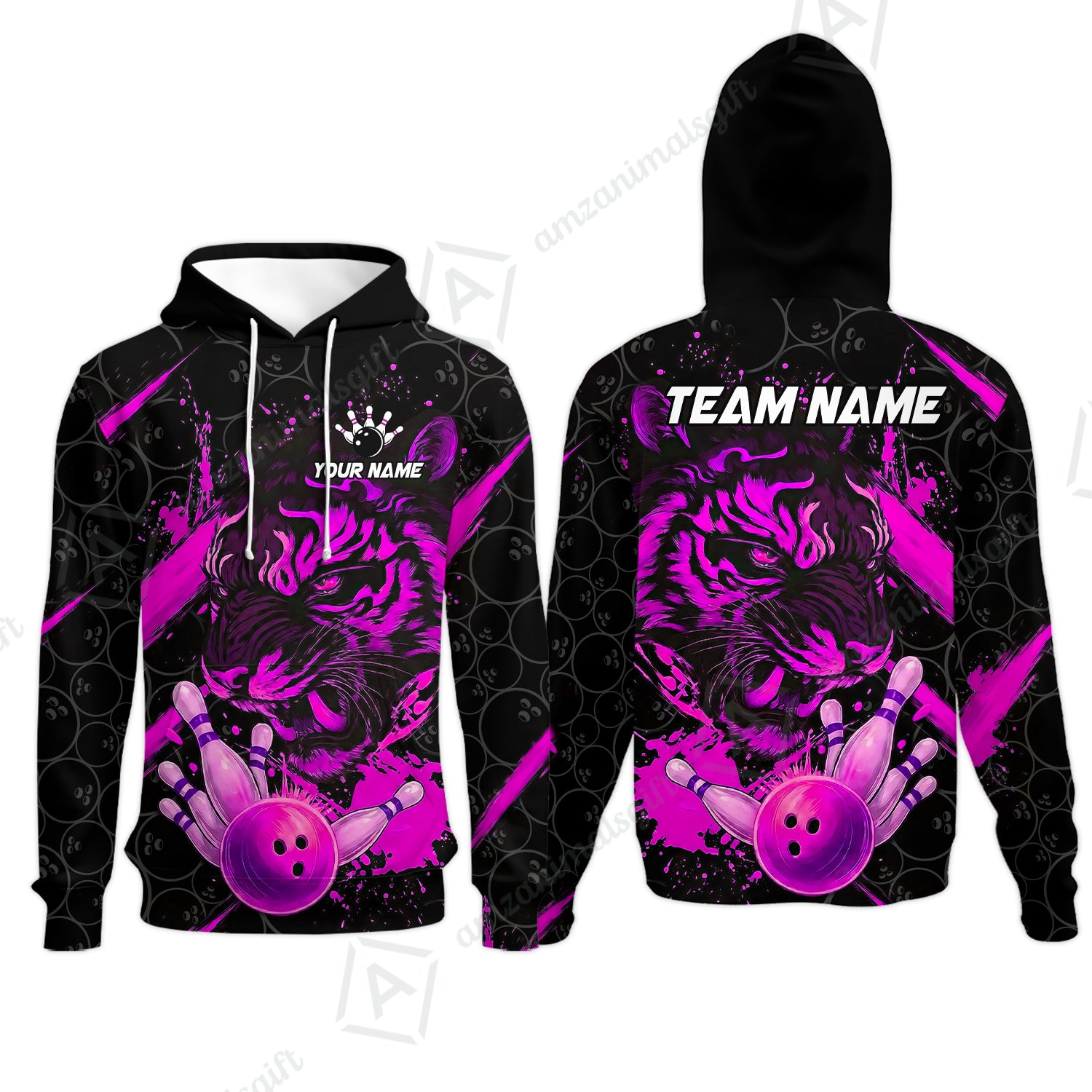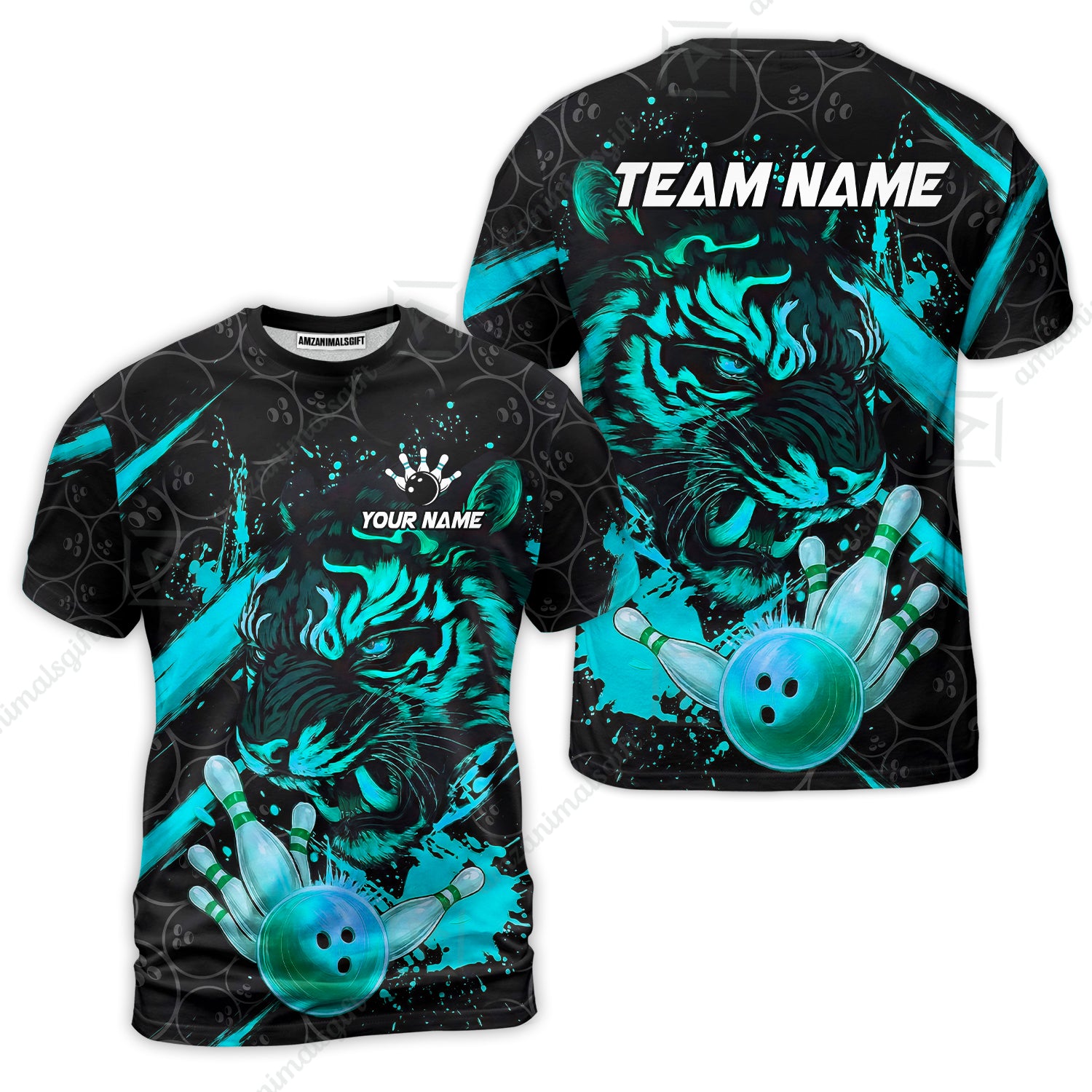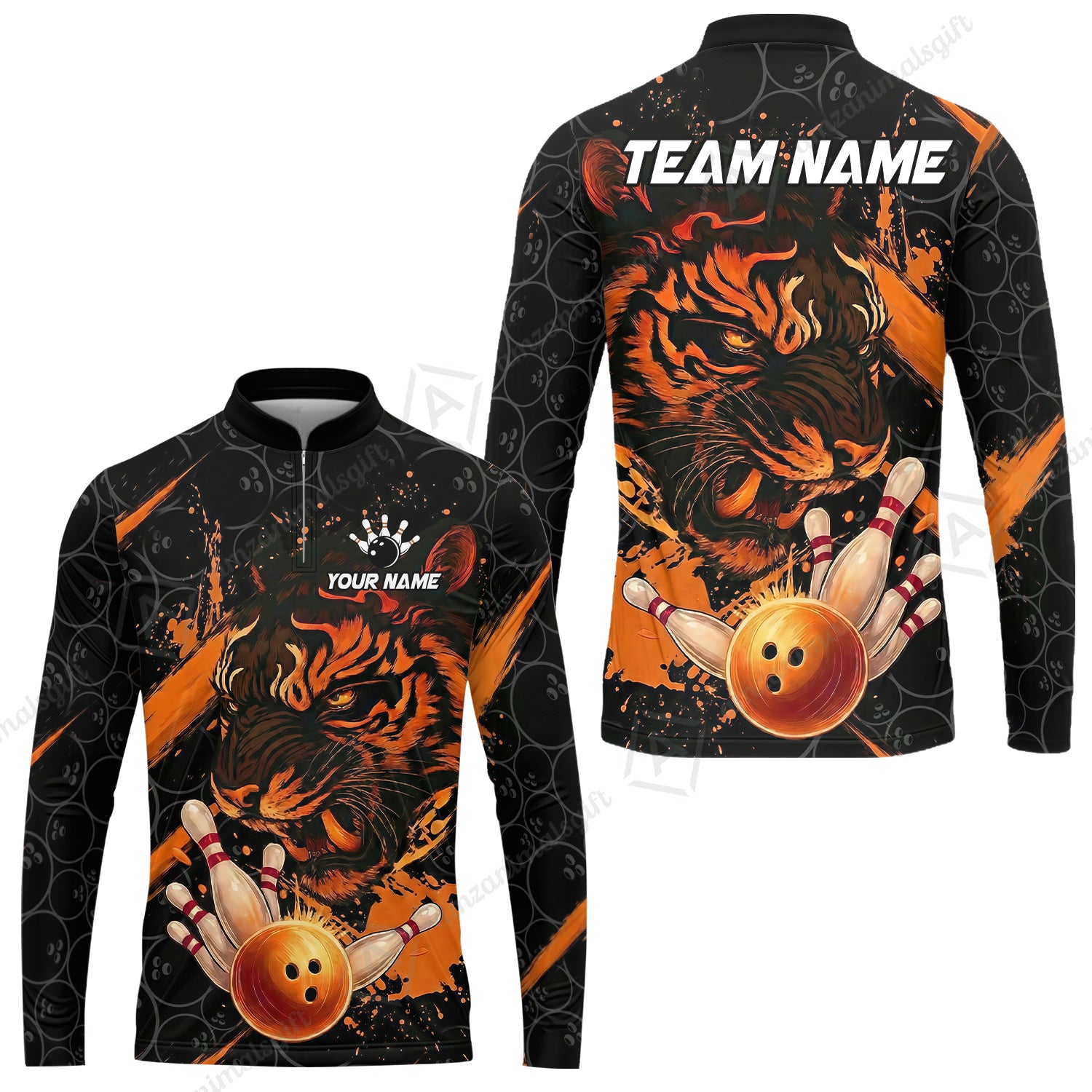 Customized Bowling Unisex Polo Shirt, Tiger Ball Striking Pins, Bowling Uniforms, Personalized Name And Team Name
