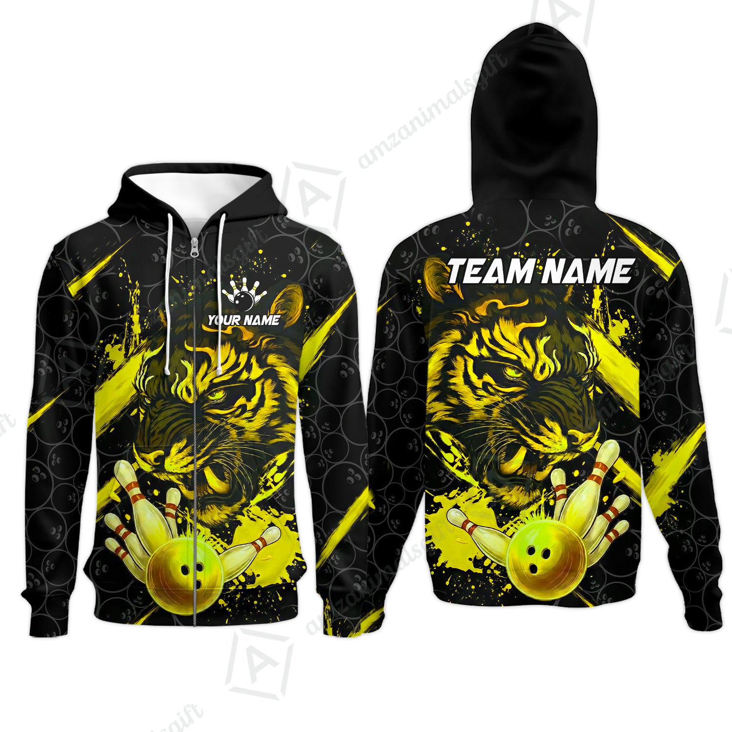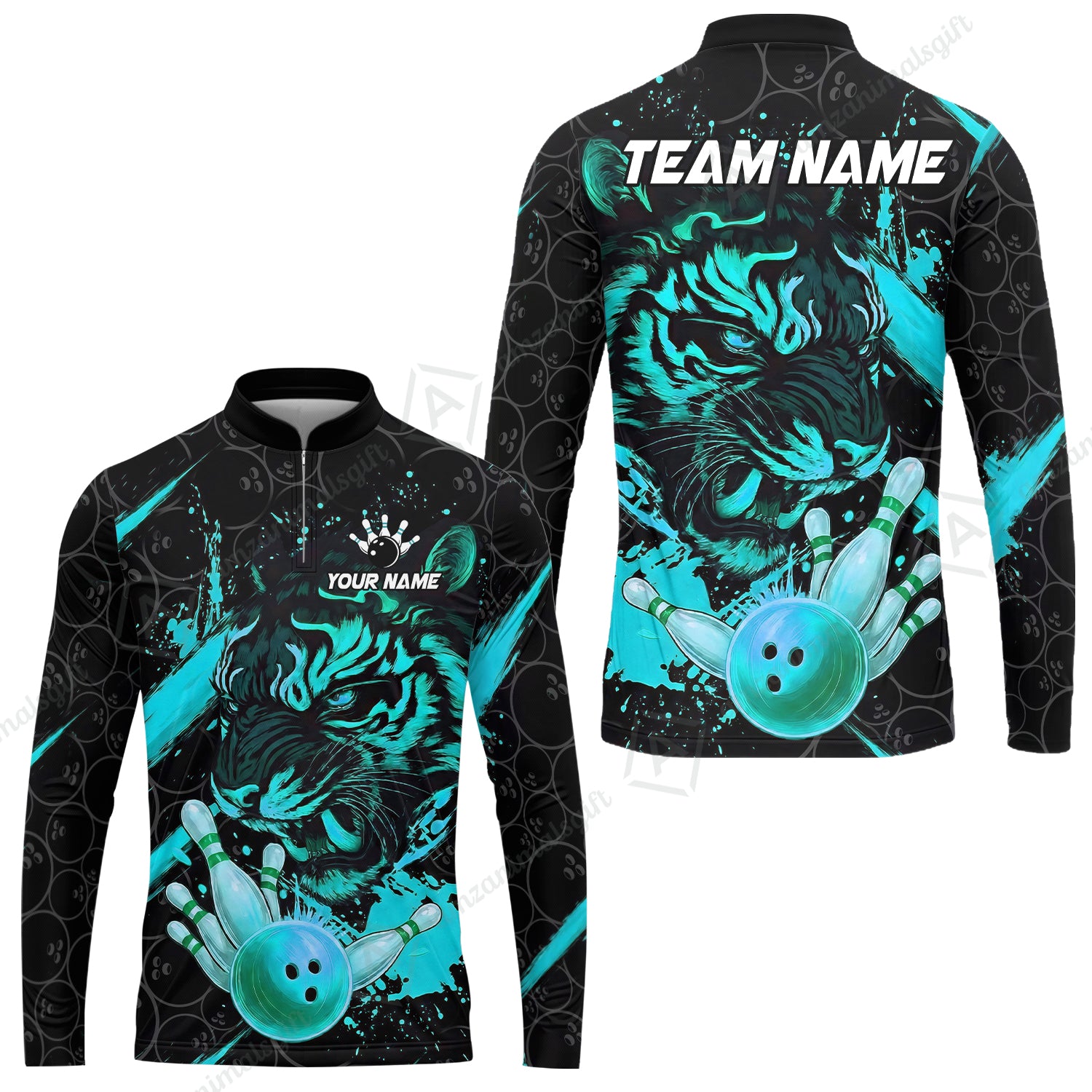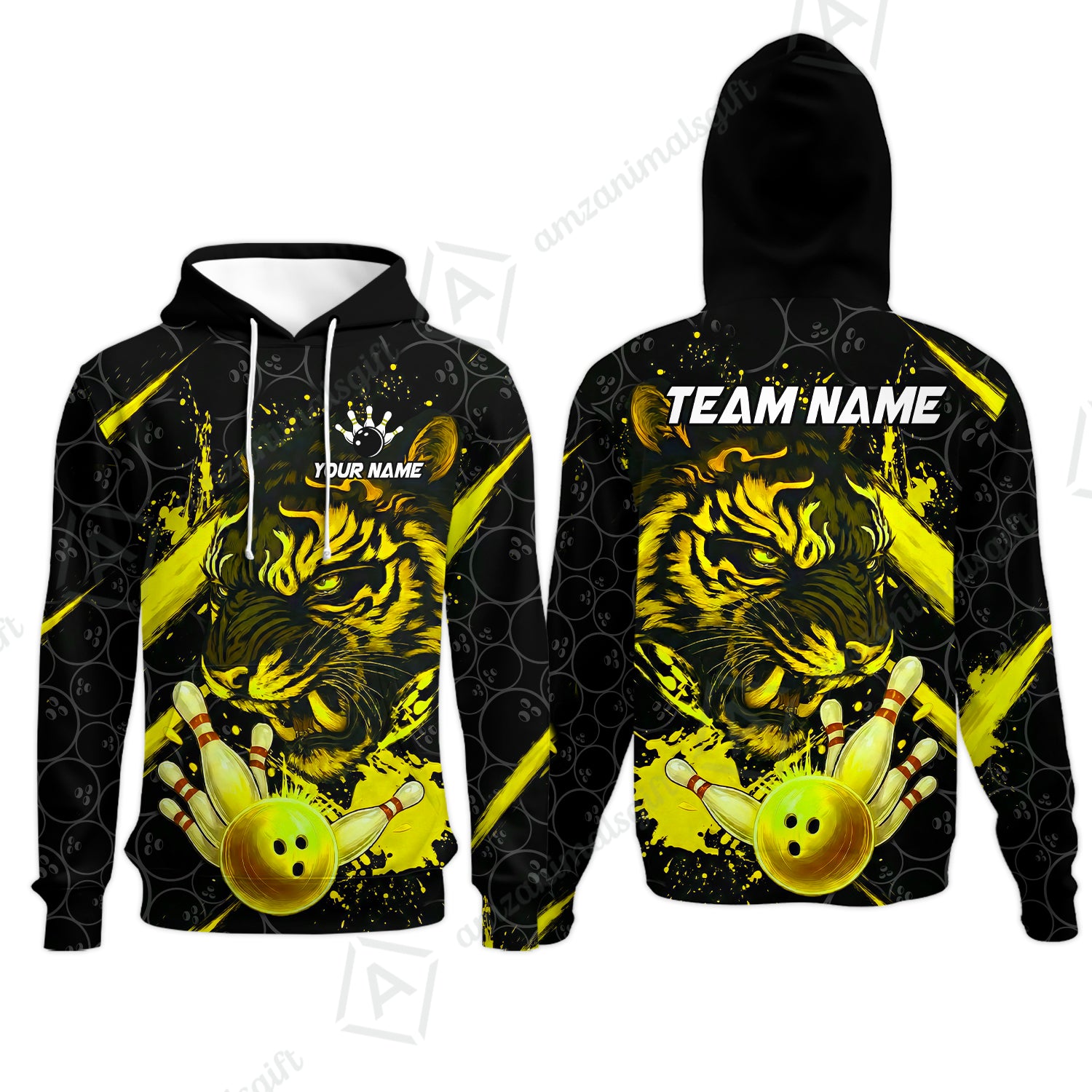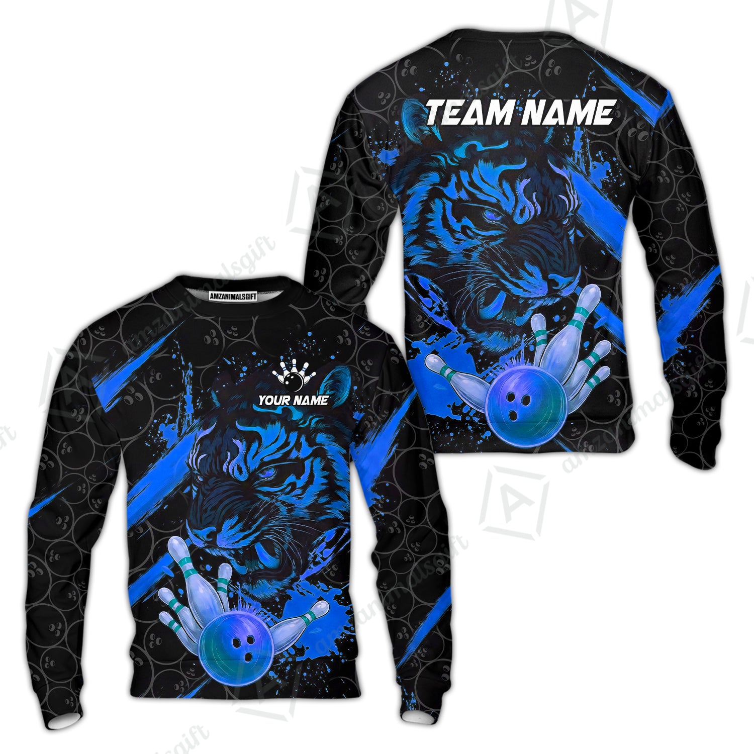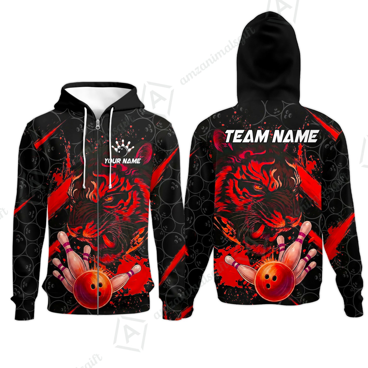 Customized Bowling Unisex Polo Shirt, Tiger Ball Striking Pins, Bowling Uniforms, Personalized Name And Team Name