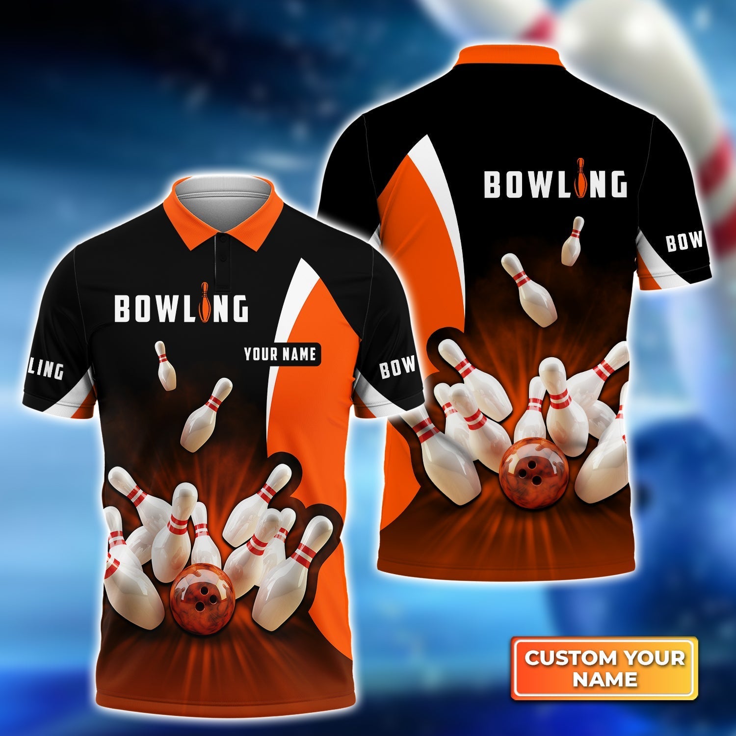 Customized Bowling Women Polo Shirt, Ten Pin Strike Bowling Personalized Orange Black Shirt For Friend, Family, Bowling Players