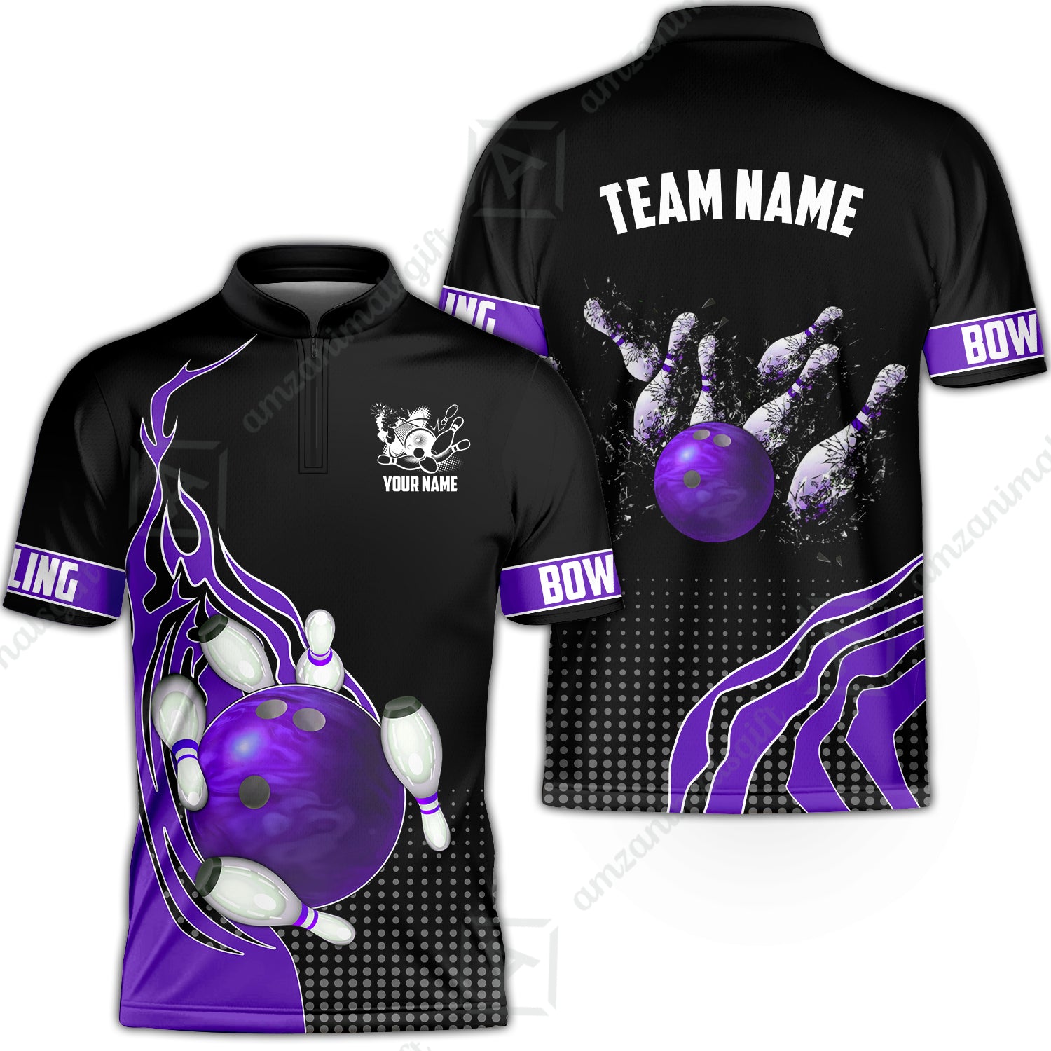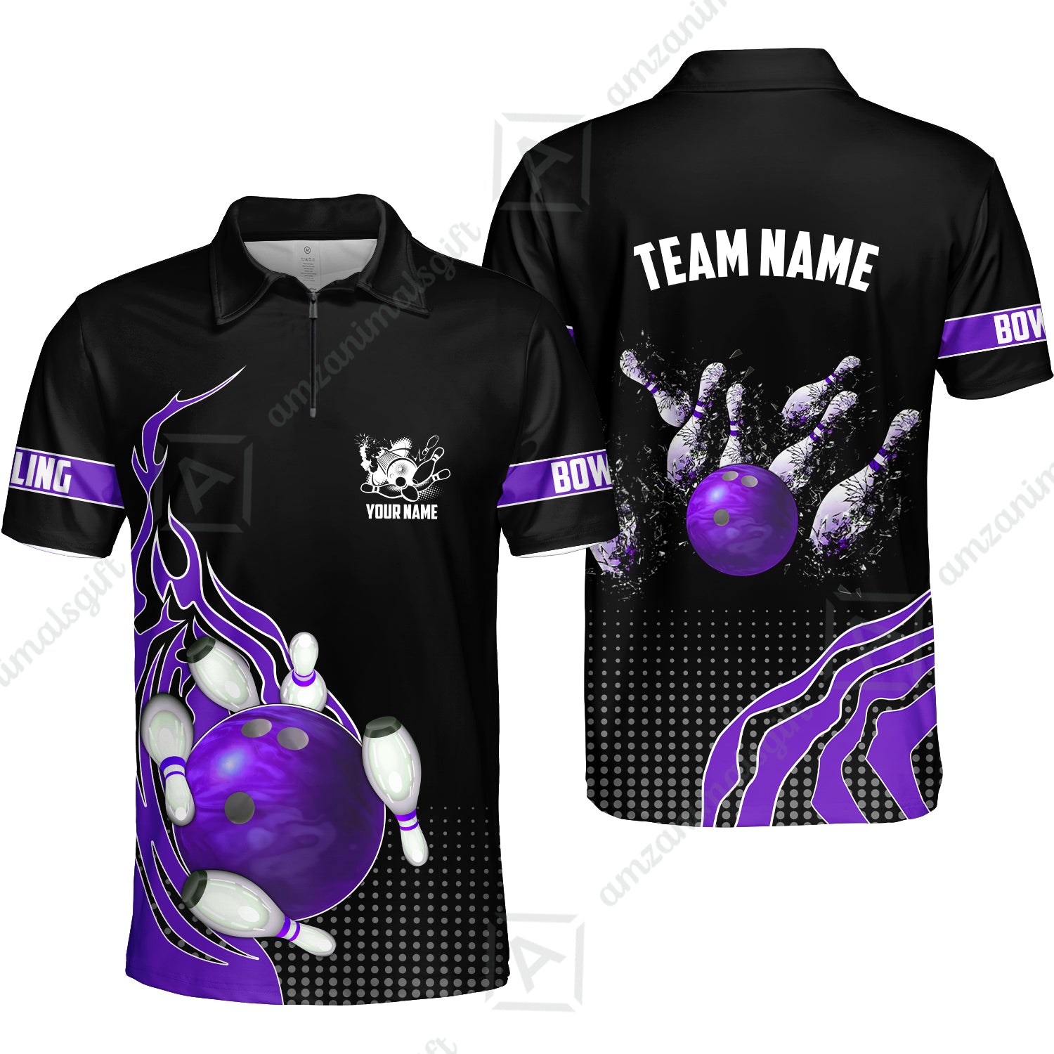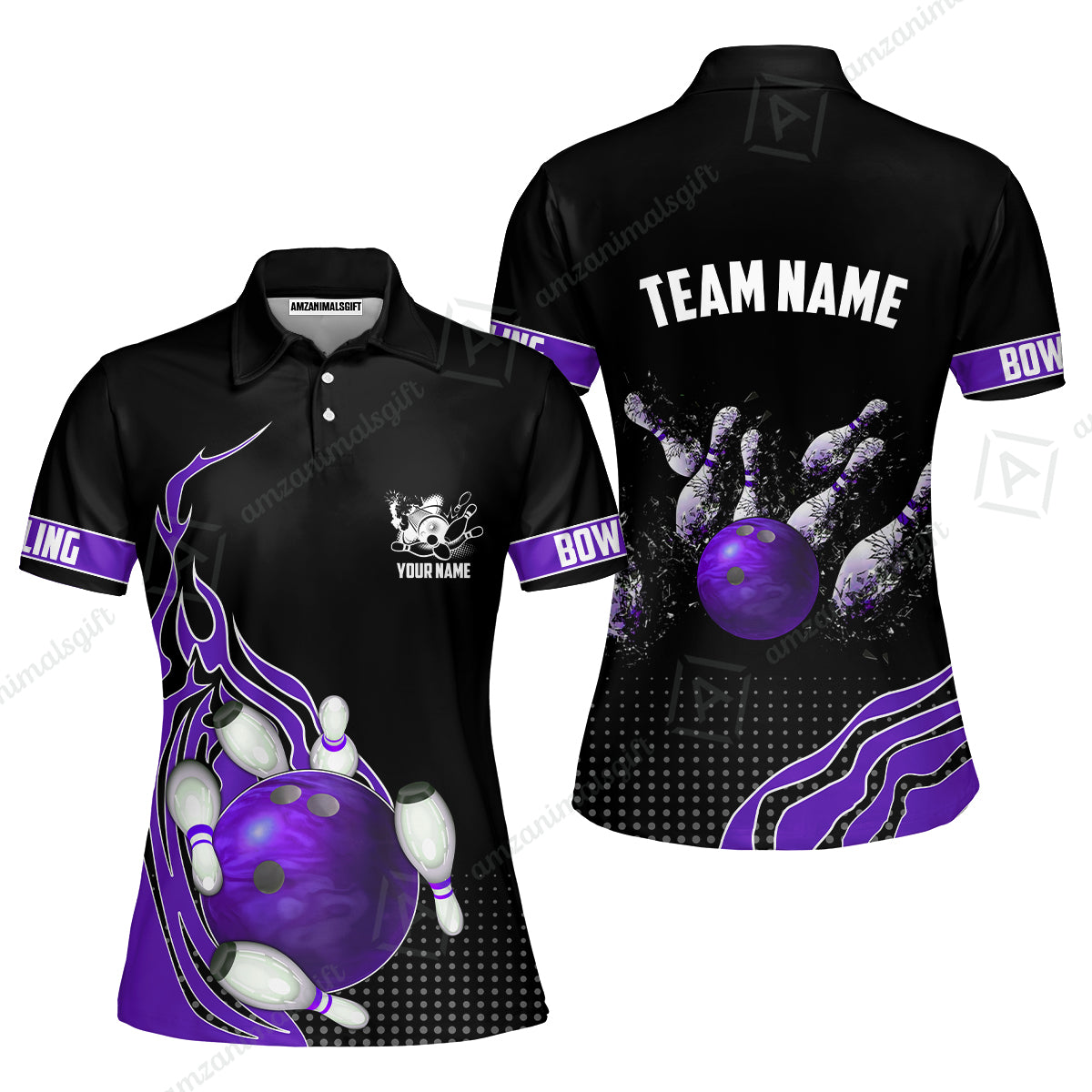 Customized Bowling Unisex Polo Shirt, Bowling And Breaking Pins Multicolor Option Customized Name And Team Name Polo Jerseys Shirts
