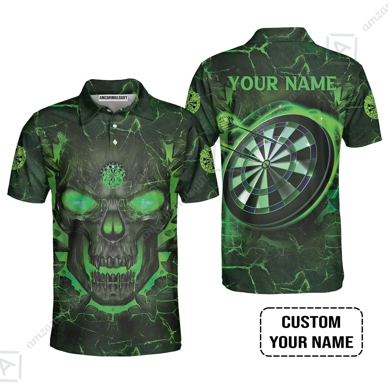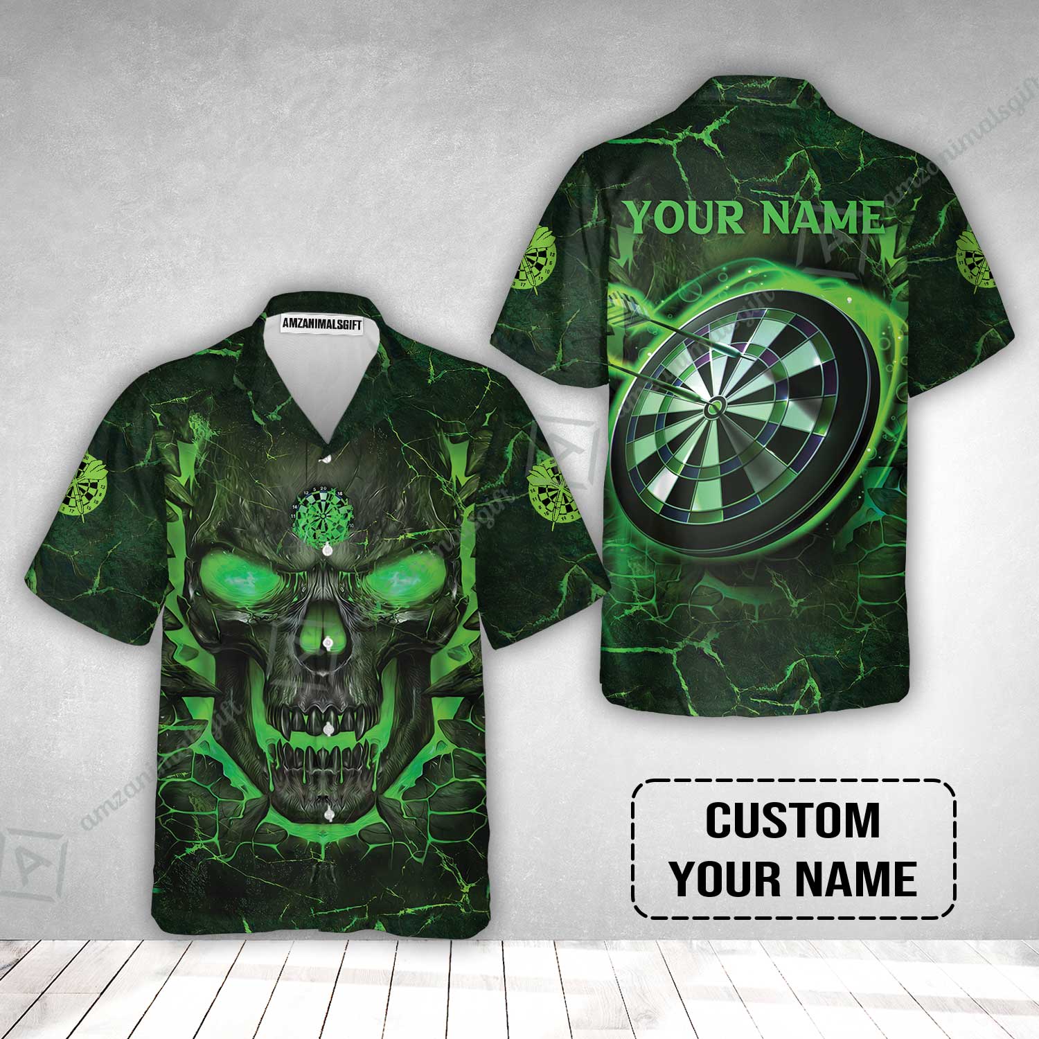 Customized Darts Hawaiian Shirt, Flame Green Skull Dartboard Personalized Skull And Darts Hawaiian Shirt