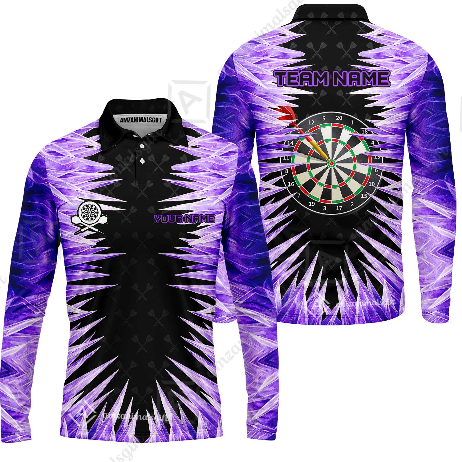 Customized Darts Long Sleeve Polo Shirt, Darts Dartboard Ice And Fire Multicolor Custom Darts Long Sleeve Polo Shirt Team Jersey For Darts Players