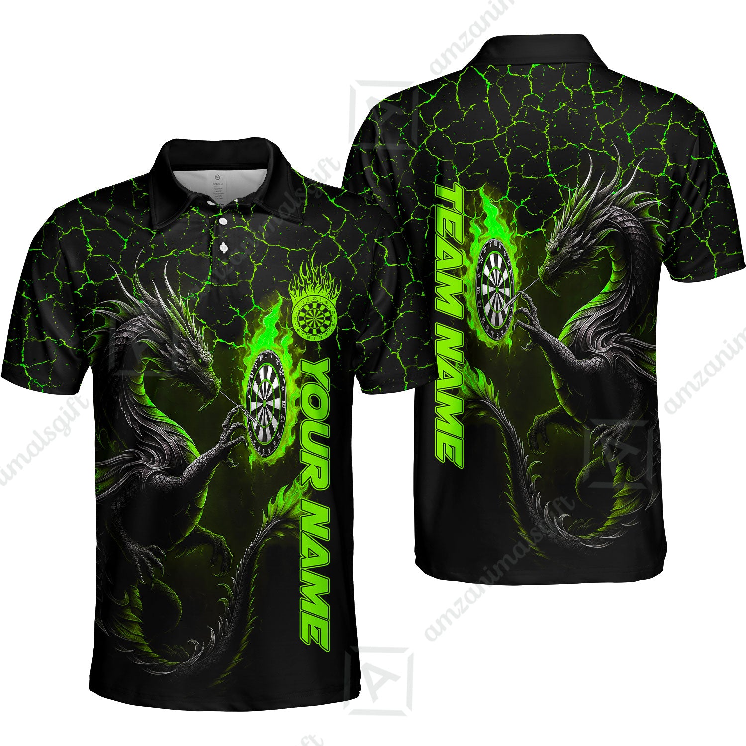 Customized Darts Polo Shirt, Big Dragon Dartboard Flame Darts Polo Shirt Multicolor Team Style, Jersey for Darts Players