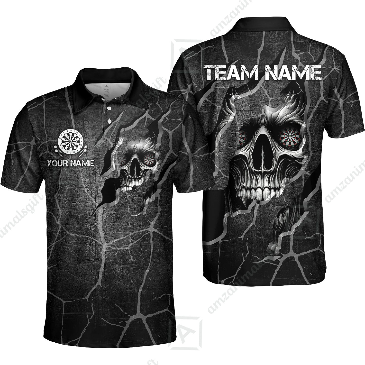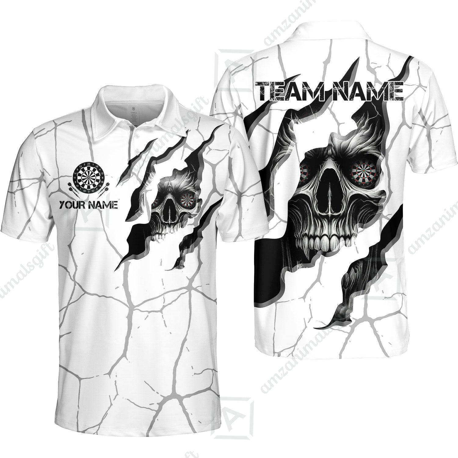 Customized Darts Polo Shirt, Torn-Up Skull Dartboard Eyes Darts Polo Shirt Team Style Jersey for Darts Players