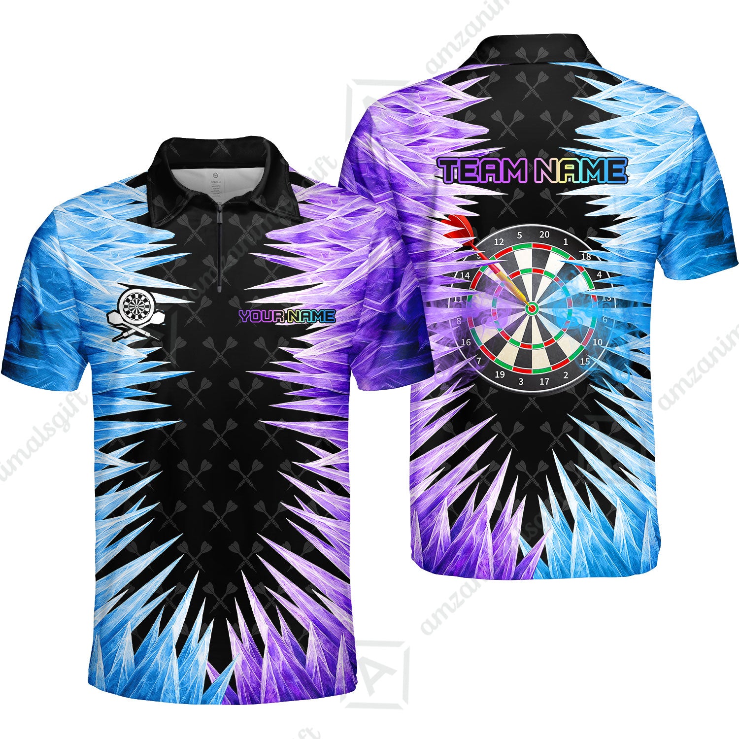 Customized Darts Quarter-Zip Polo Shirt, Darts Dartboard Ice And Fire Multicolor Team Zip Polo Jersey For Darts Players