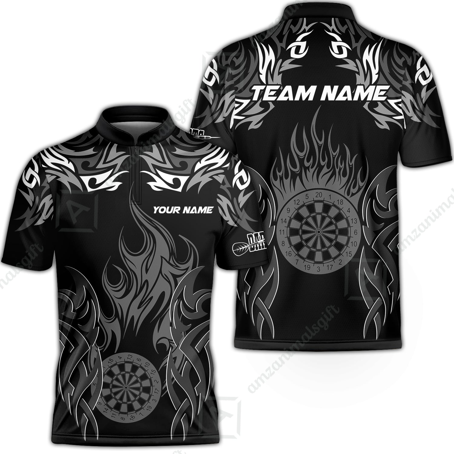 Customized Darts Stand Collar Quarter-Zip Shirt, Dartboard Fire Flame Darts Team Style Jersey for Darts Players