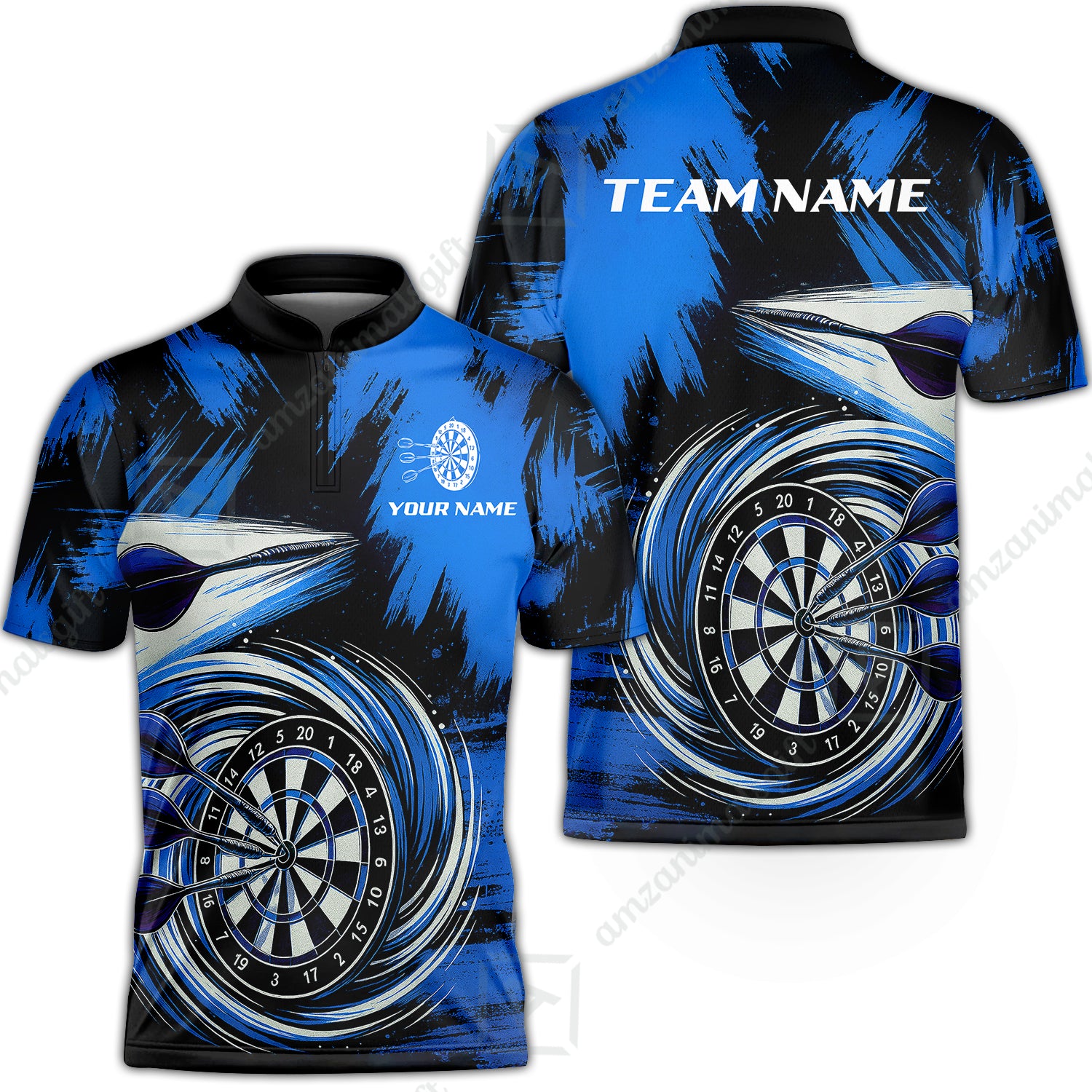 Customized Darts Stand Collar Quarter-Zip Shirt, Darts Colorful Wave Custom Name Team Name Jersey For Darts Player