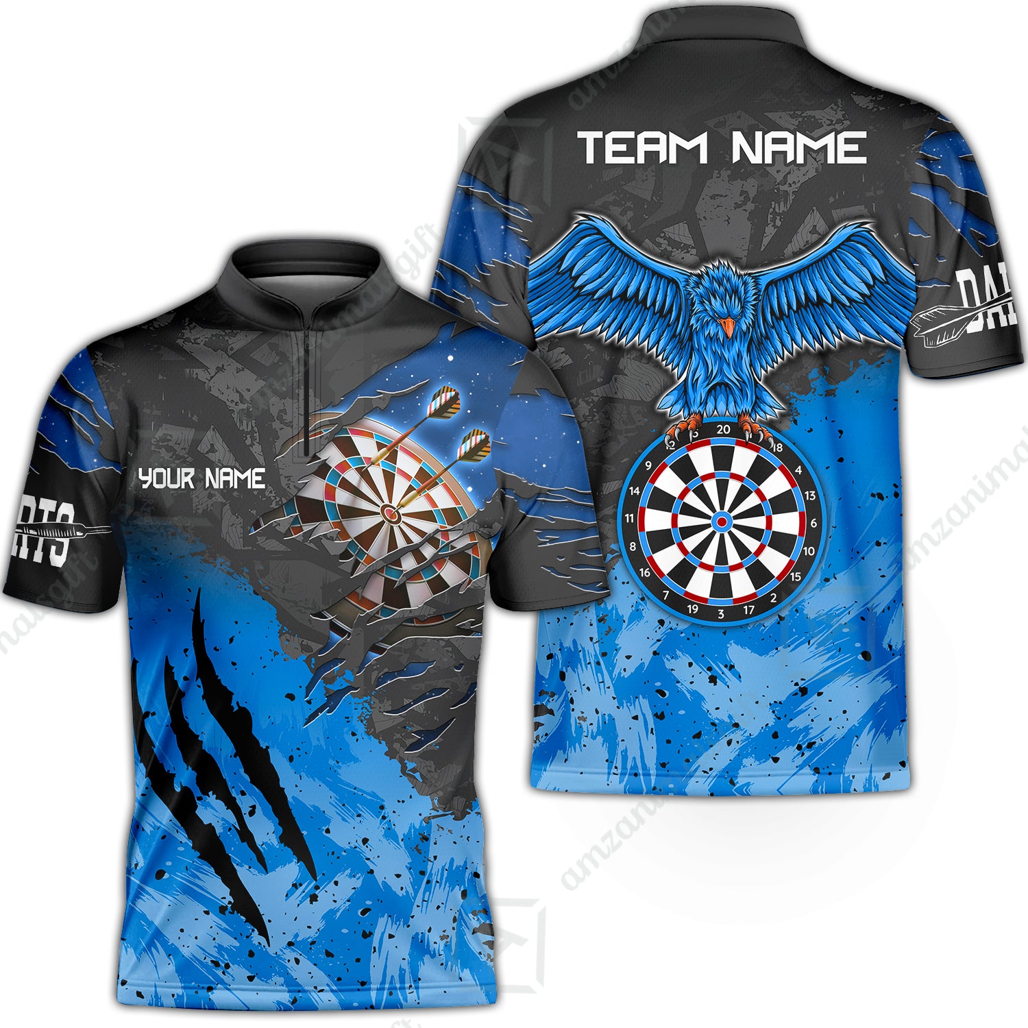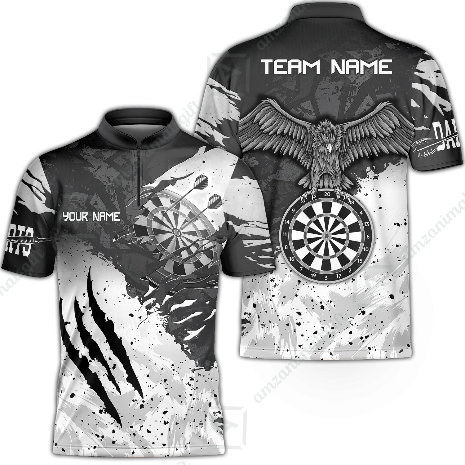 Customized Darts Stand Collar Quarter-Zip Shirt, Darts Eagle Dartboard Multicolor Custom Dart Jersey For Darts Player