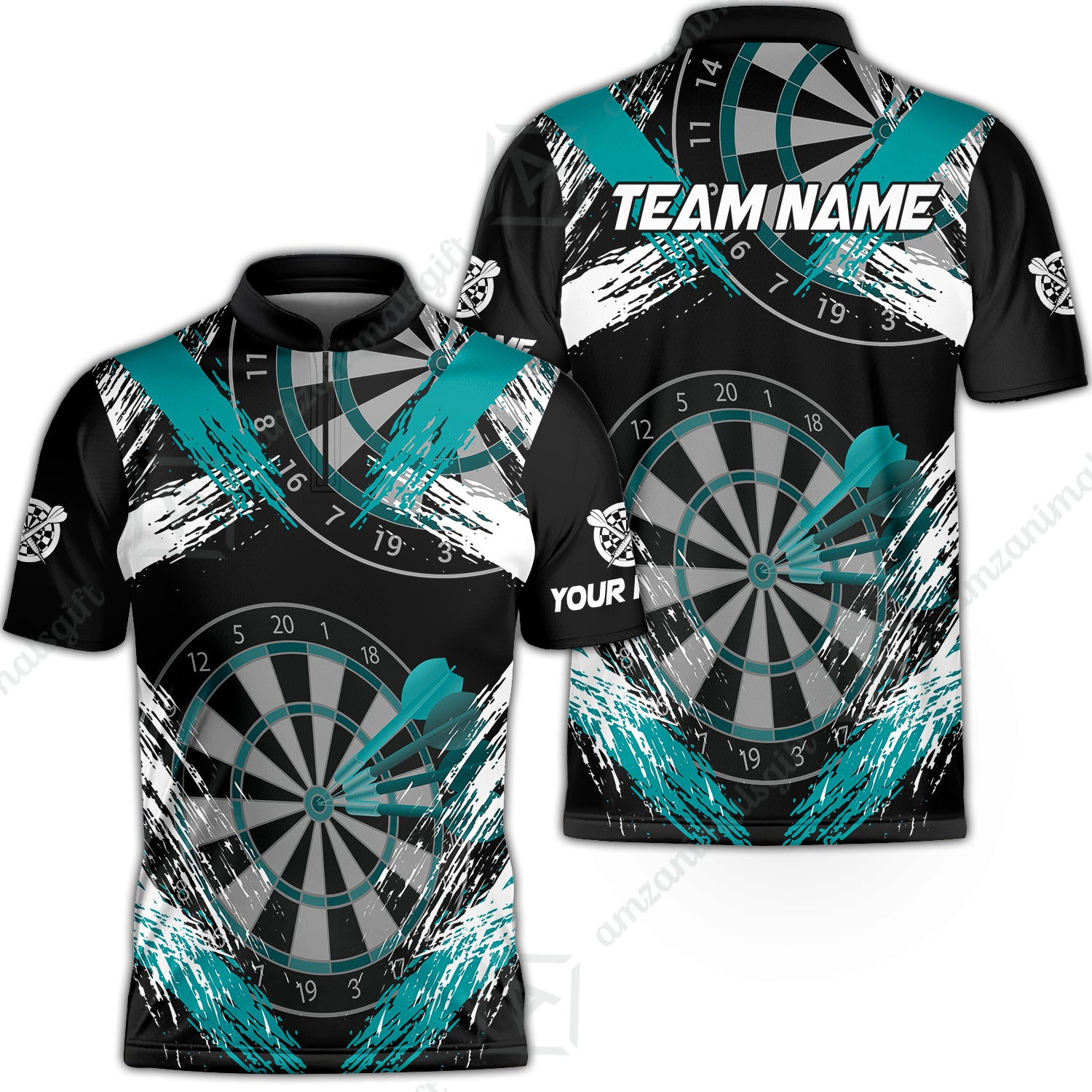Customized Darts Stand Collar Quarter-Zip Shirt, Darts Tournament Grunge Style Multicolor Team Jersey For Darts Player