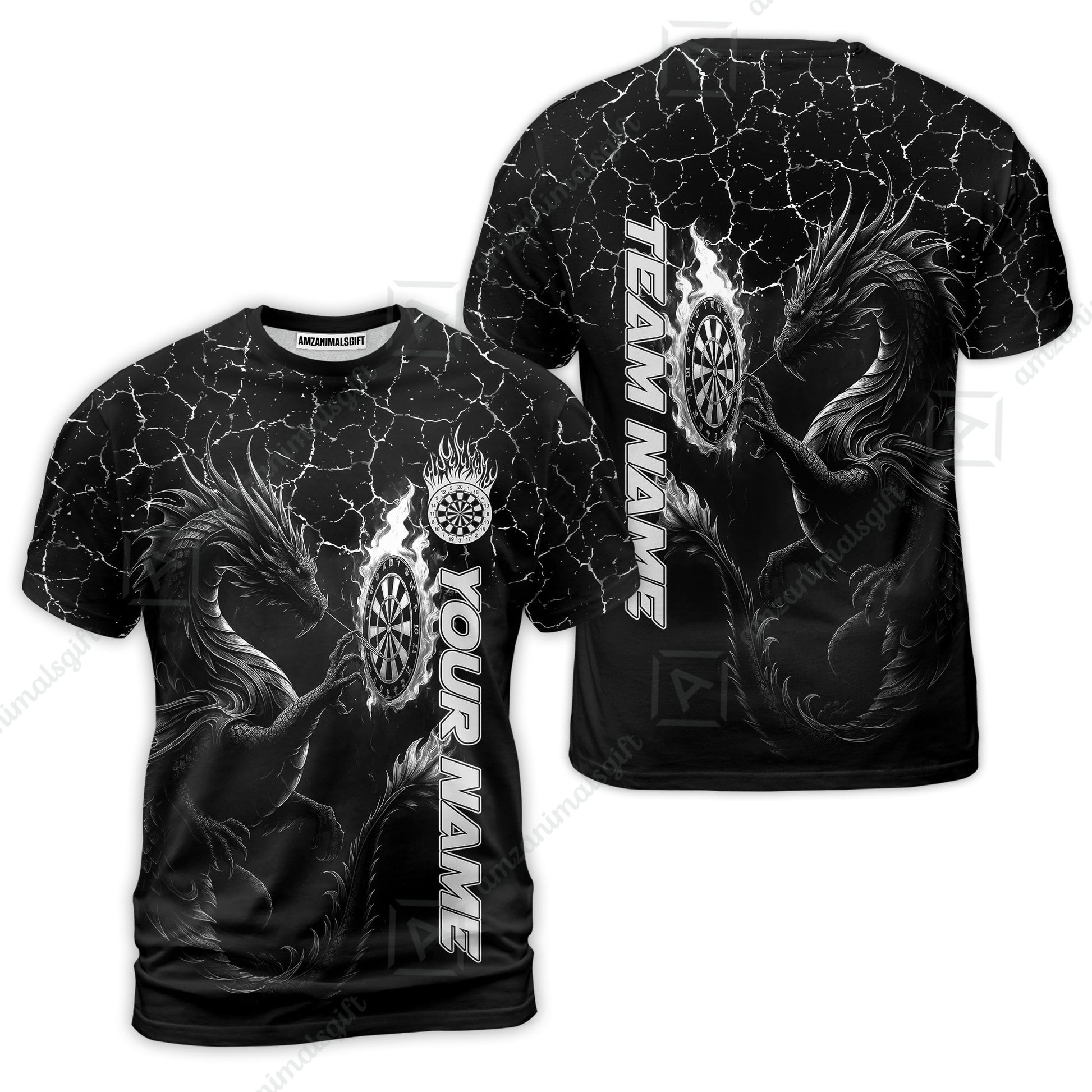 Customized Darts T-Shirt, Big Dragon Dartboard Flame Darts Team Style T-Shirt for Players, Jersey for Darts Players