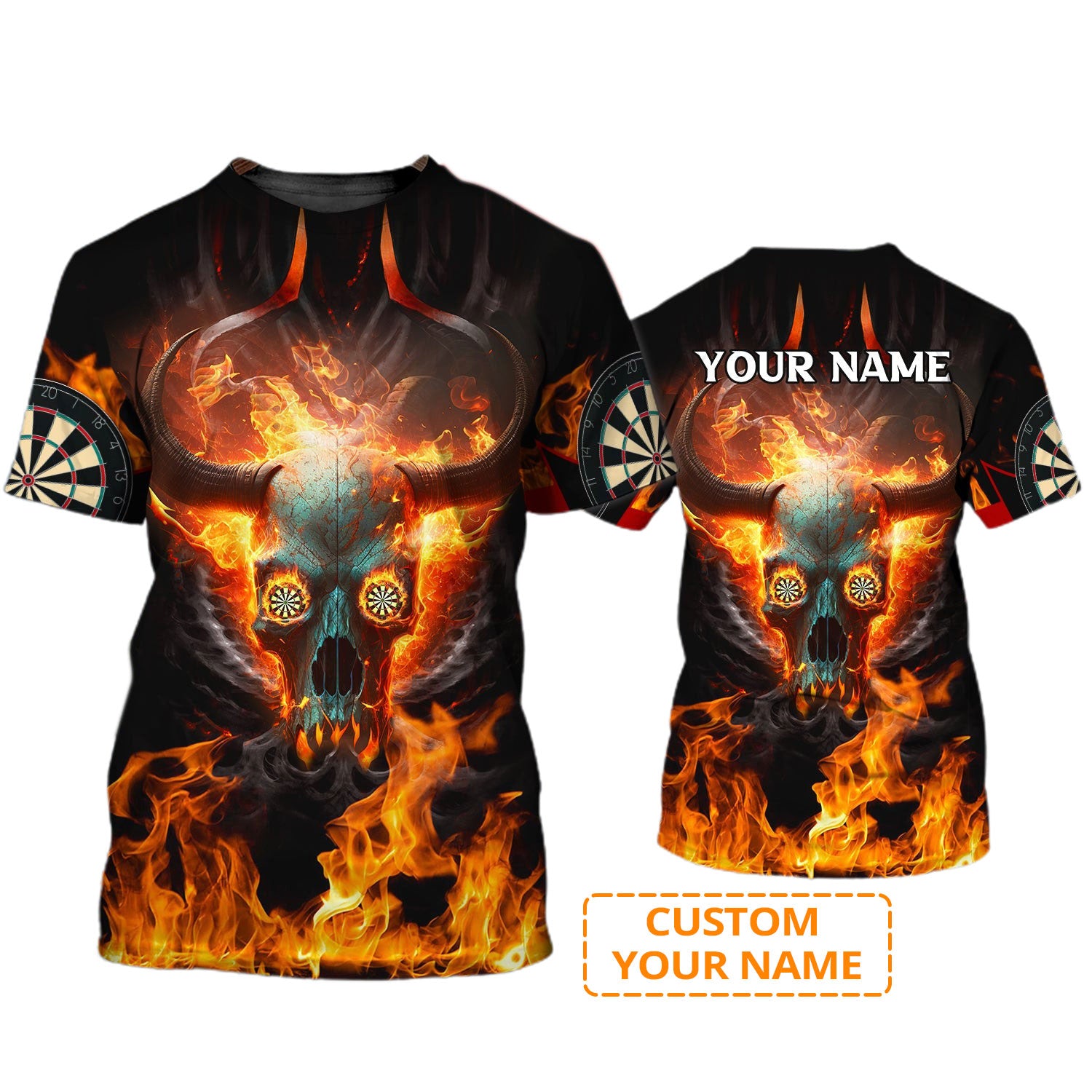 Customized Darts T Shirt, Flame Dartboard Shirt, Personalized Name Skull And Darts T Shirt For Men - Perfect Gift For Darts Lovers, Darts Players.