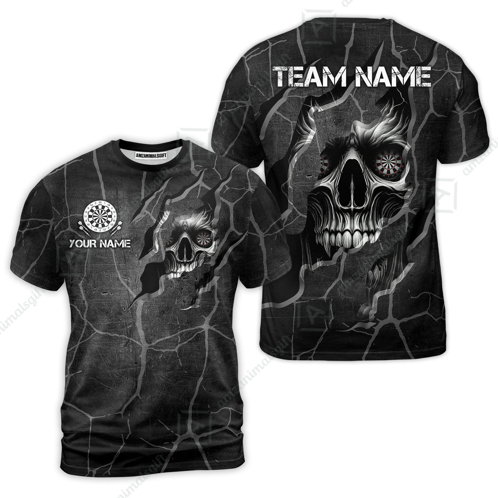 Customized Darts T-Shirt, Torn-Up Skull Dartboard Eyes Darts Team Style T-Shirt for Players, Jersey for Darts Players