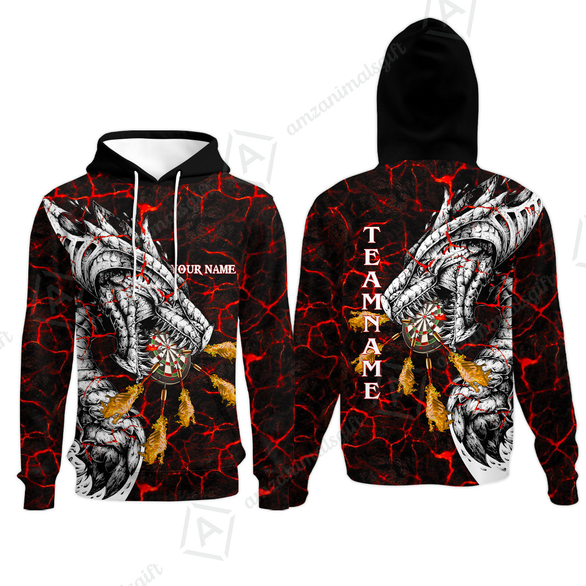 Customized Darts Team Hoodie, Darts And Dragon With Magma Personalized Hoodie For Darts Players