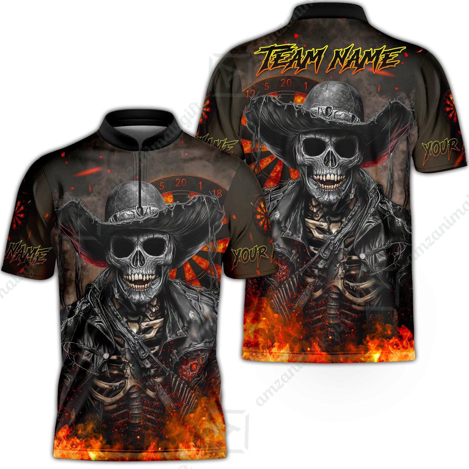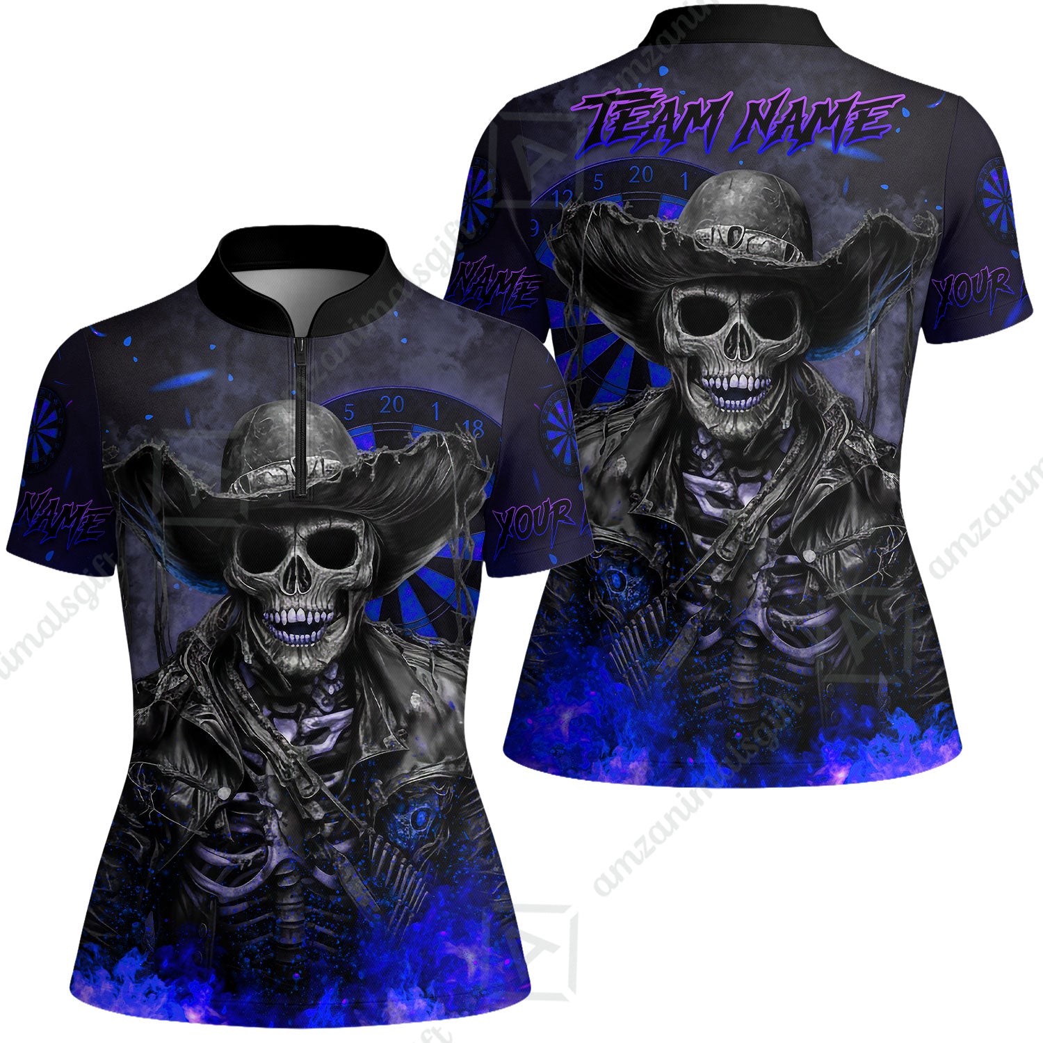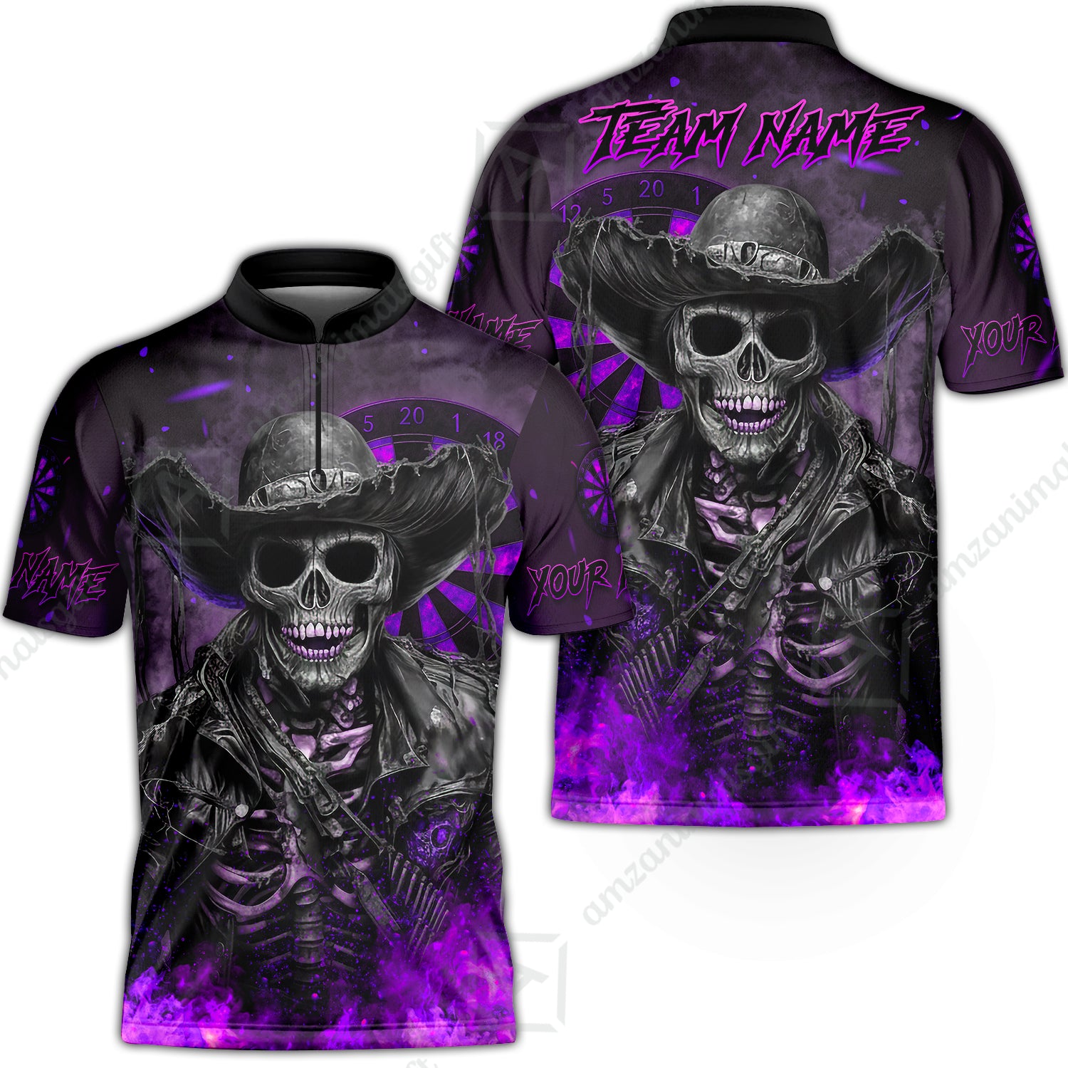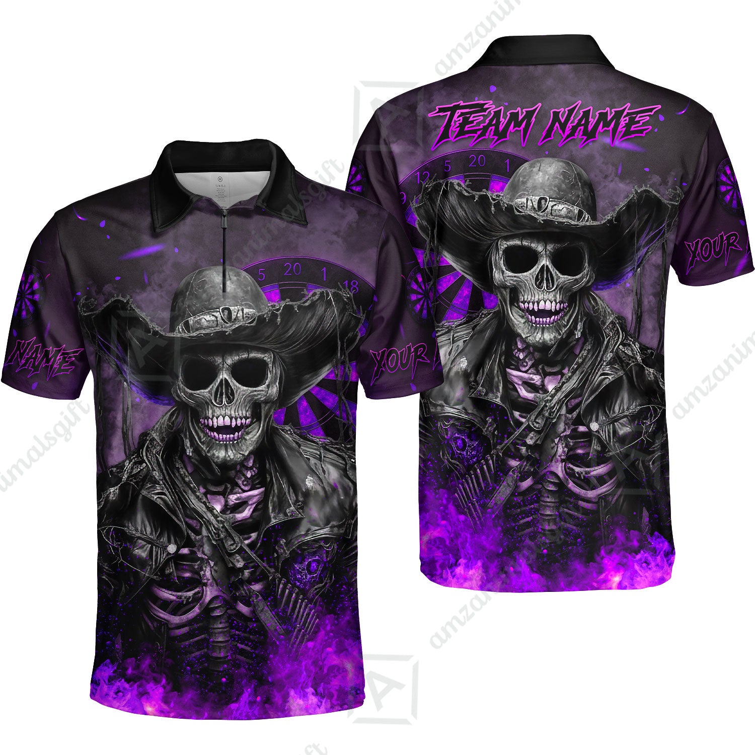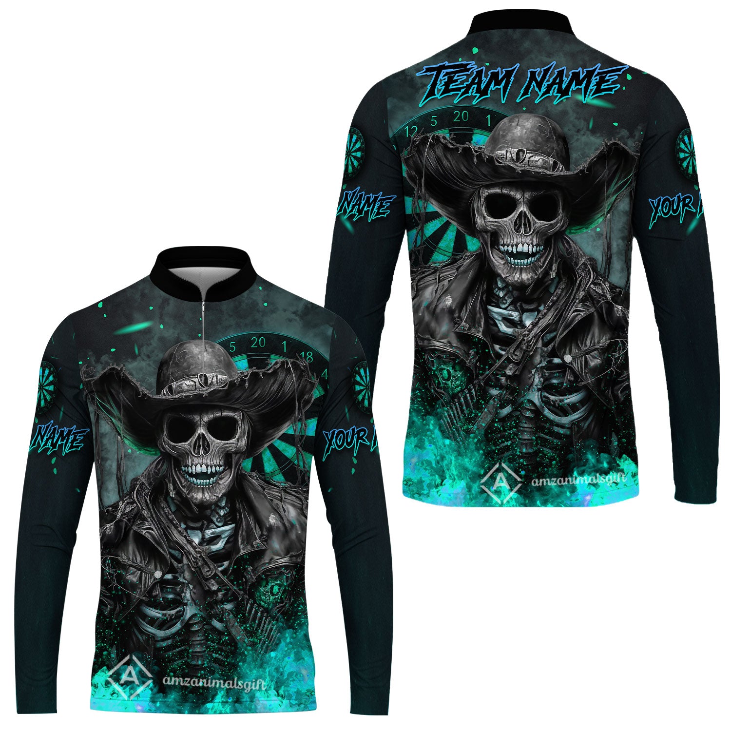 Customized Darts Team Uniform Shirt Darts Cowboy Skeleton Multicolor, Personalized Name And Team Name Darts Shirt