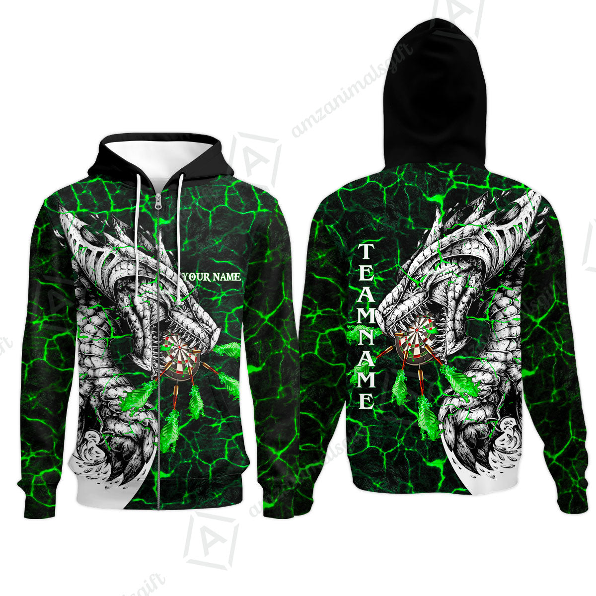 Customized Darts Team Zip Hoodie, Darts And Dragon With Magma Personalized Zip Hoodie For Darts Players