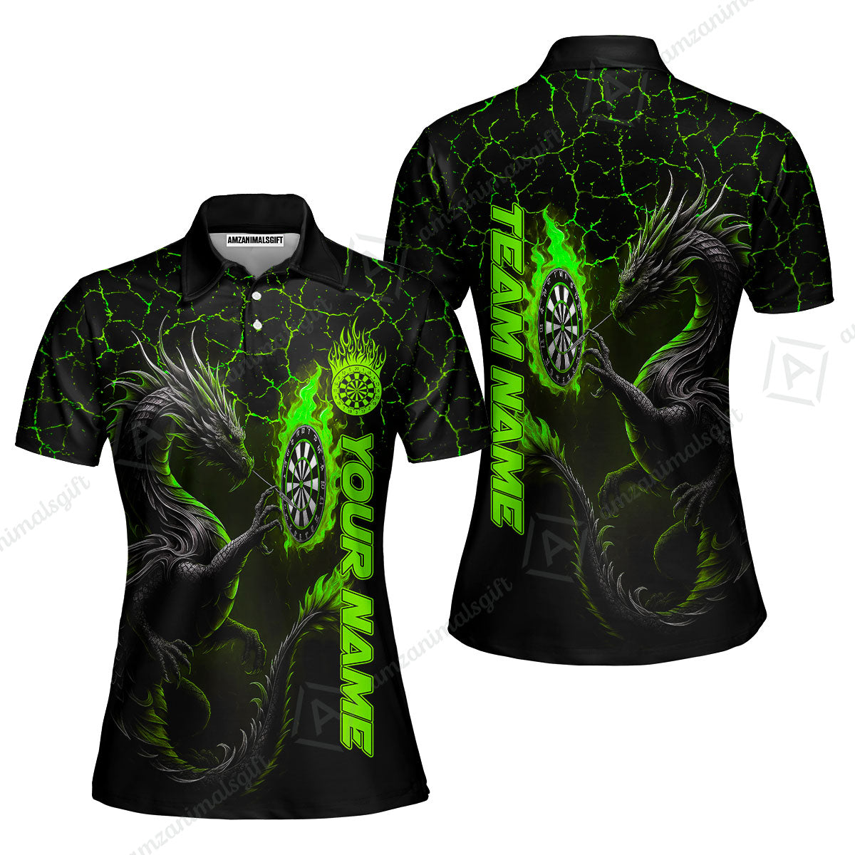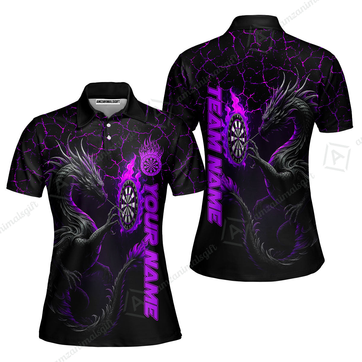 Customized Darts Women Polo Shirt, Big Dragon Dartboard Flame Darts Women Polo Shirt Team Style Jersey for Darts Players