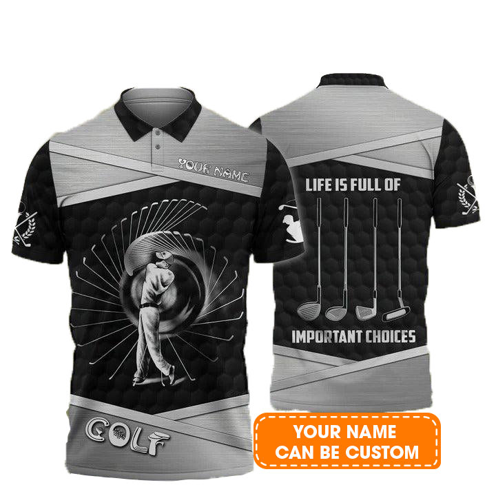 Customized Golf Men Polo Shirt, Swing Golf, Life Is Full Of Important Choices, Personalized Name Polo Shirt For Men - Perfect Gift For Golf Lovers, Golfers