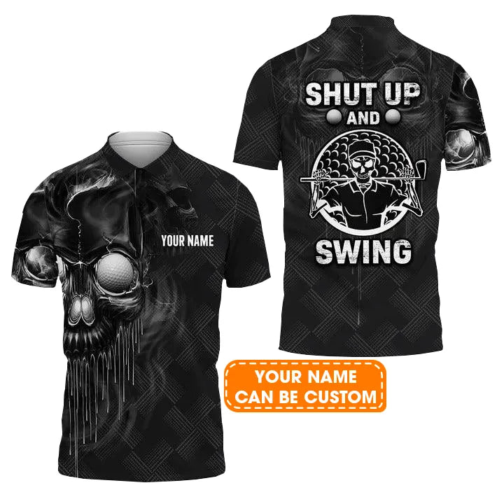 Customized Golf Men Polo Shirts, Skull Golf Shut Up And Swing, Personalized Customized Name Golf Polo Shirt For Men, Golfers