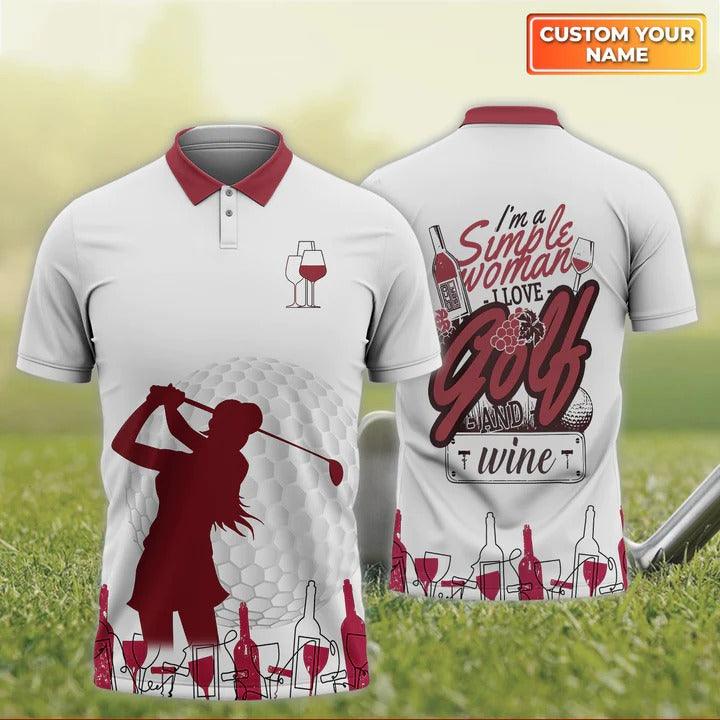 Customized Golf Women Polo Shirt, I'm A Simple Woman Love Golf And Wine, Personalized Name Polo Shirt For Ladies - Perfect Gift For Golf Lovers, Golfers