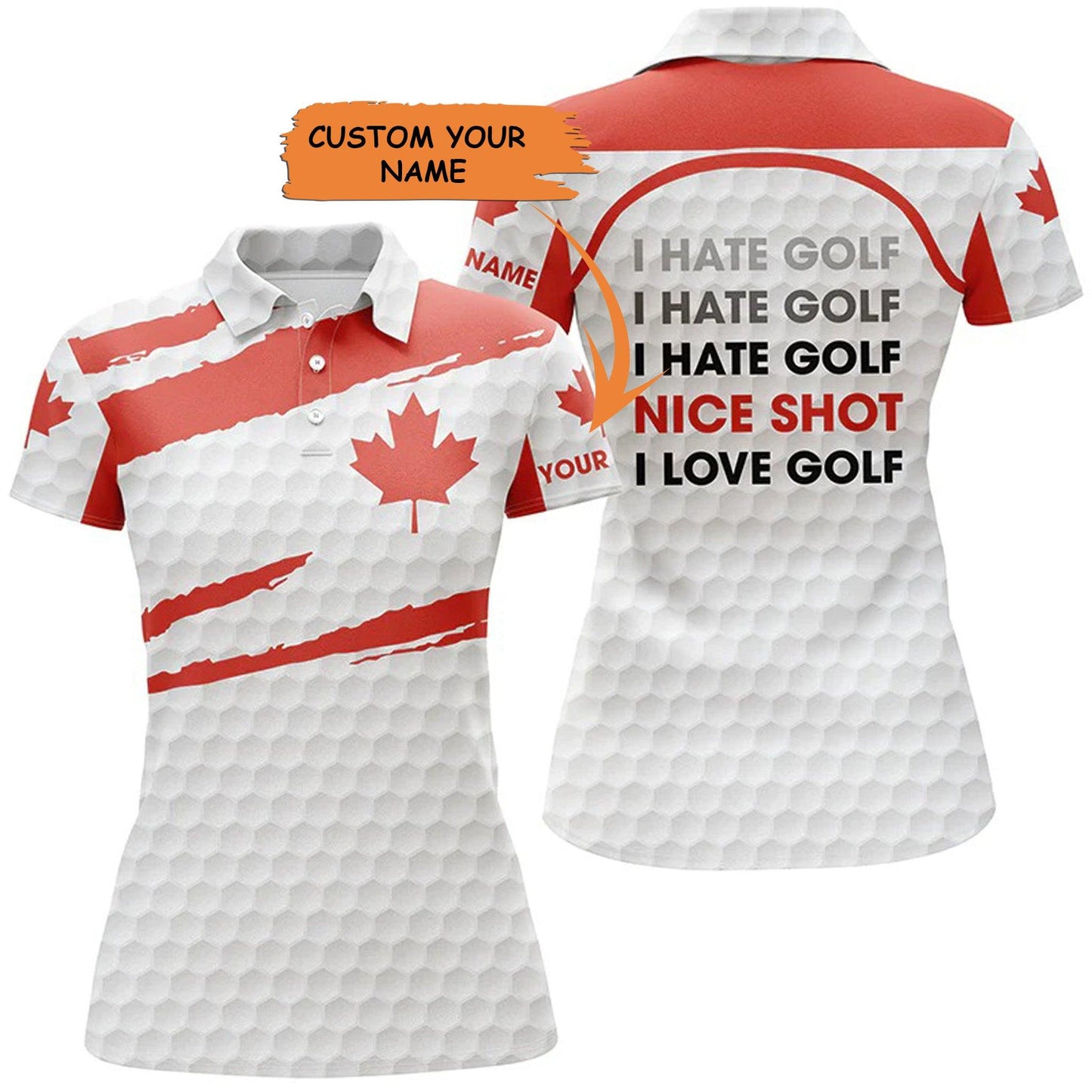 Customized Golf Women Polo Shirts, Canada Flag Patriot Personalized I Hate Golf Nice Shot I Love Golf - Perfect Gift For Ladies, Golf Lovers, Golfers