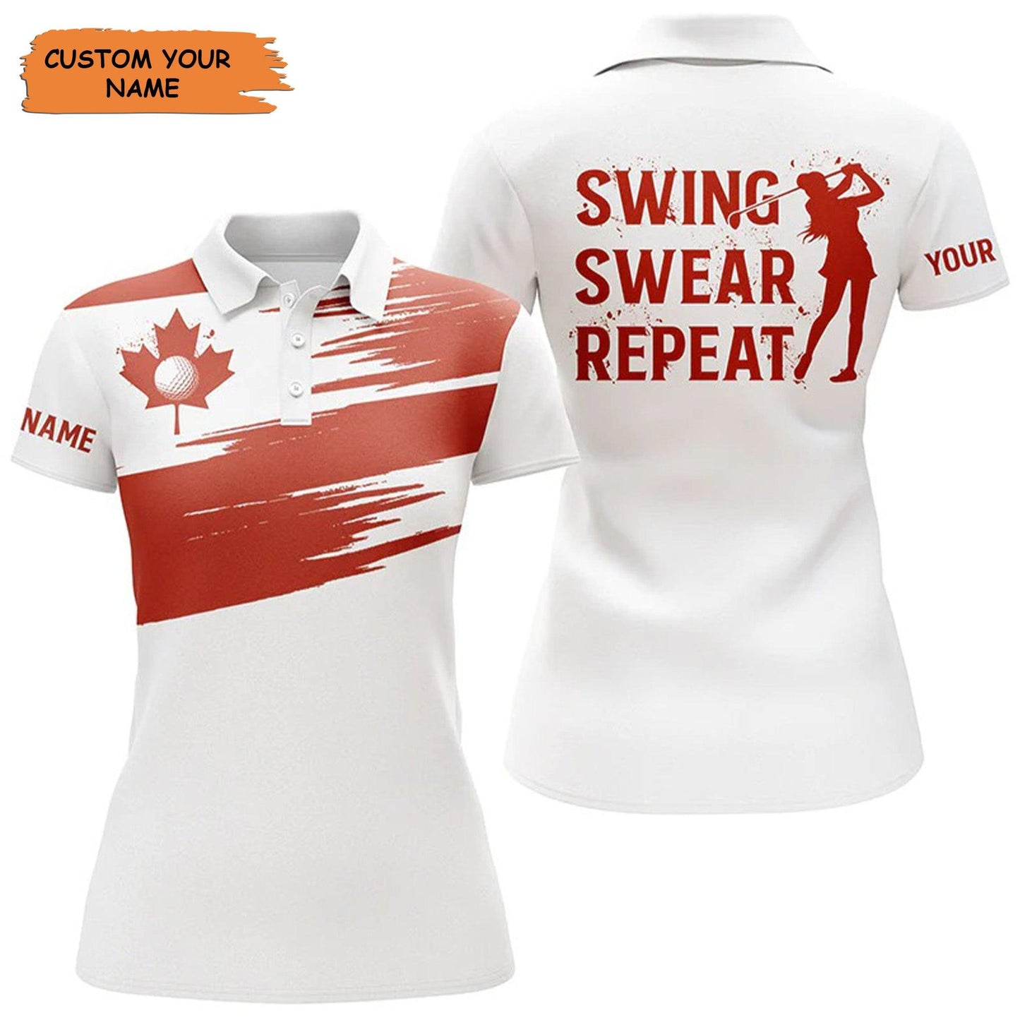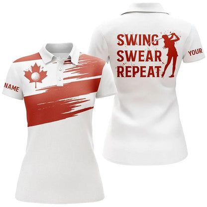 Customized Golf Women Polo Shirts, Canada Flag Patriot Personalized Swing Swear Repeat White Golf Shirt - Perfect Gift For Ladies, Golf Lovers, Golfers