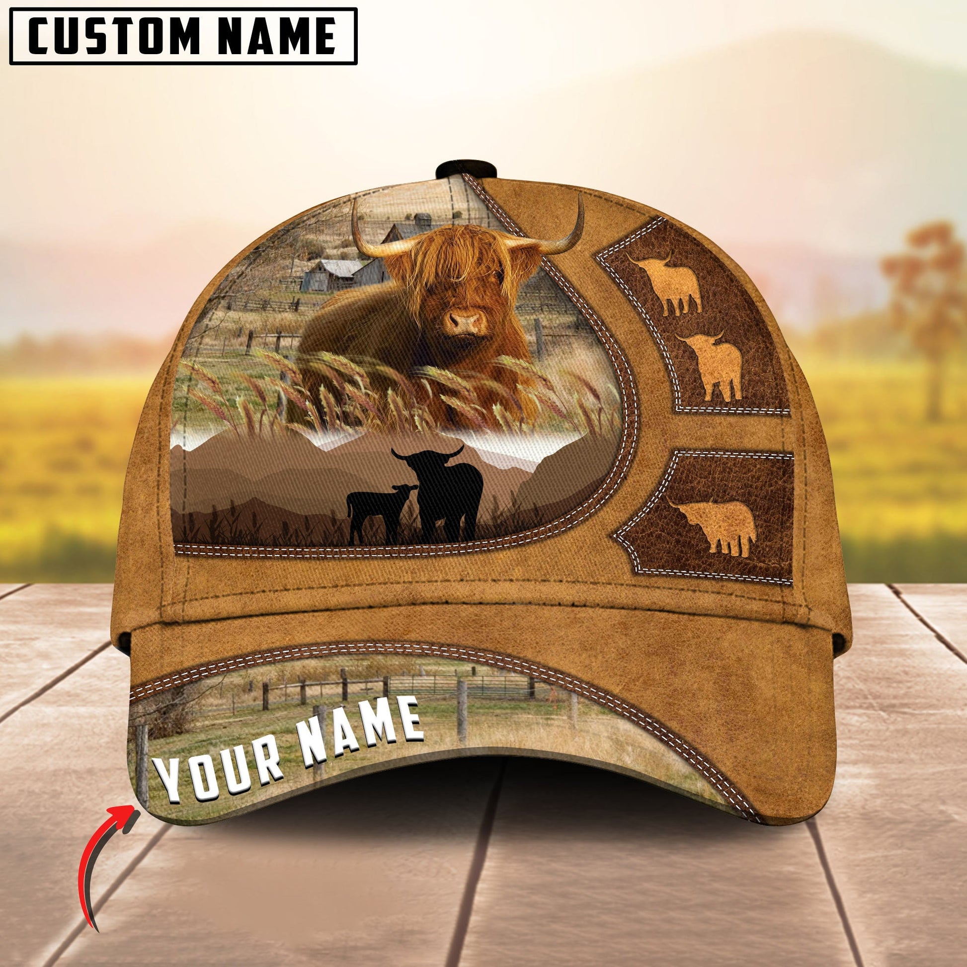 Customized Highland Cattle Caps, Highland On Farm Cow Pattern Light Brown Hats, Best Farm Hat For Men Women Farmer