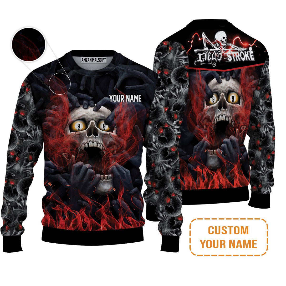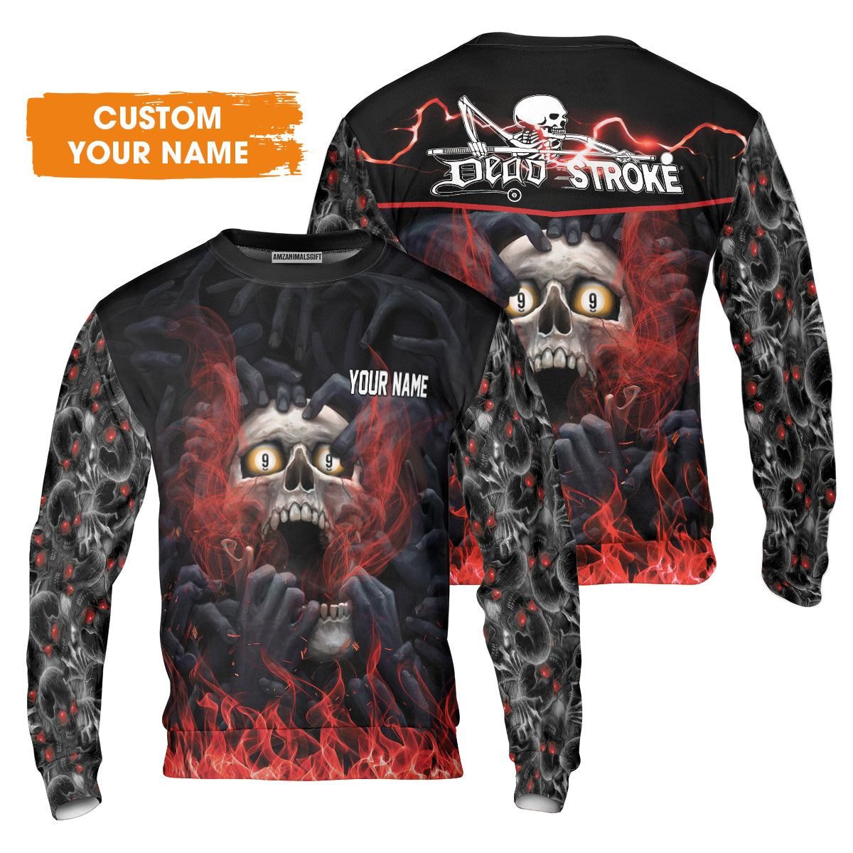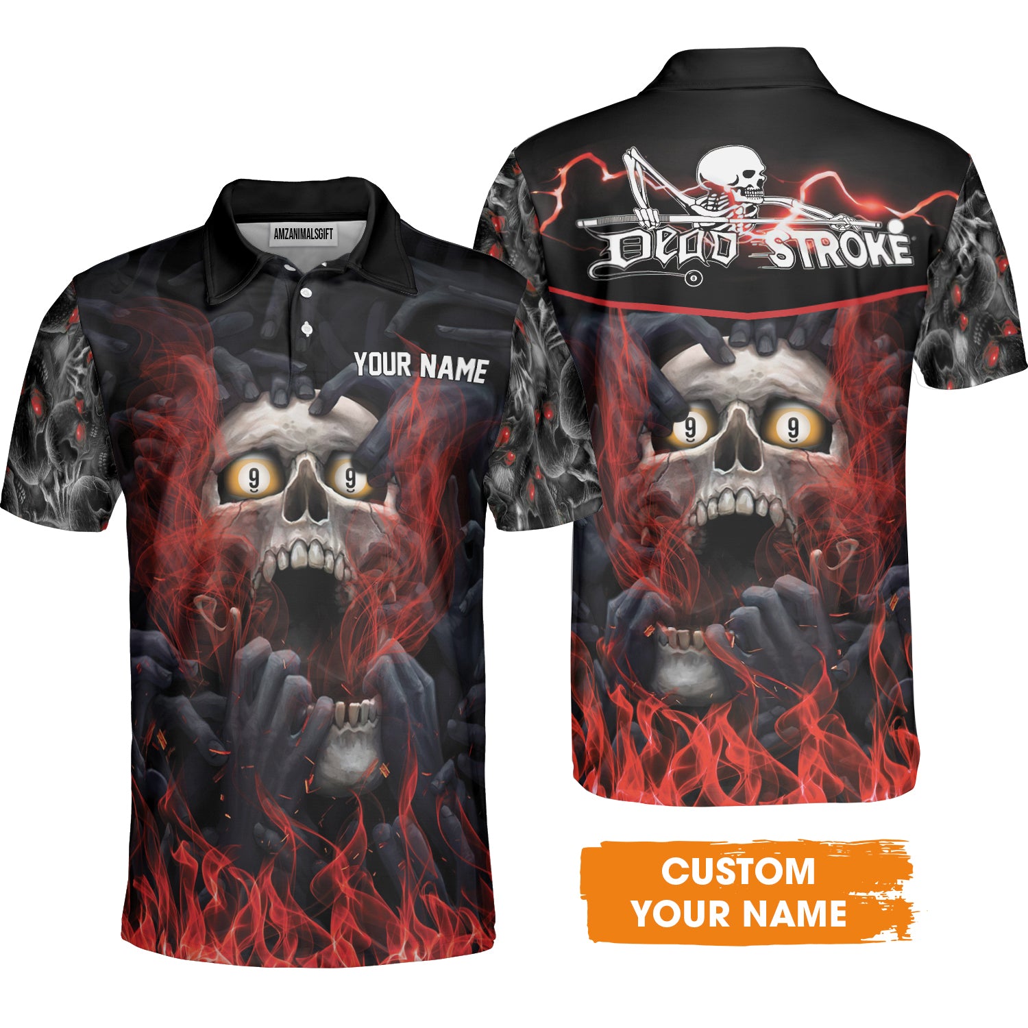 Customized Name Billiard Men Polo Shirt, Dead Stroke Pool 9 Ball Skull On Fire Personalized Polo Shirt - Gift For Billiard Players