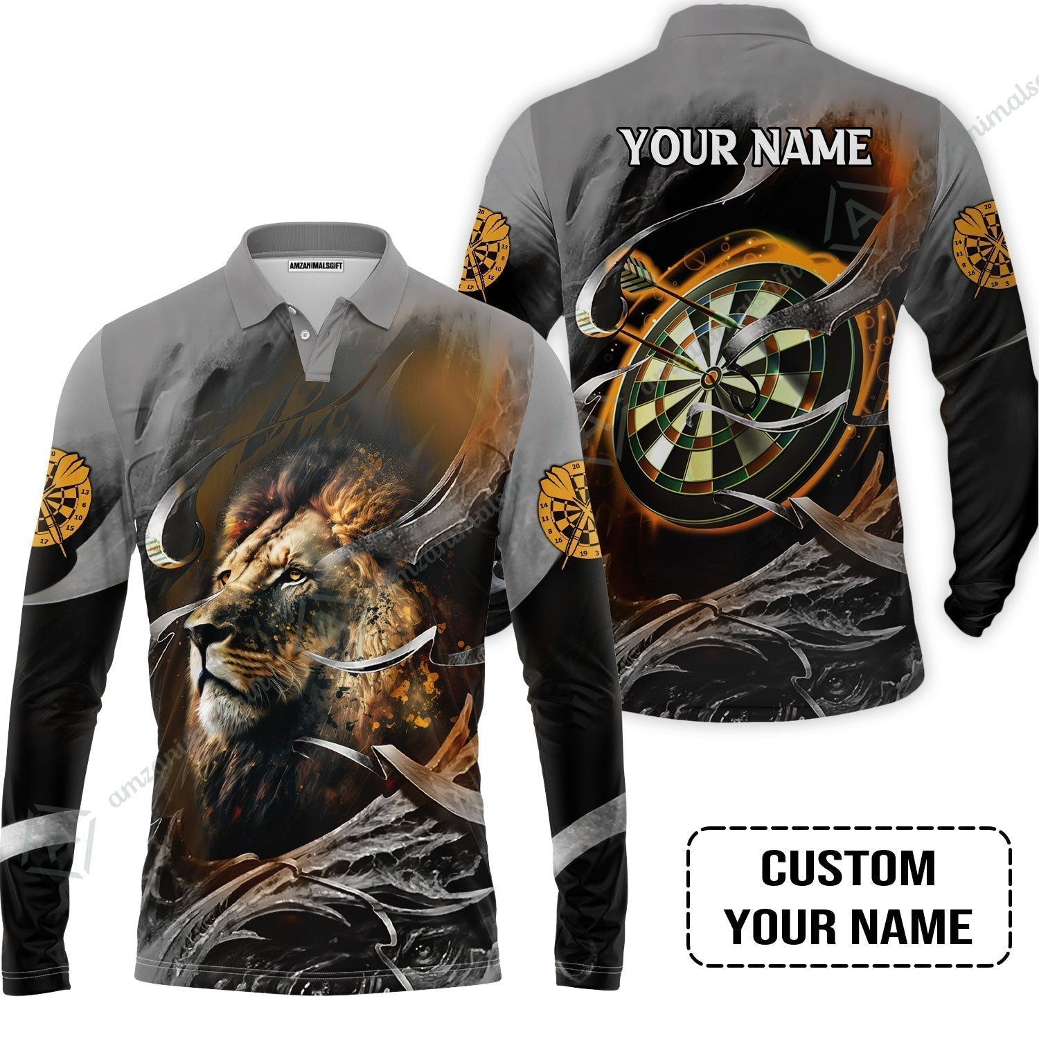 Customized Name Darts Hawaiian Shirt, Bullseye Dartboard Personalized Lion And Darts Hawaiian Shirt