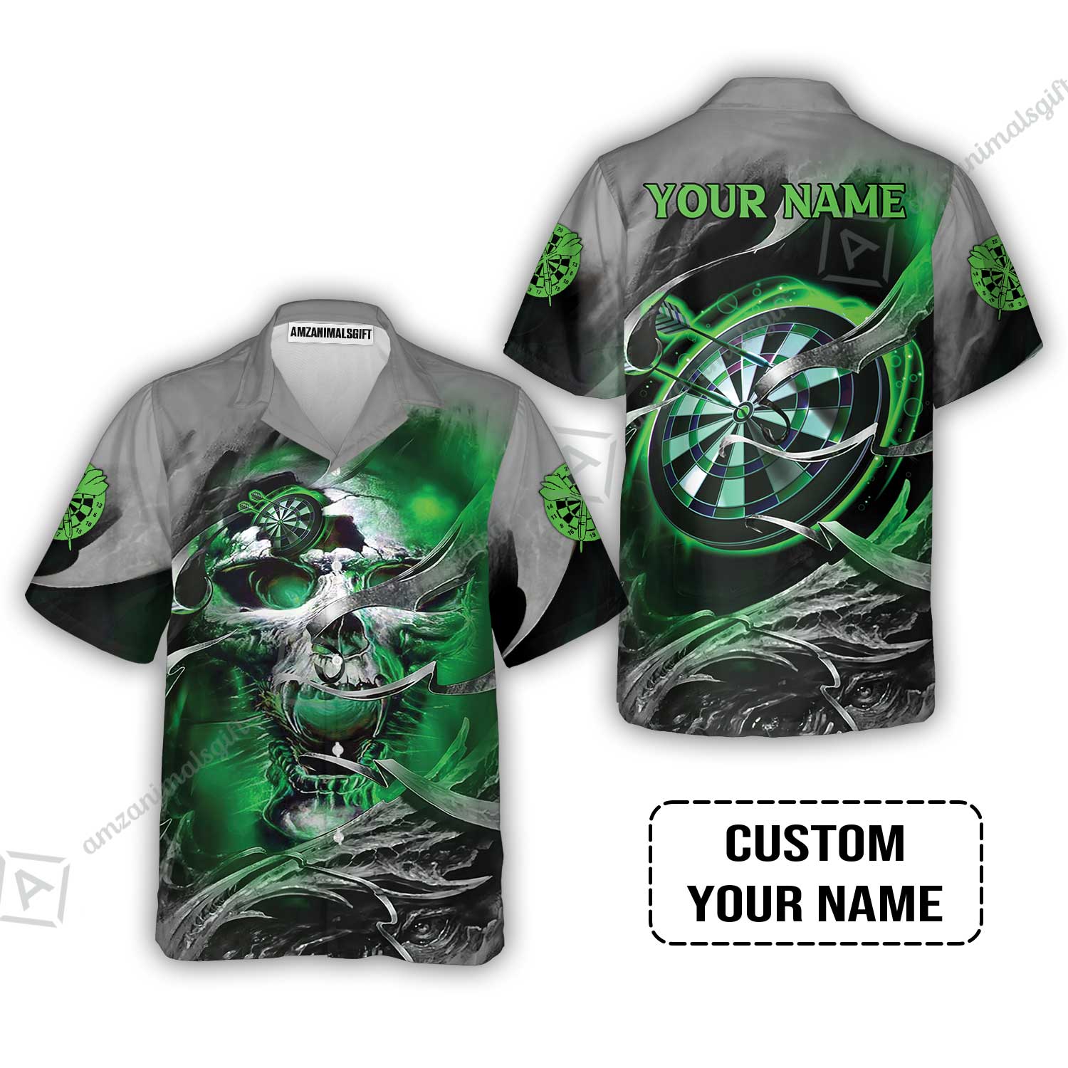 Customized Name Darts Hawaiian Shirt, Green Skull Light Dartboard Personalized Hawaiian Shirt
