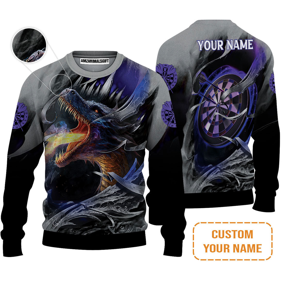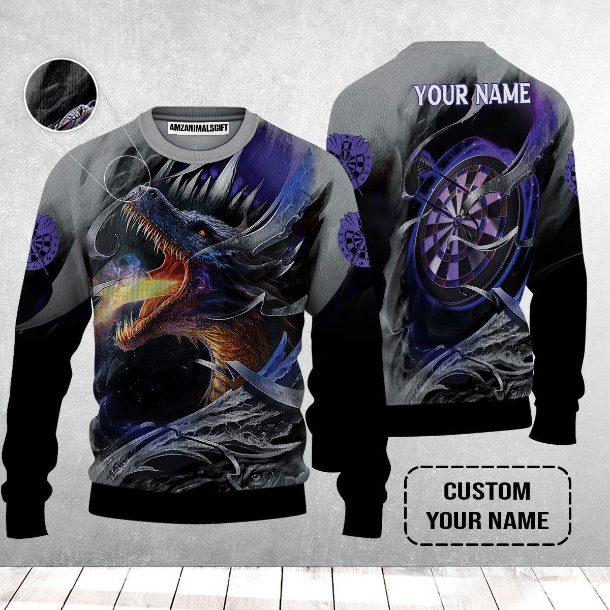 Customized Name Darts Sweater, Bullseye Dartboard Personalized Flame Dragon And Darts Sweater