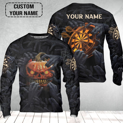 Customized Name Darts Sweatshirt, Bullseye Dartboard Personalized Pumpkin And Darts Sweatshirt