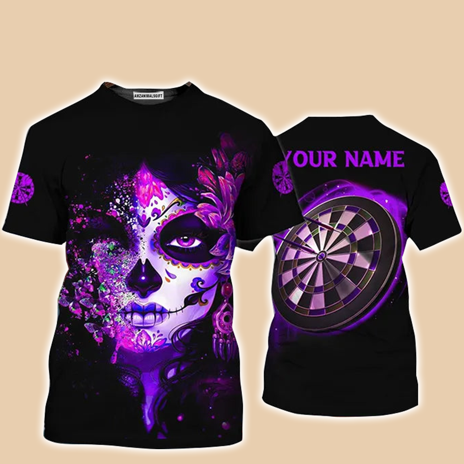 Customized Name Darts T Shirt, Sugar Skull Girl Butterfly And Darts Personalized T Shirt For Men - Gift For Darts Lovers, Darts Player, Dart Team