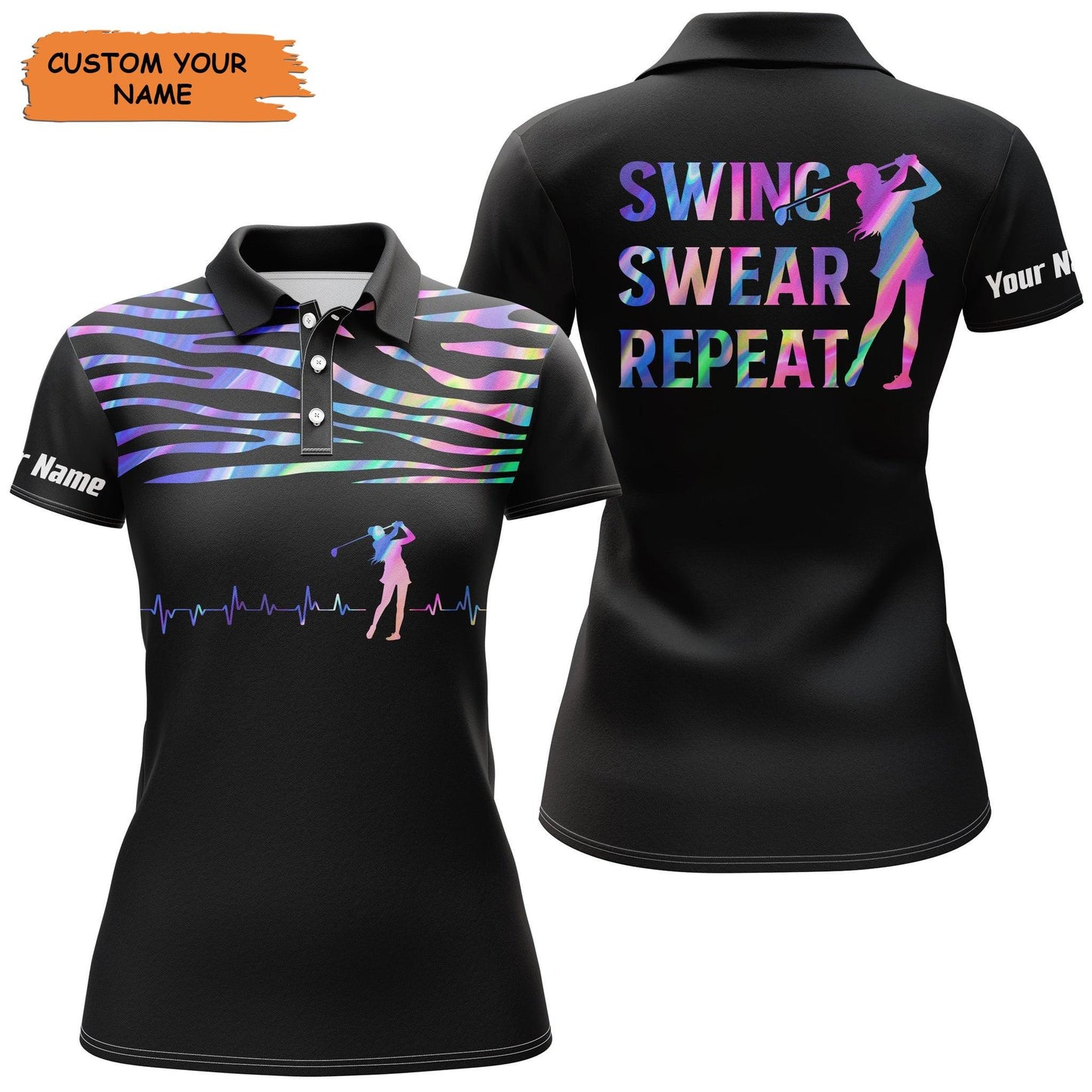 Customized Name Golf Women Polo Shirts, Golf Heart Beat Hologram Personalized Golf Swing Swear Repeat Shirts - Perfect Gift For Golfers, Golf Lovers