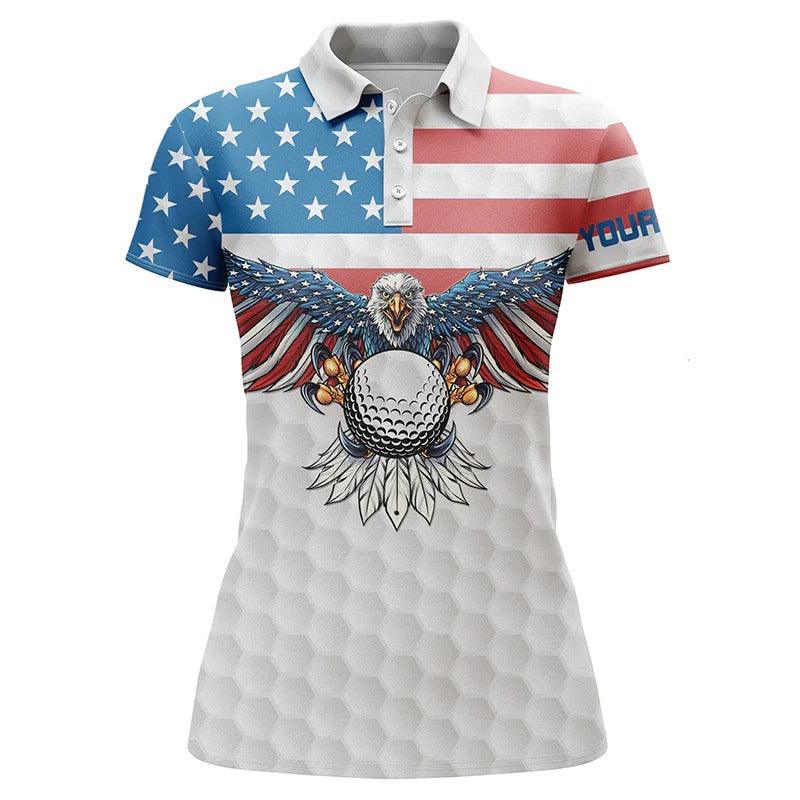 Customized Name Golf Women Polo Shirts, Personalized American Flag Eagle Golf Ball Patriot Shirts For Ladies - Perfect Gift For Golfers, Golf Lovers