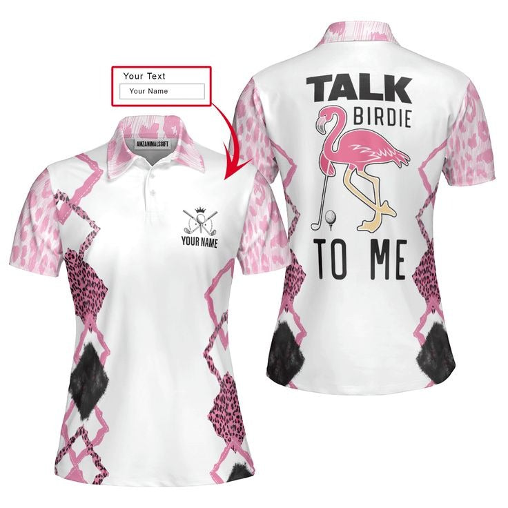 Customized Name Golf Women Polo Shirts, Pink Leopard Personalized Talk Birdie To Me Flamingo Shirts - Perfect Gift For Ladies Golf Lovers, Golfers