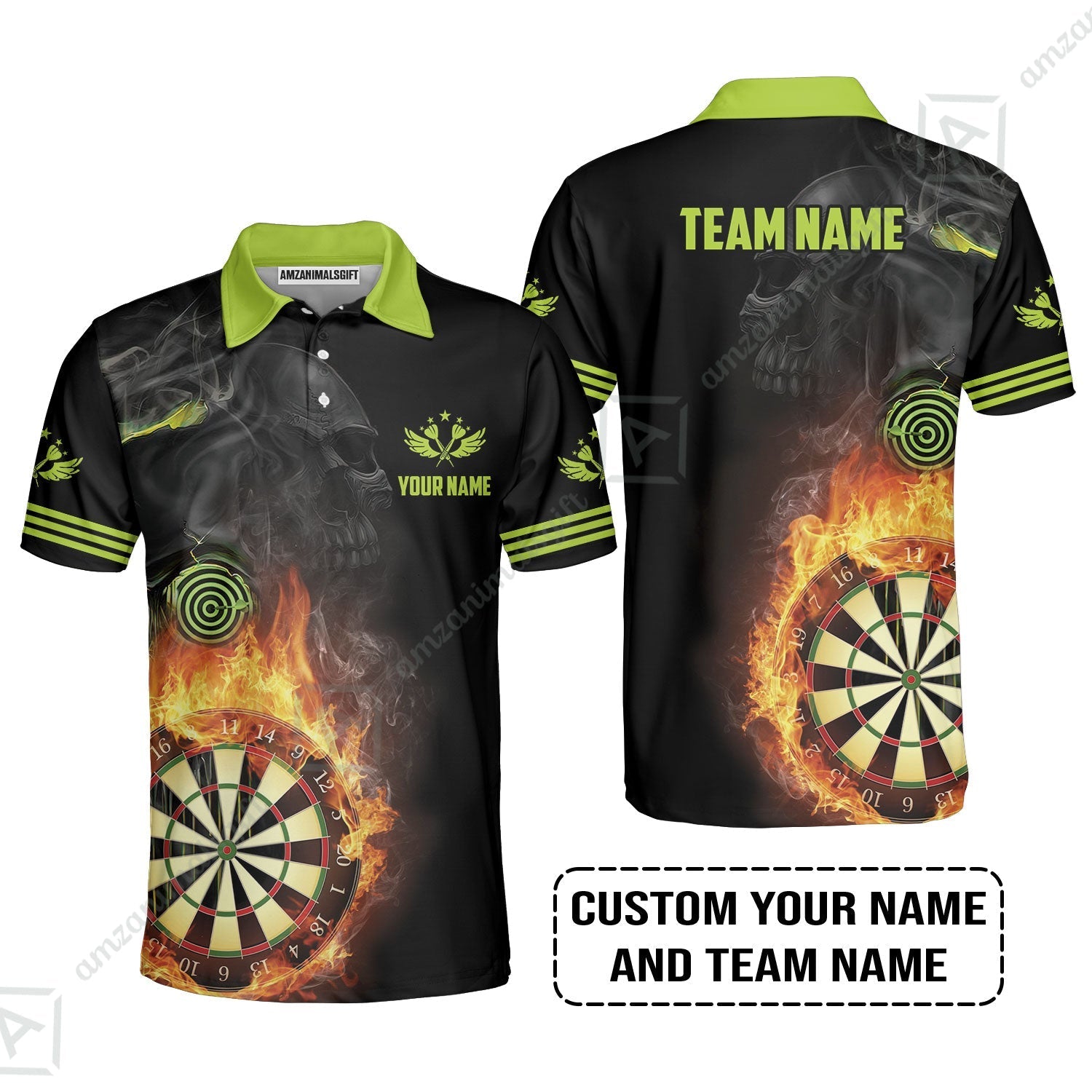 Customized Name & Team Darts Zip Polo Shirt, Skull Darts Flame Personalized Darts Zip Polo Shirt