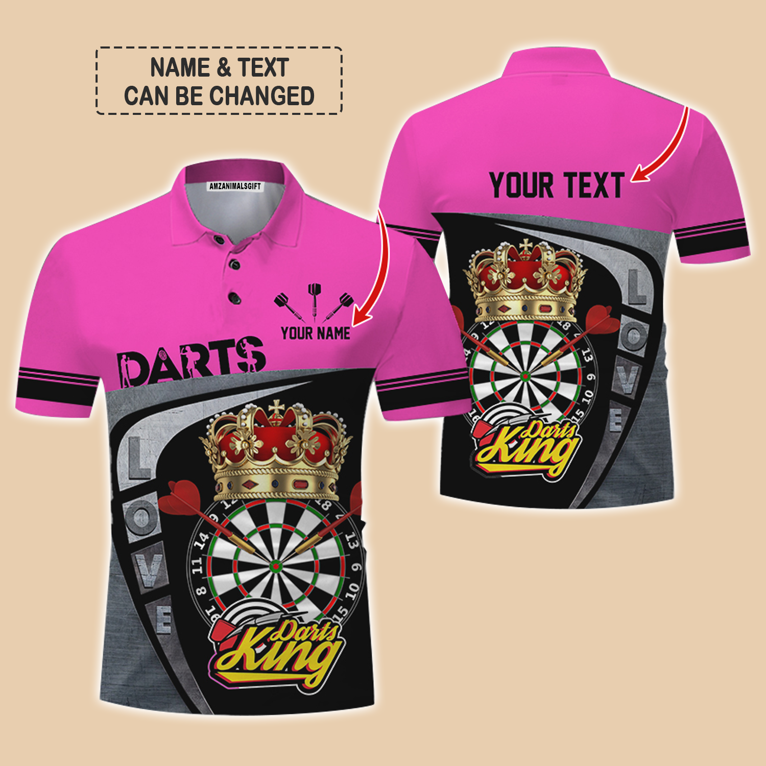 Customized Name & Text Darts Polo Shirt, Darts King Personalized Name Darts Uniforms Polo Shirt For Men - Perfect Gift For Darts Lovers, Darts Players