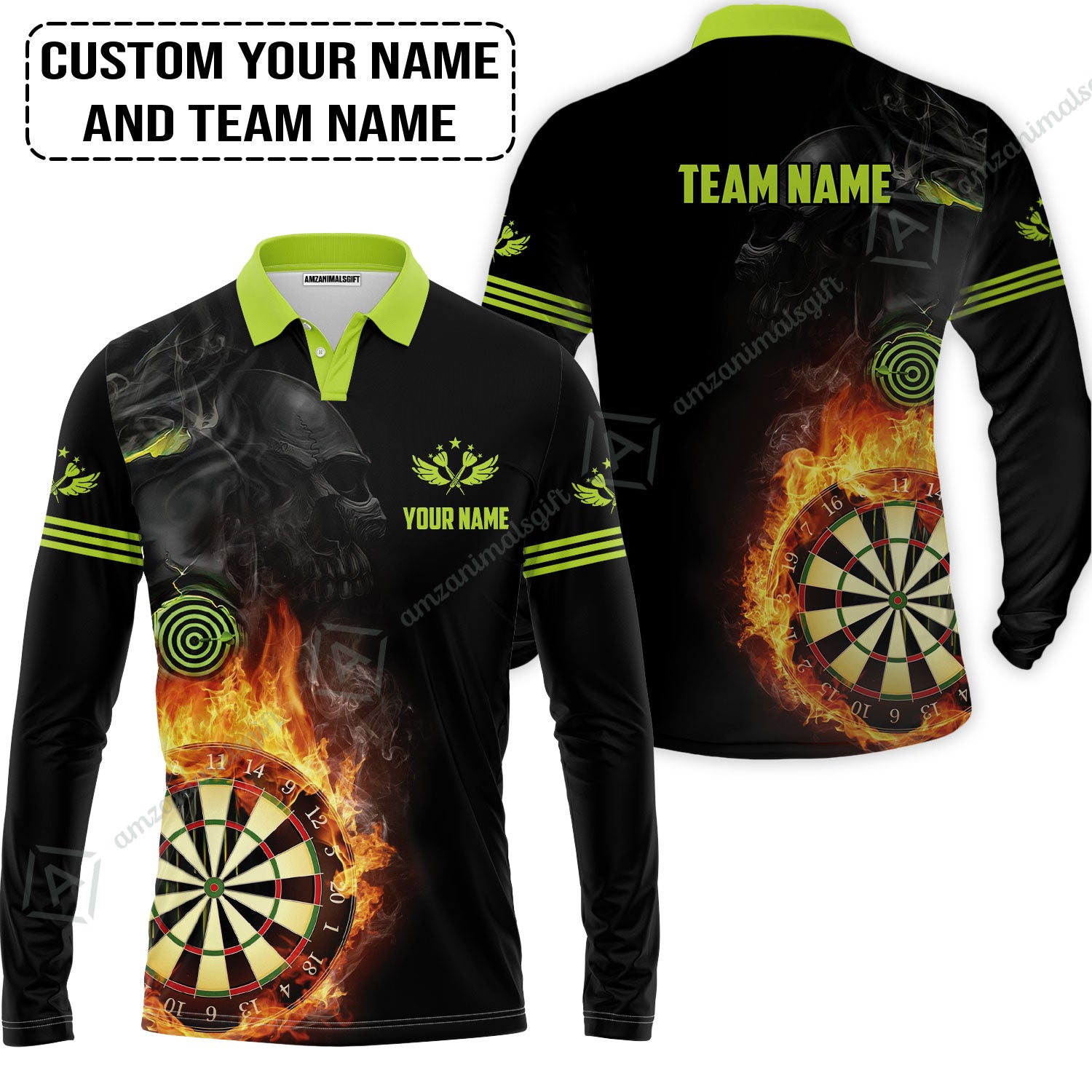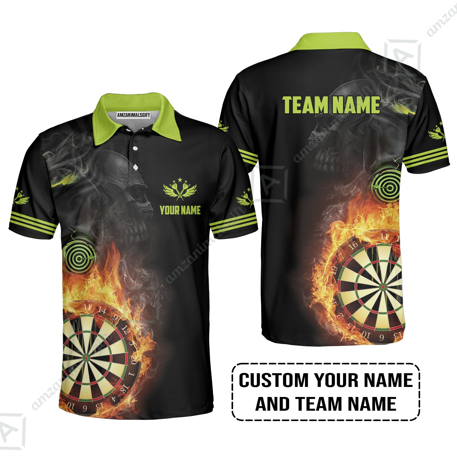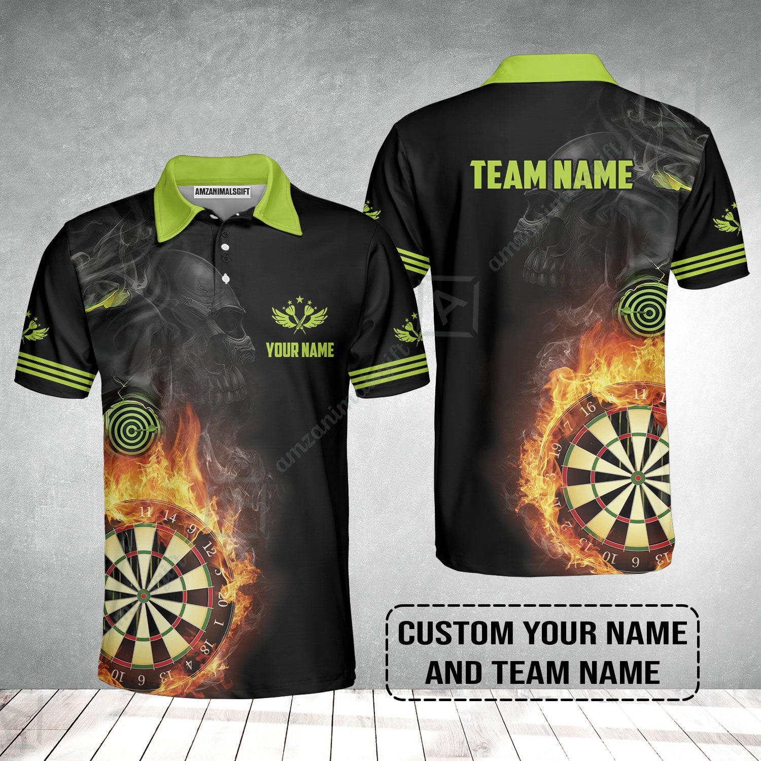 Customized Name & Team Darts Polo Shirt, Skull Darts Flame Personalized Darts Polo Shirt