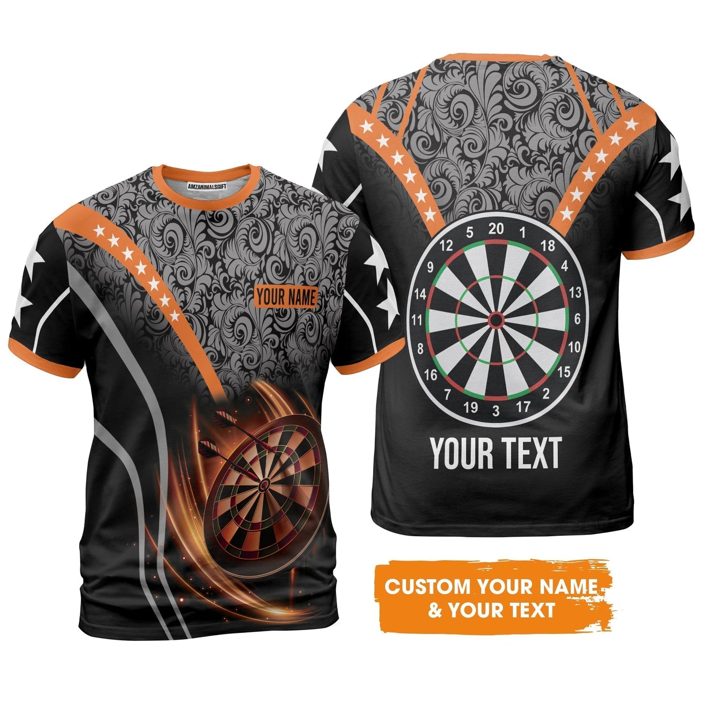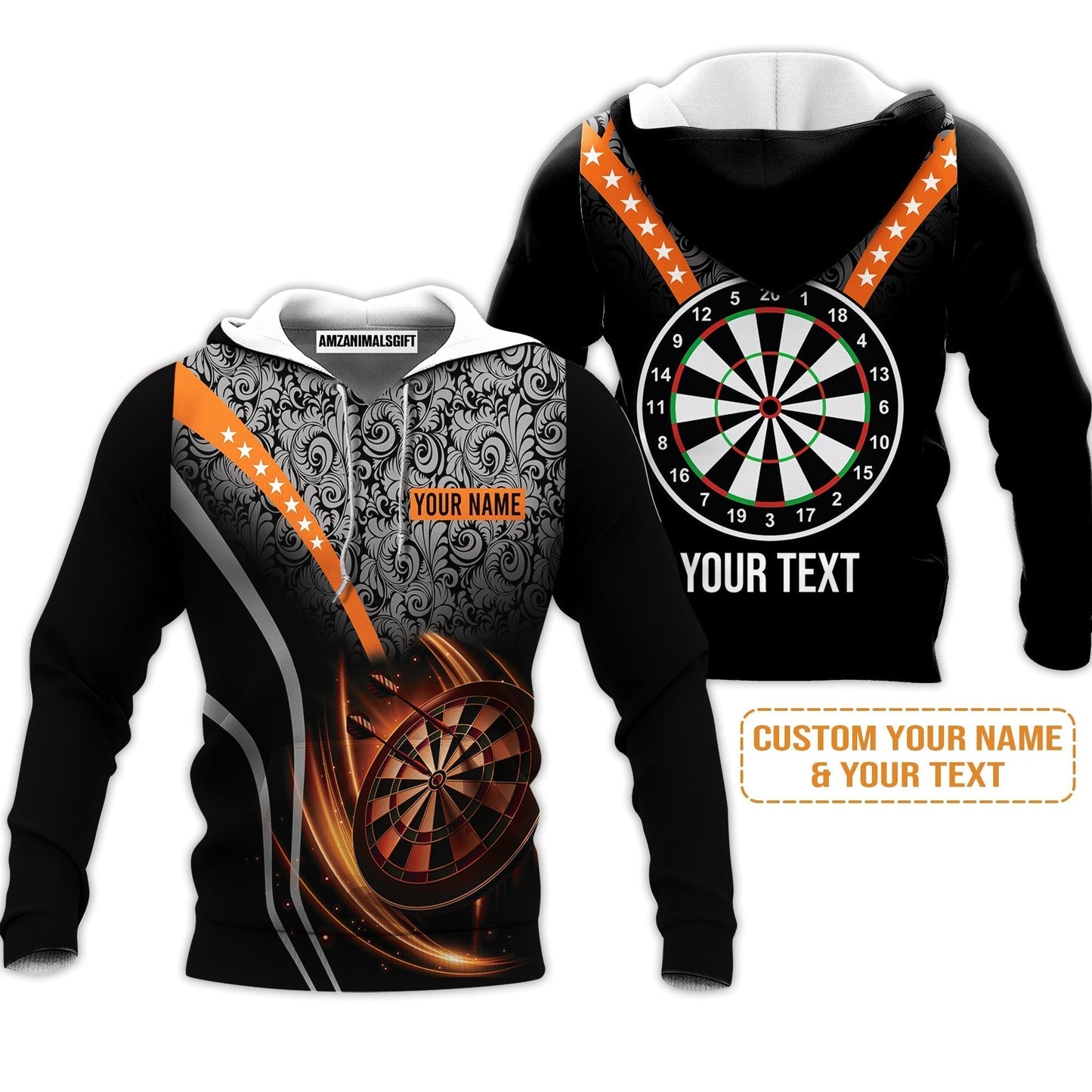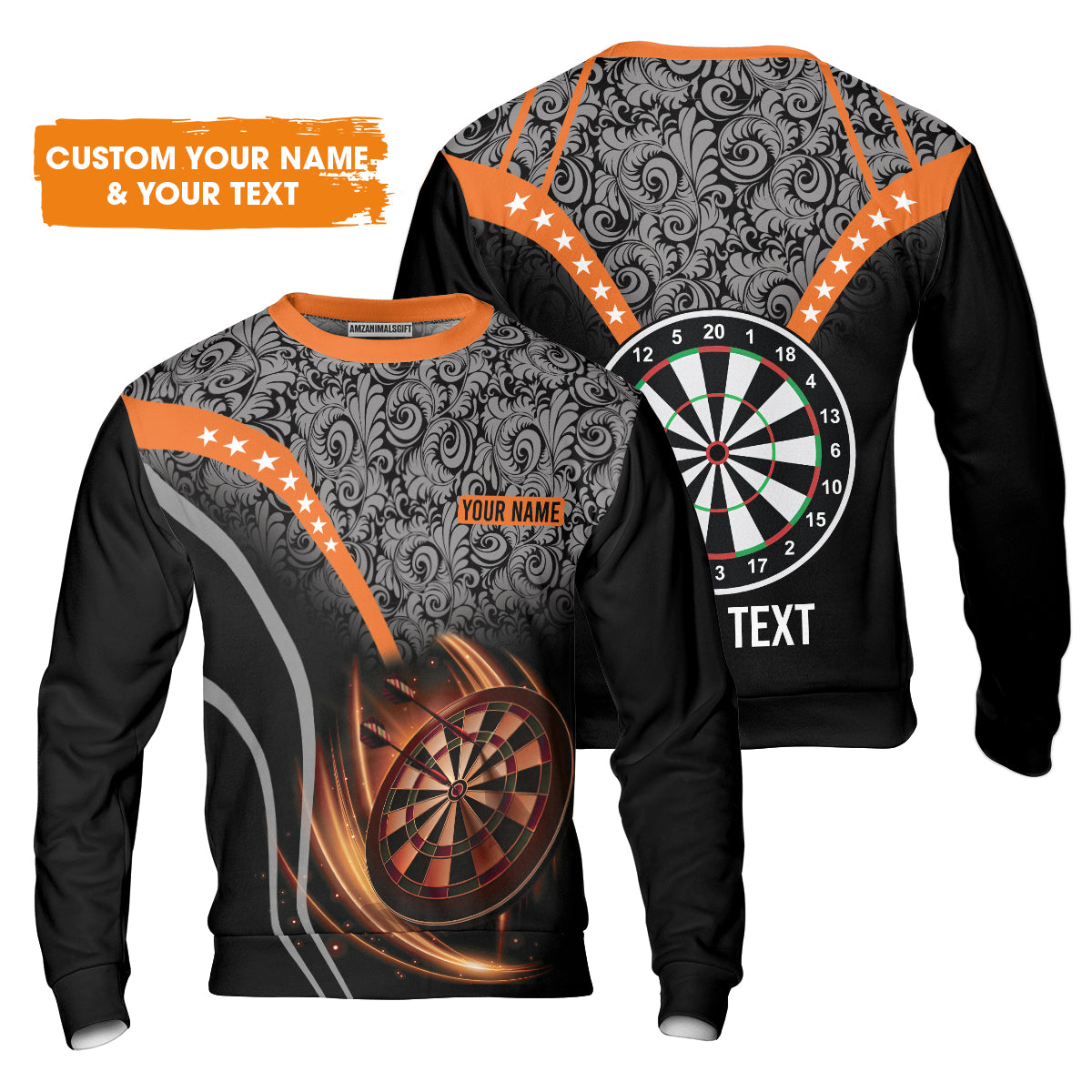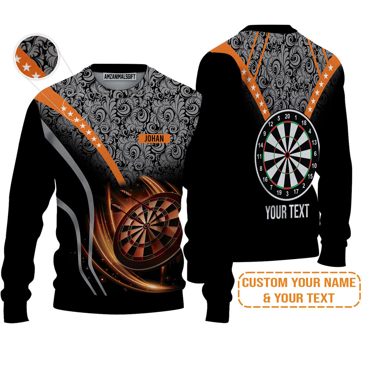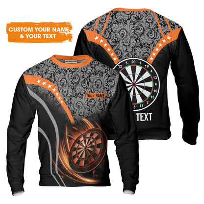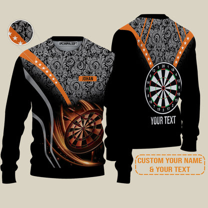 Customized Name & Text Darts Sweater, Personalized Name Dartboard Orange Sweater - Gift For Darts Players