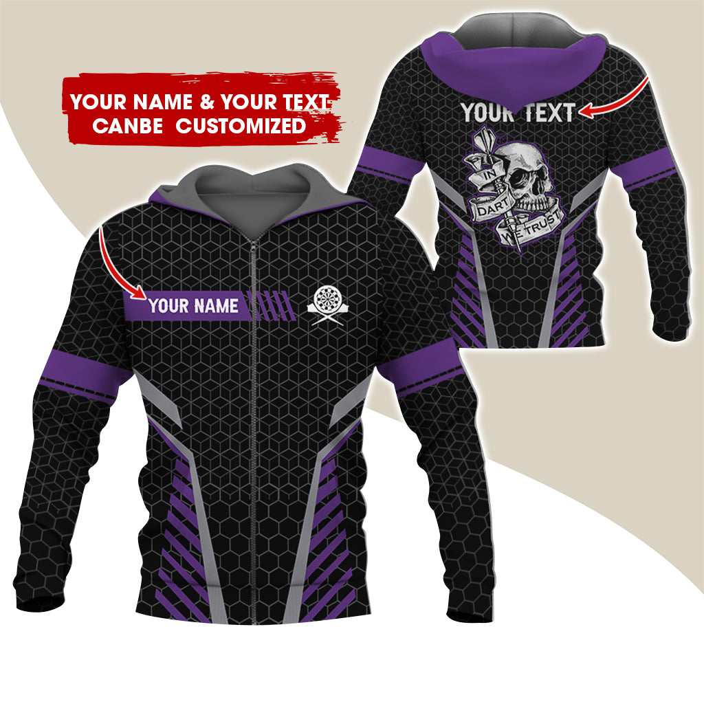 Customized Name & Text Skull Darts Premium Zip Hoodie, Custom Honeycomb Pattern Darts Zip Hoodie For Men & Women - Gift For Darts Lovers, Darts Players.
