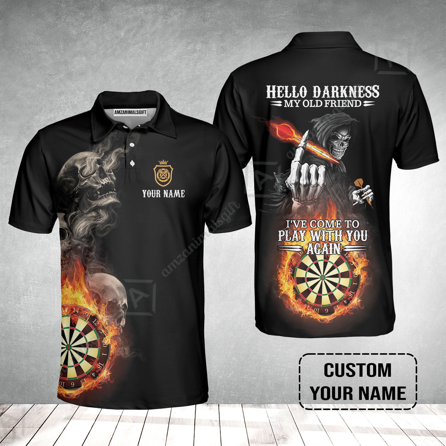 Darts Custom Name Men Polo Shirt, Skull Personalized Polo Shirt, Hello Darkness My Old Friend I've Come To Play With You Again