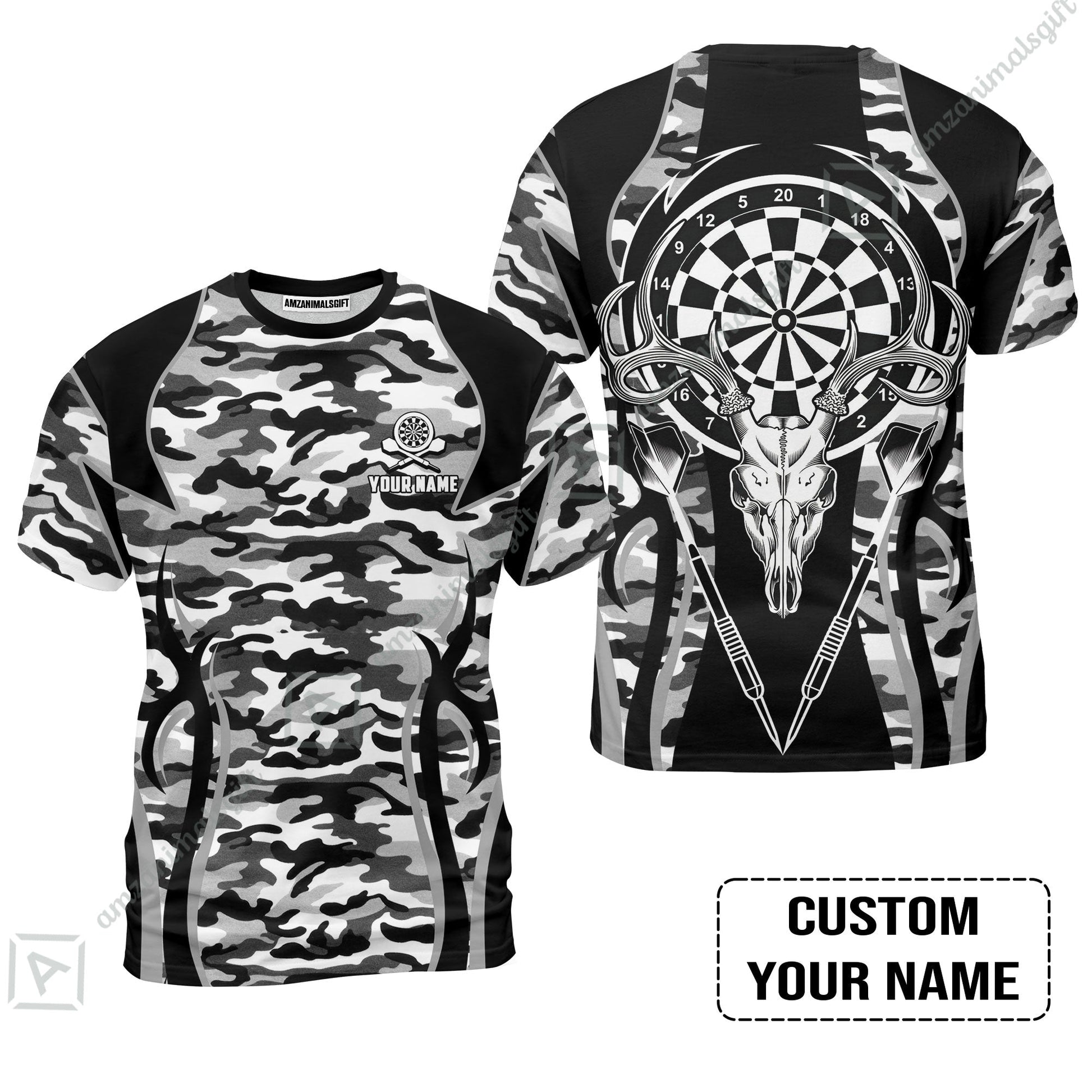 Darts Custom Name Zip Polo Shirt, Camo Darts And Deer Personalized Zip Polo Shirt